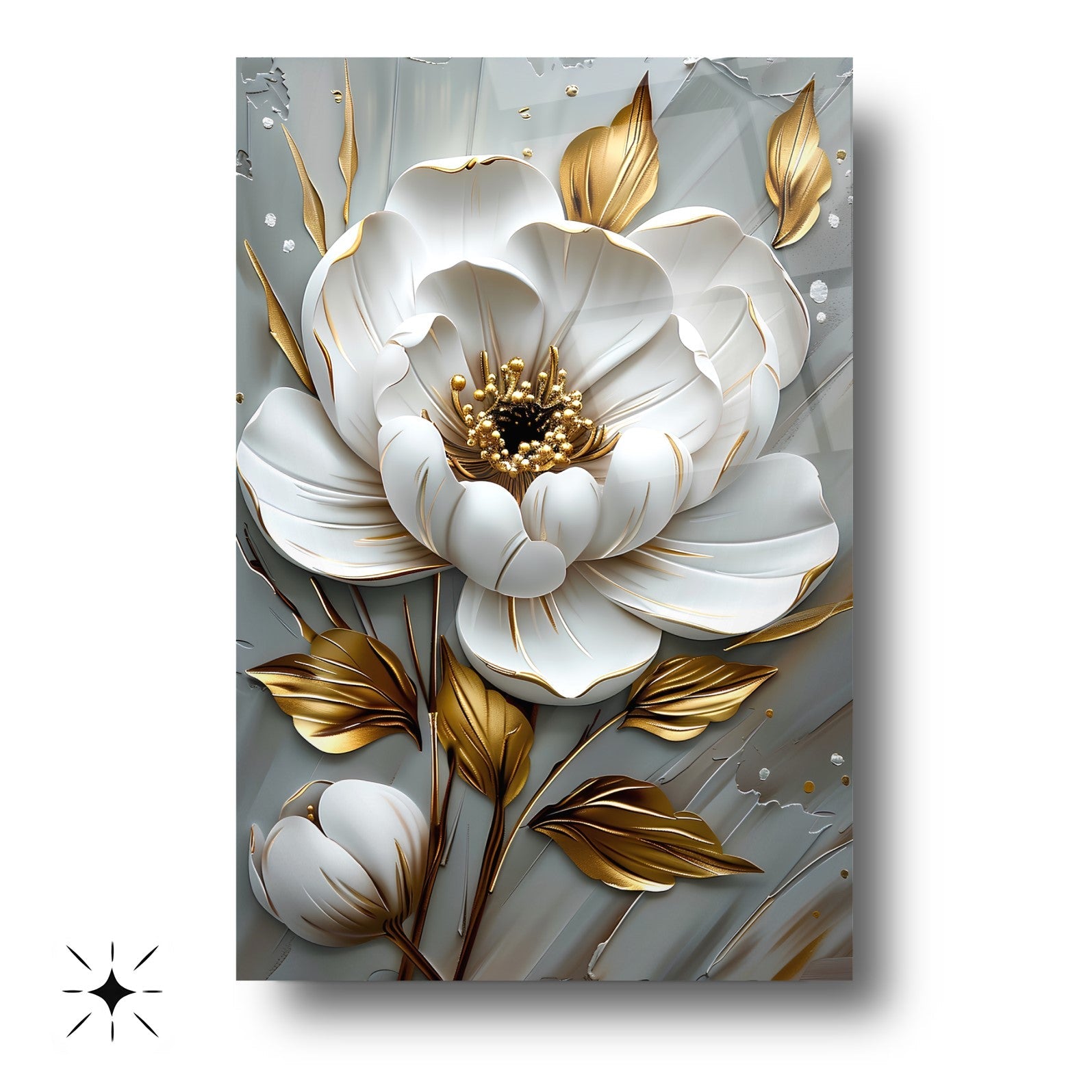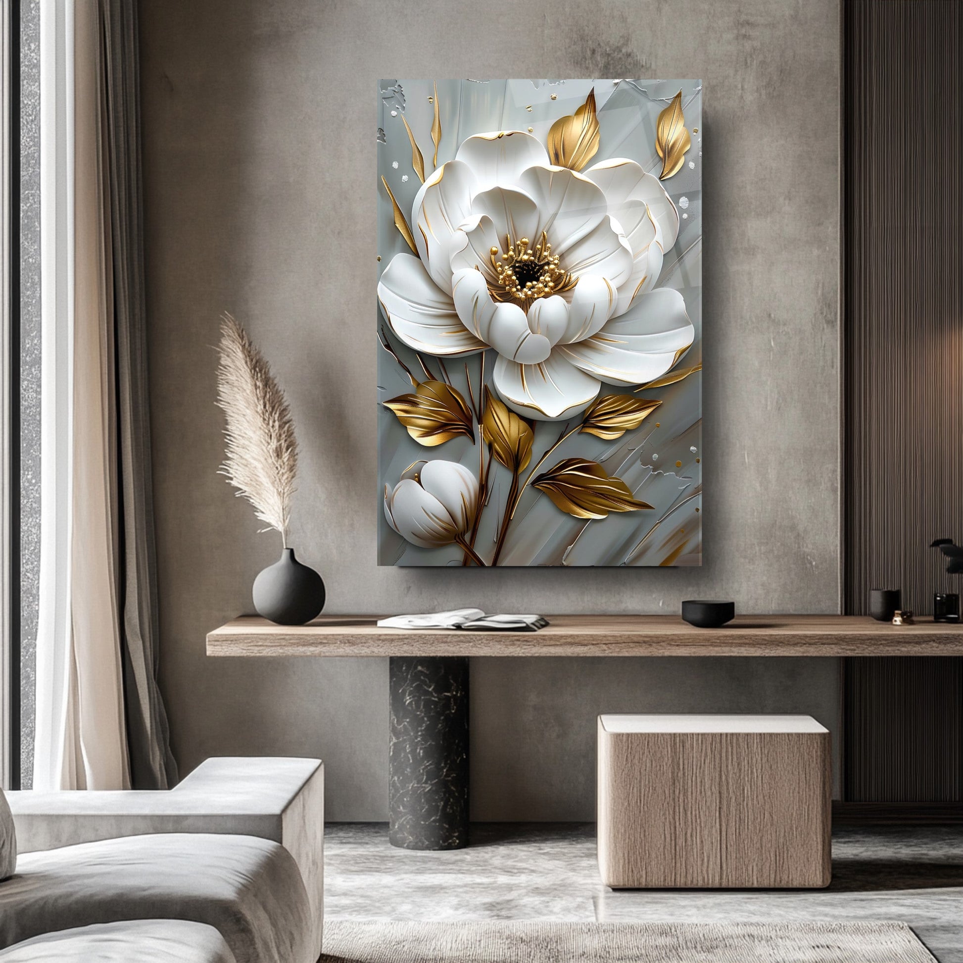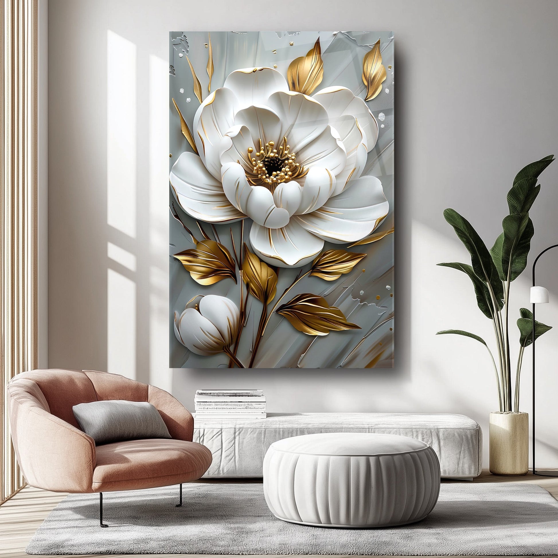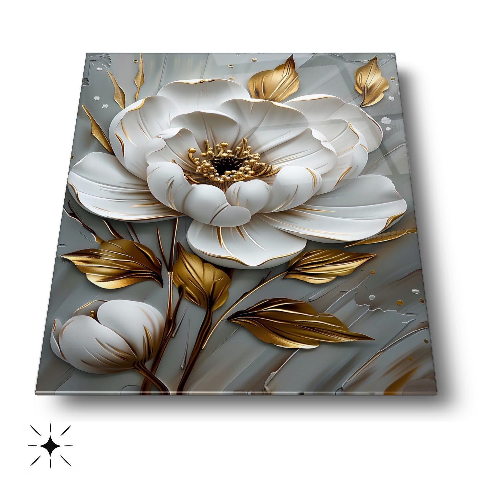 Modern zarafeti duvarlarınıza taşıyın! Gri arka plan üzerinde kabartmalı üç boyutlu beyaz ve gold çiçek deseni, şıklığı ve zarafetiyle yaşam alanlarınıza sofistike bir dokunuş katıyor. 4 mm kalınlığındaki ultra-clear temperli cam, standart camlara göre 10 kat daha dayanıklıdır ve rodajlanmış kenarlarıyla güvenli kullanım sağlar. UV dijital baskı teknolojisiyle uygulanan yüksek çözünürlüklü baskı, renklerin solmasını engeller ve uzun ömürlü kullanım sunar. Kolay montajı sayesinde hemen duvarınıza asılabilir. Salon, oturma odası veya ofis gibi farklı alanlarda şıklığıyla öne çıkar. Evinize veya iş yerinize modern bir atmosfer kazandırmak için bu tablo mükemmel bir tercih olacaktır.