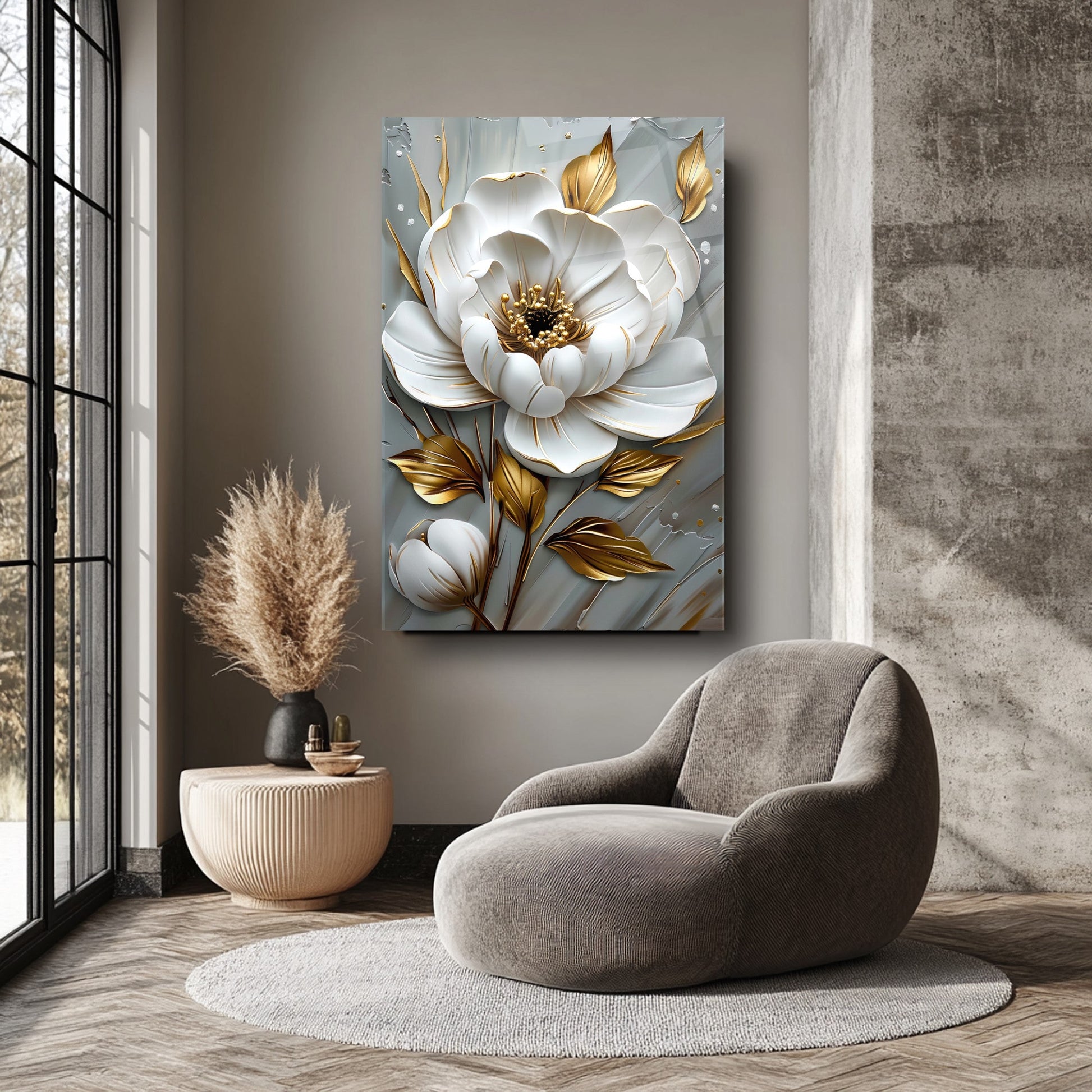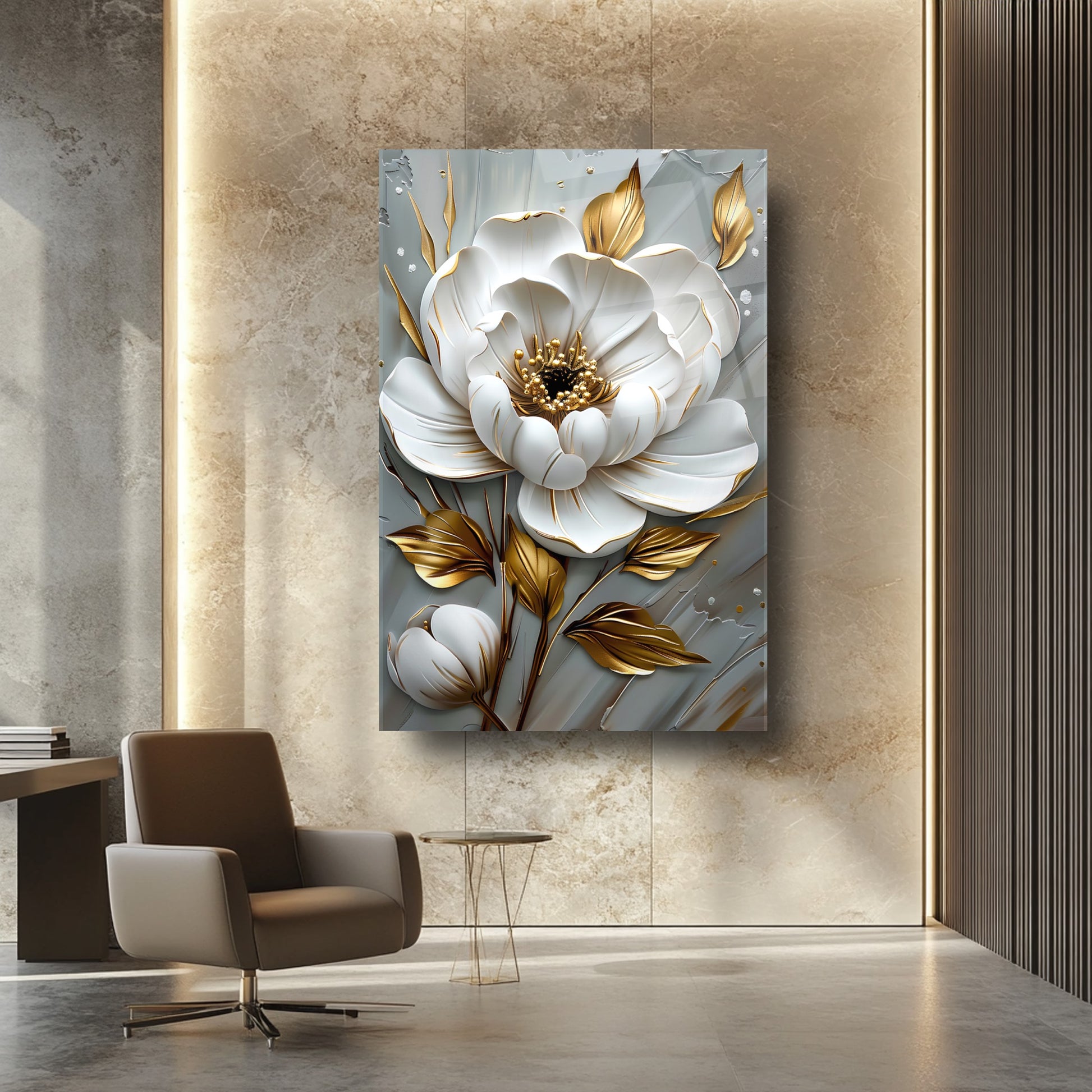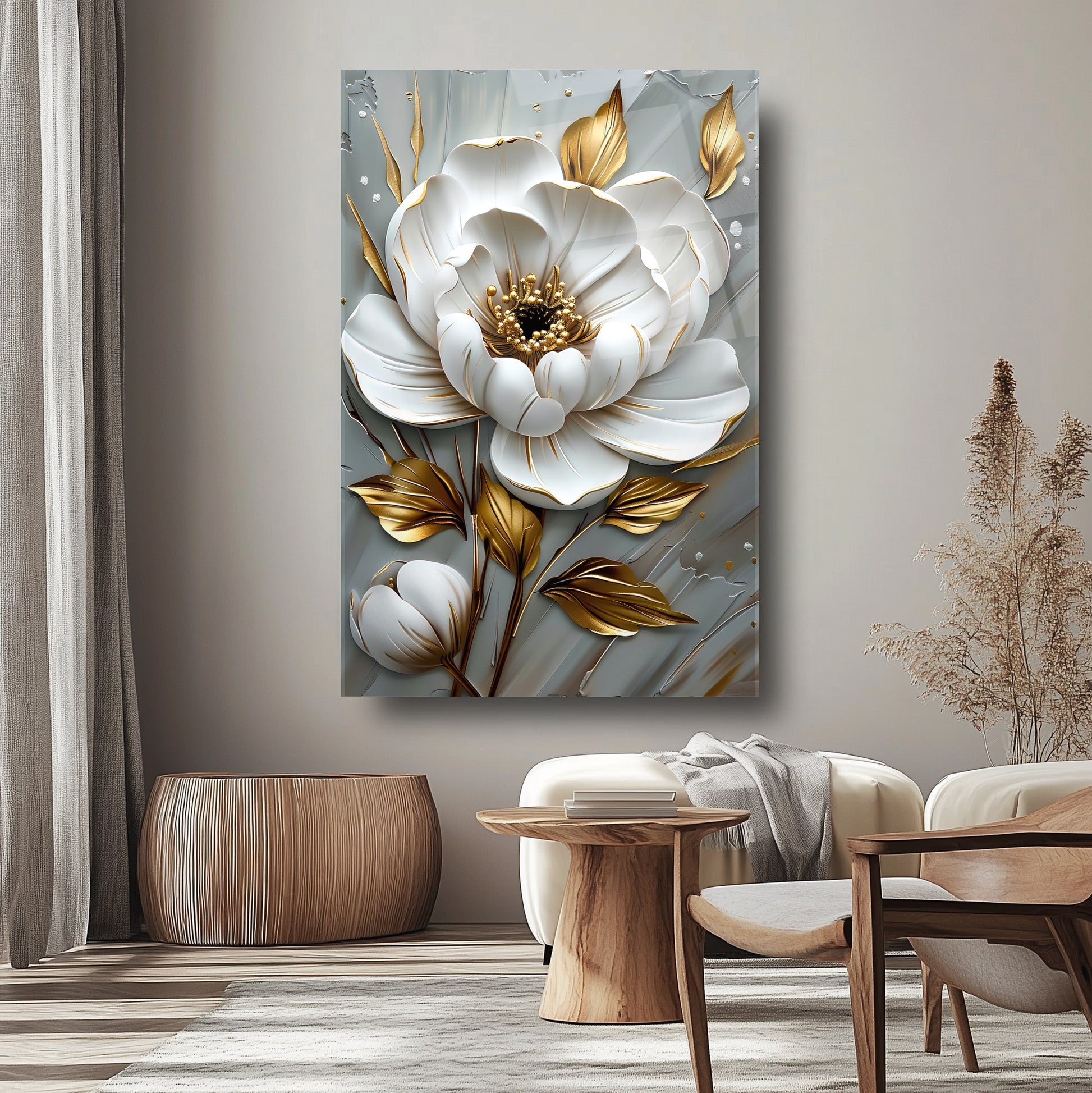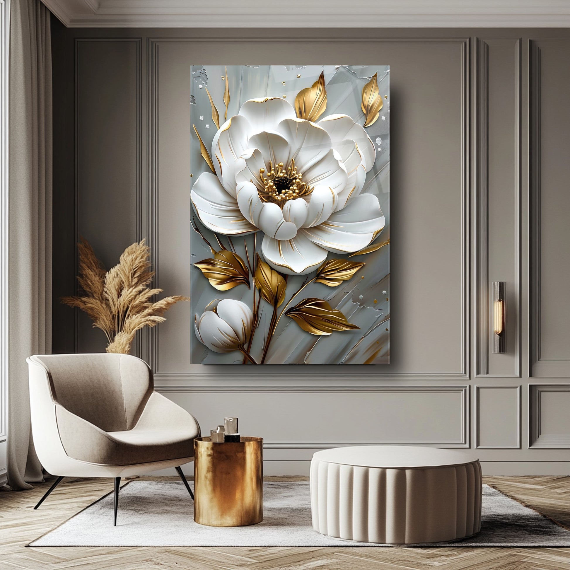 Modern zarafeti duvarlarınıza taşıyın! Gri arka plan üzerinde kabartmalı üç boyutlu beyaz ve gold çiçek deseni, şıklığı ve zarafetiyle yaşam alanlarınıza sofistike bir dokunuş katıyor. 4 mm kalınlığındaki ultra-clear temperli cam, standart camlara göre 10 kat daha dayanıklıdır ve rodajlanmış kenarlarıyla güvenli kullanım sağlar. UV dijital baskı teknolojisiyle uygulanan yüksek çözünürlüklü baskı, renklerin solmasını engeller ve uzun ömürlü kullanım sunar. Kolay montajı sayesinde hemen duvarınıza asılabilir. Salon, oturma odası veya ofis gibi farklı alanlarda şıklığıyla öne çıkar. Evinize veya iş yerinize modern bir atmosfer kazandırmak için bu tablo mükemmel bir tercih olacaktır.