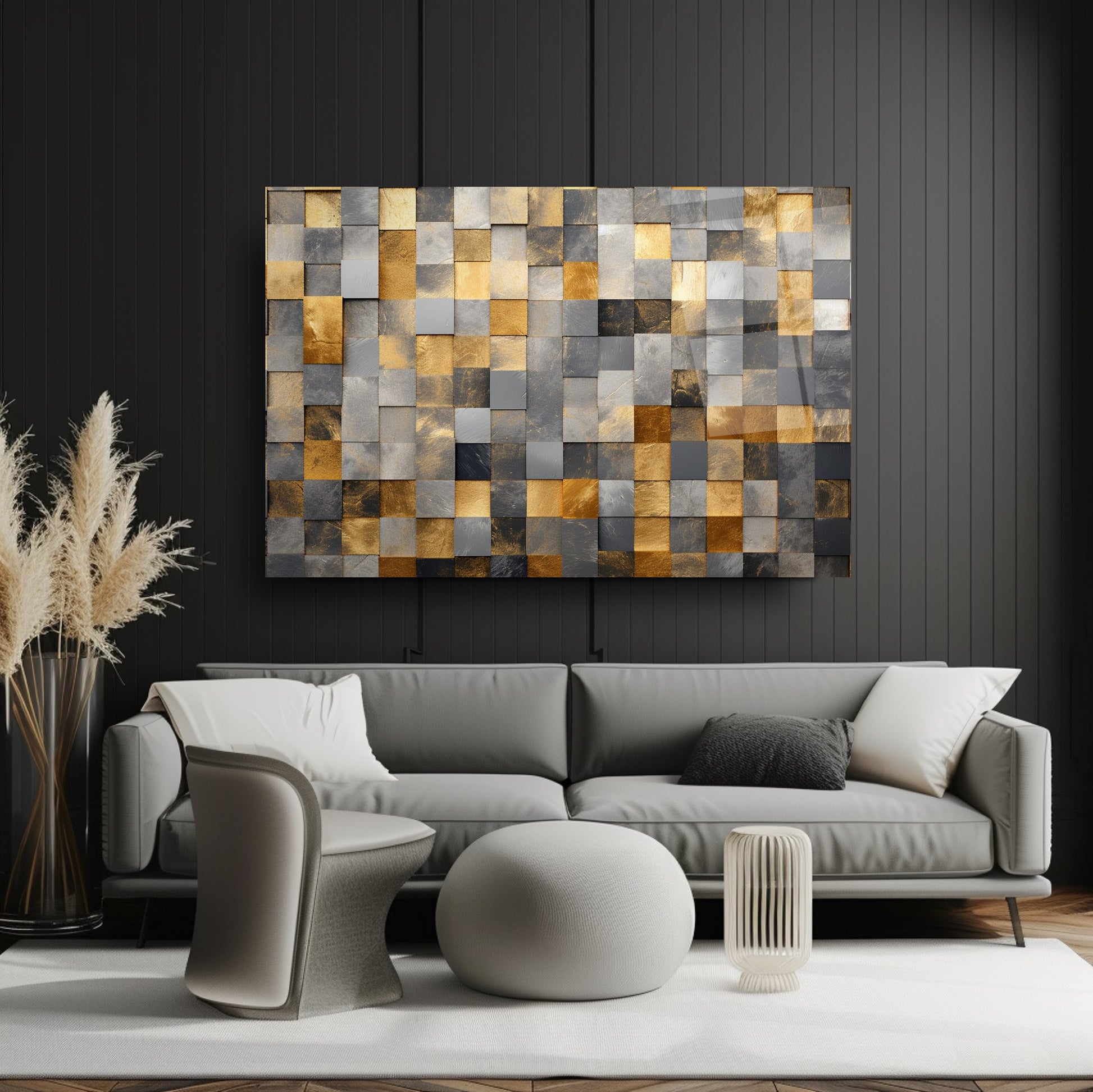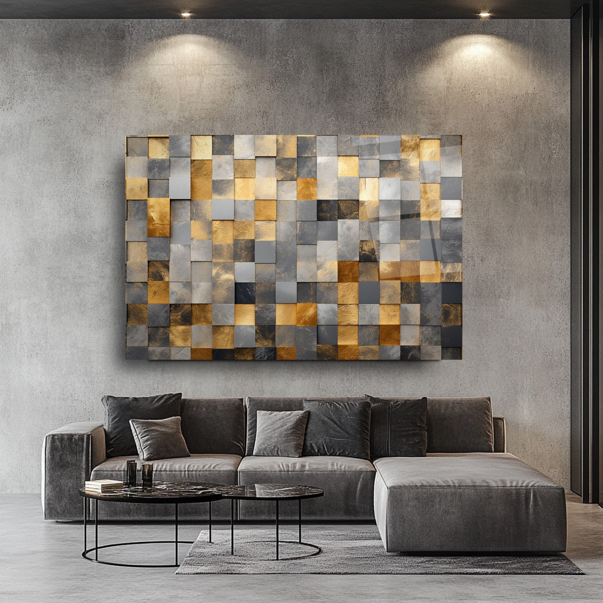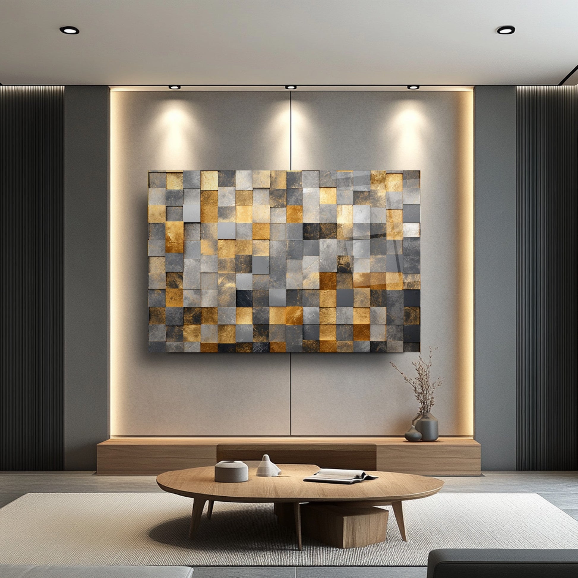 Gri ve gold tonların üç boyutlu küp desenleriyle buluştuğu bu gerçek cam tablo, modern mekanlara sofistike ve dinamik bir hava katar. Kırılmaz cam tablo yapısıyla hem dayanıklı hem estetik bir dekorasyon seçeneğidir. Soyut sanat severler için şık ve dikkat çekici bir cam tablo tercihidir.