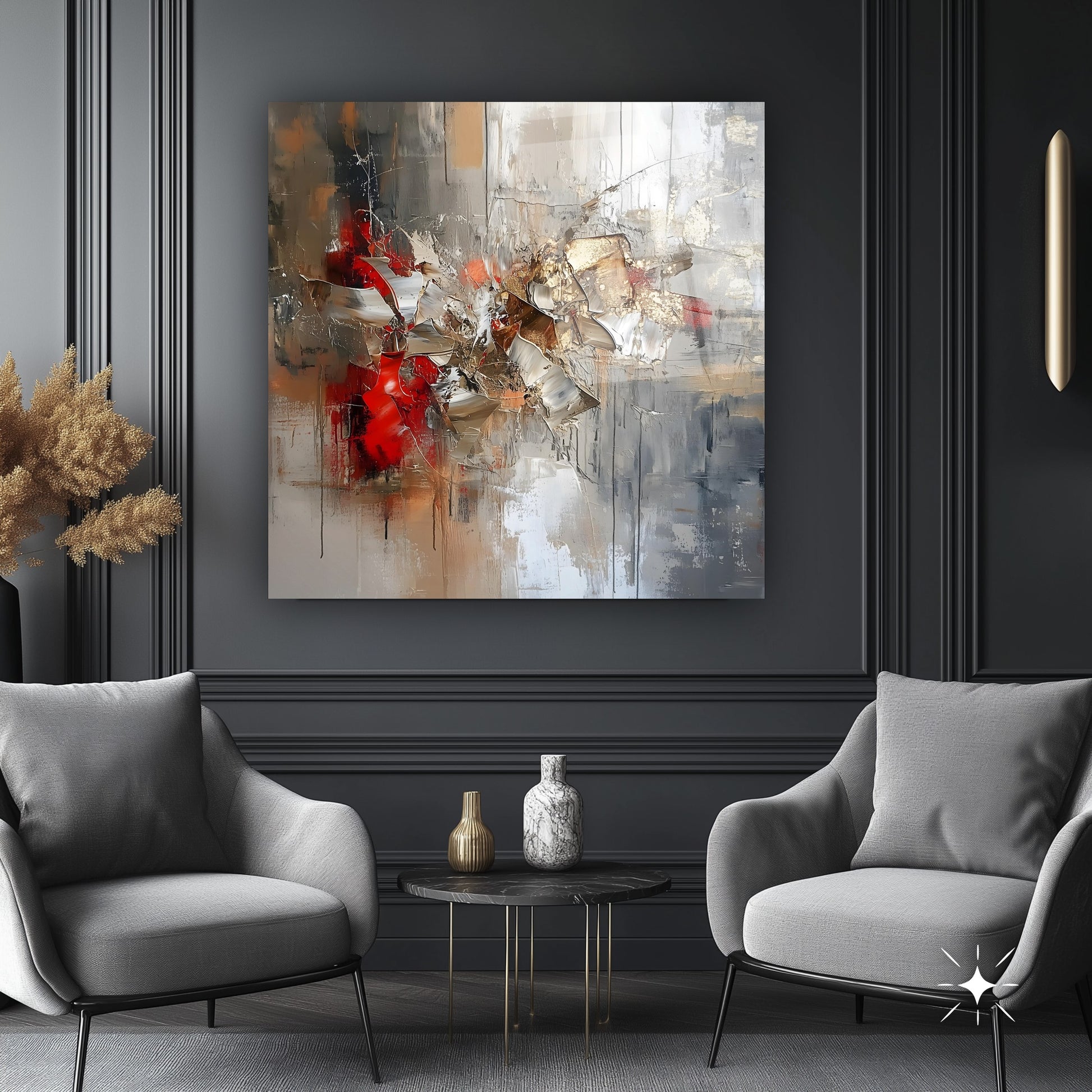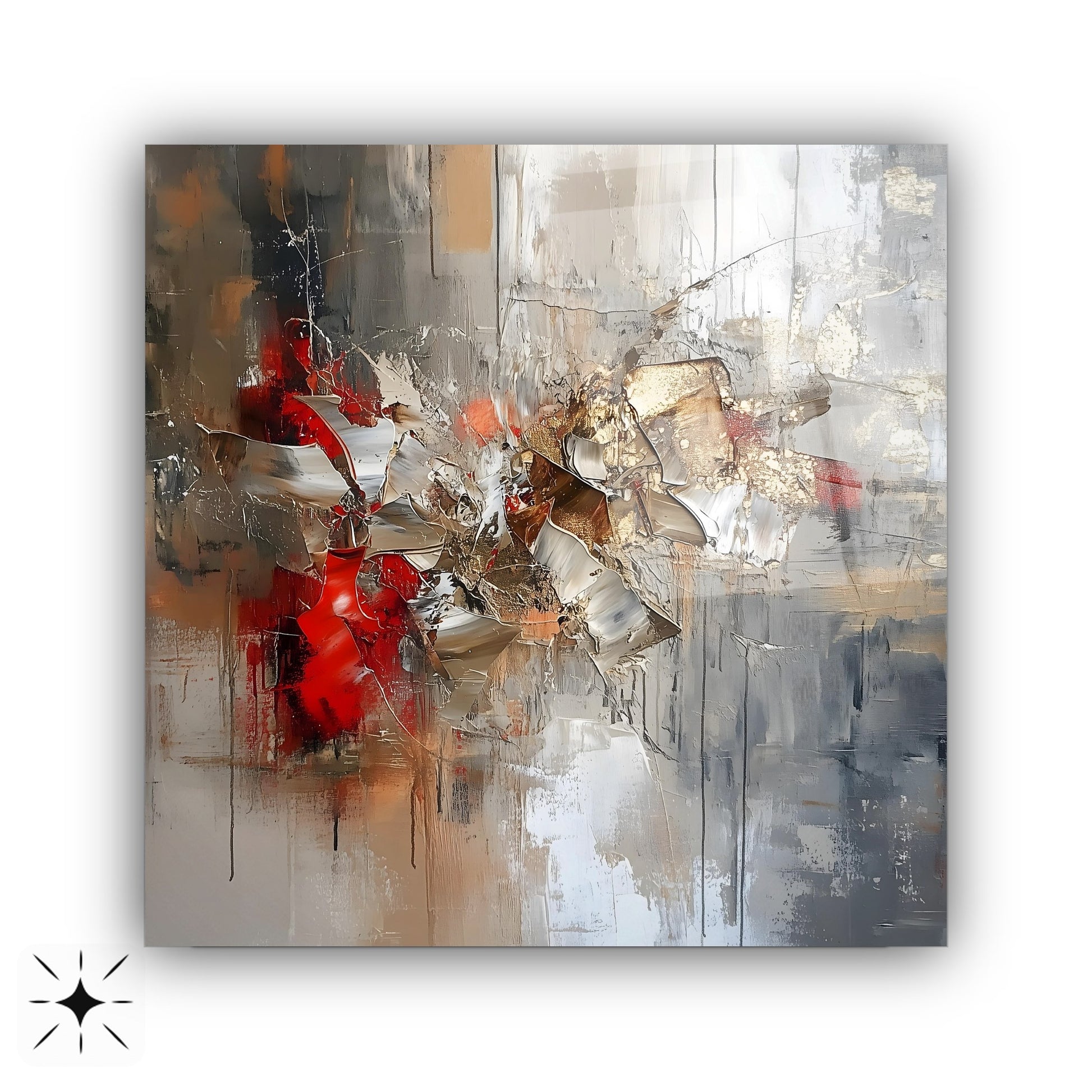 Gri ve gold renklerin 3D kabartmalı yağlı boya deseniyle buluştuğu bu soyut cam tablo, mekanlarınıza zarif ve derinlikli bir dokunuş katıyor. CamDeko kalitesiyle kırılmaz temperli cam üzerine UV baskı teknolojisi kullanılarak üretilen bu ürün, hem görsel hem de dokunsal zenginlik sunarak mekânda sofistike ve modern bir atmosfer yaratır. Ev ve ofis gibi farklı yaşam alanlarında tercih edilebilecek tablo, dayanıklı yapısıyla uzun yıllar boyunca ilk günkü estetiğini korur. Estetik ve fonksiyonelliği bir arada arayanlar için ideal bir dekorasyon seçeneğidir.