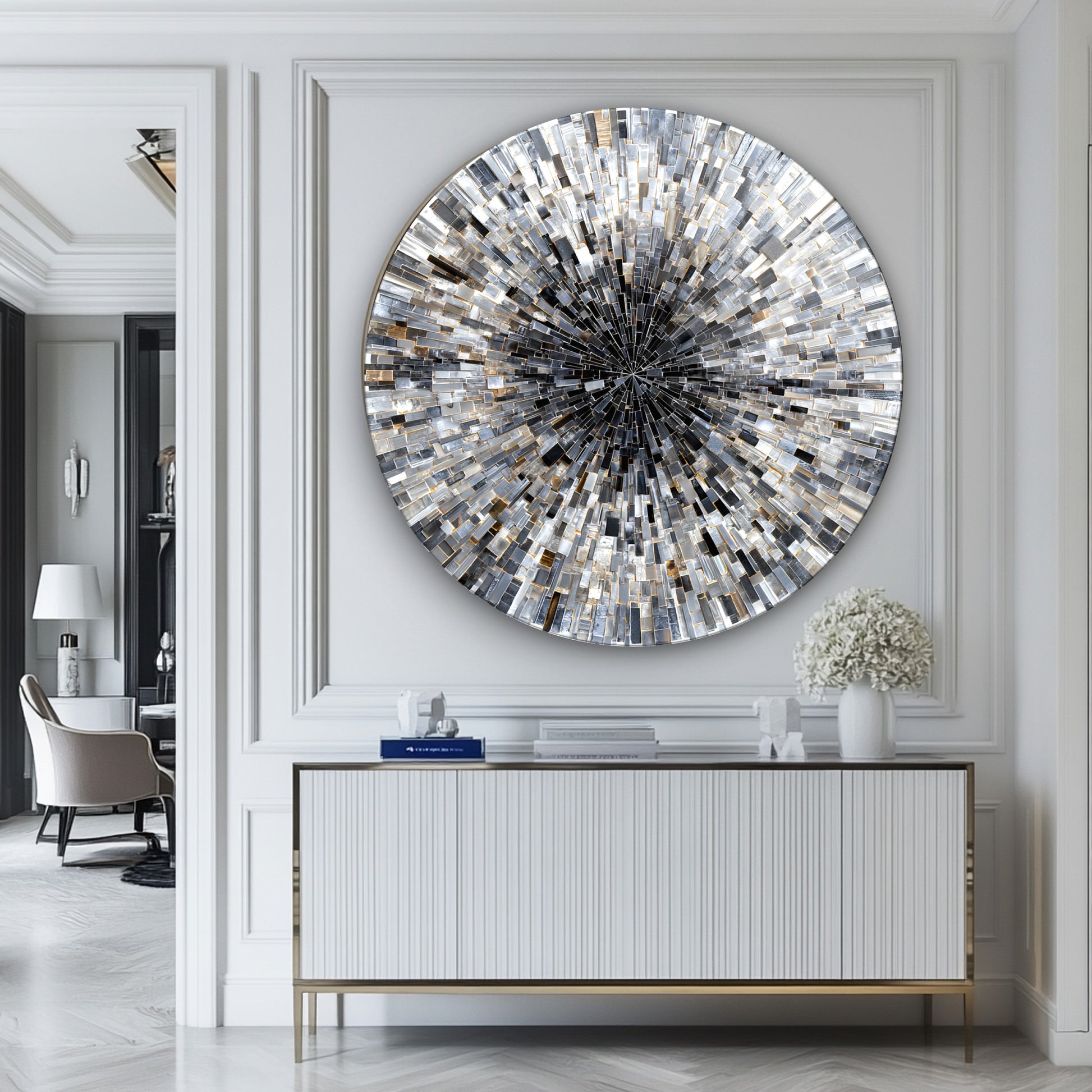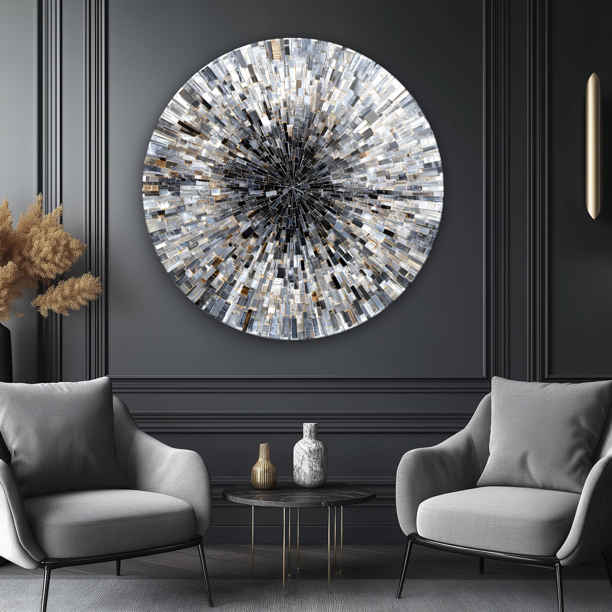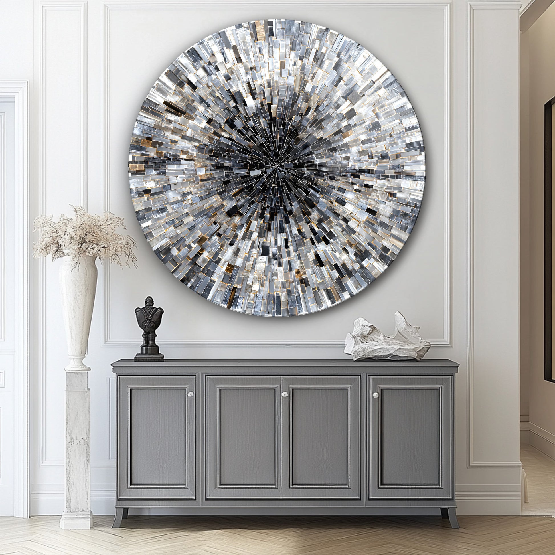 Soyut Gri Mozaik Yuvarlak Cam Tablo