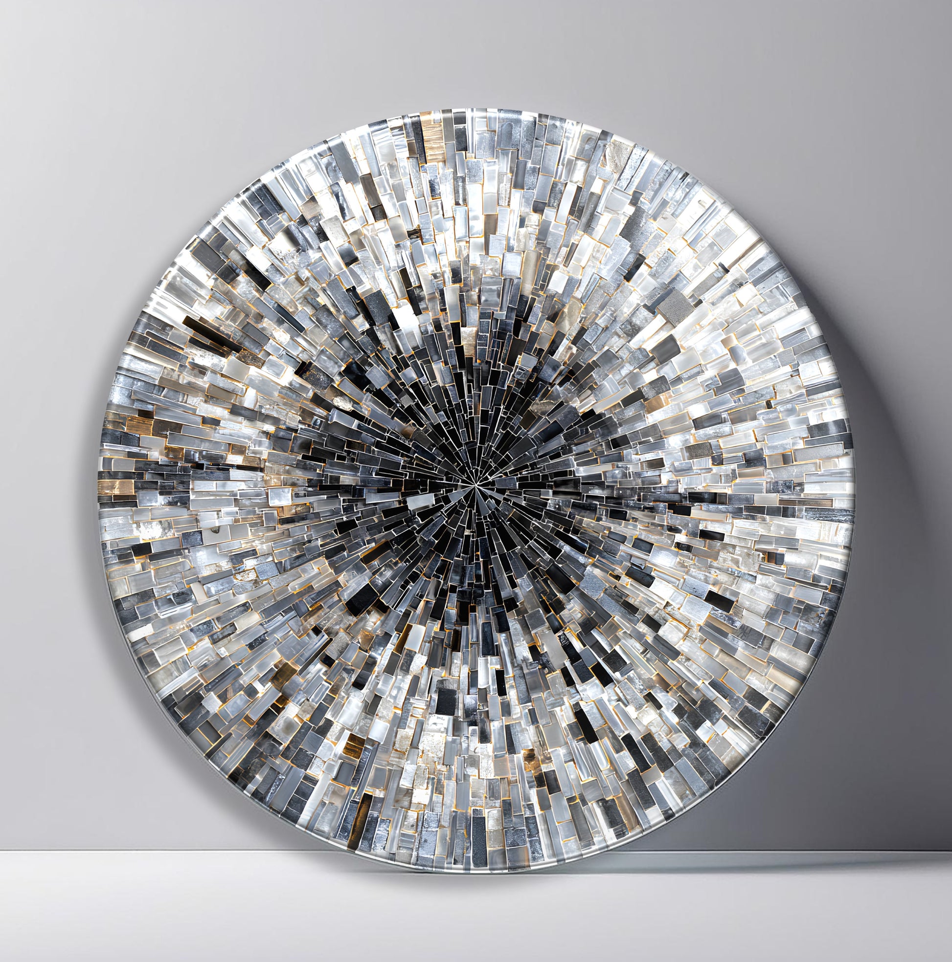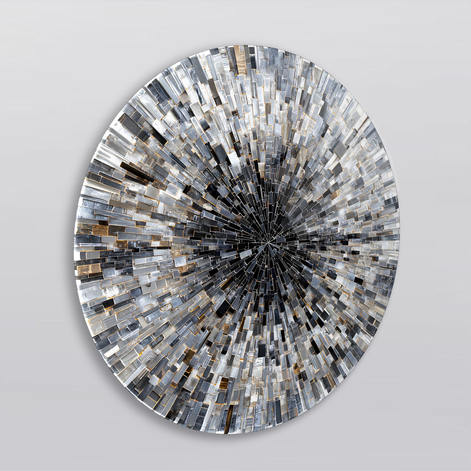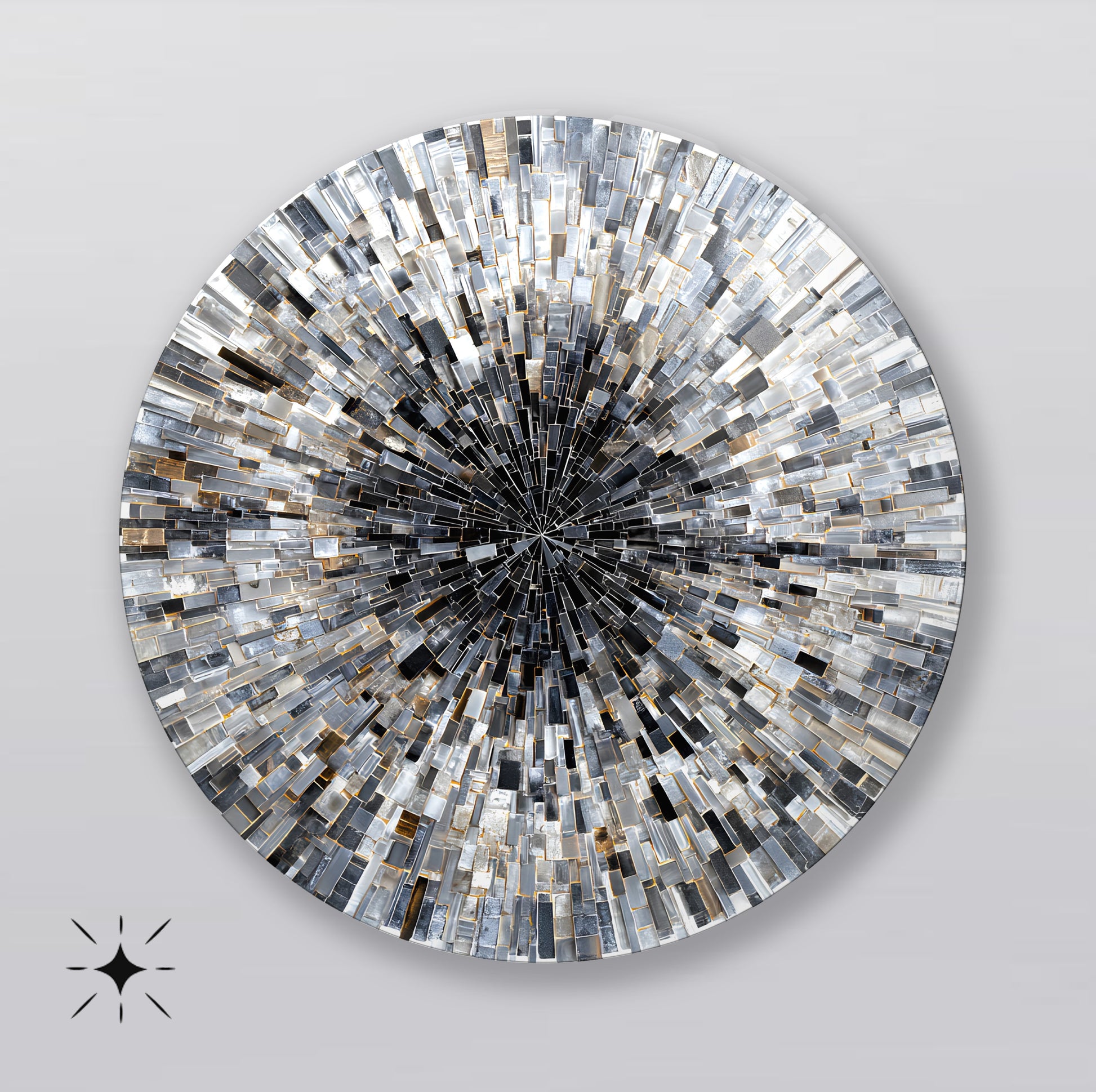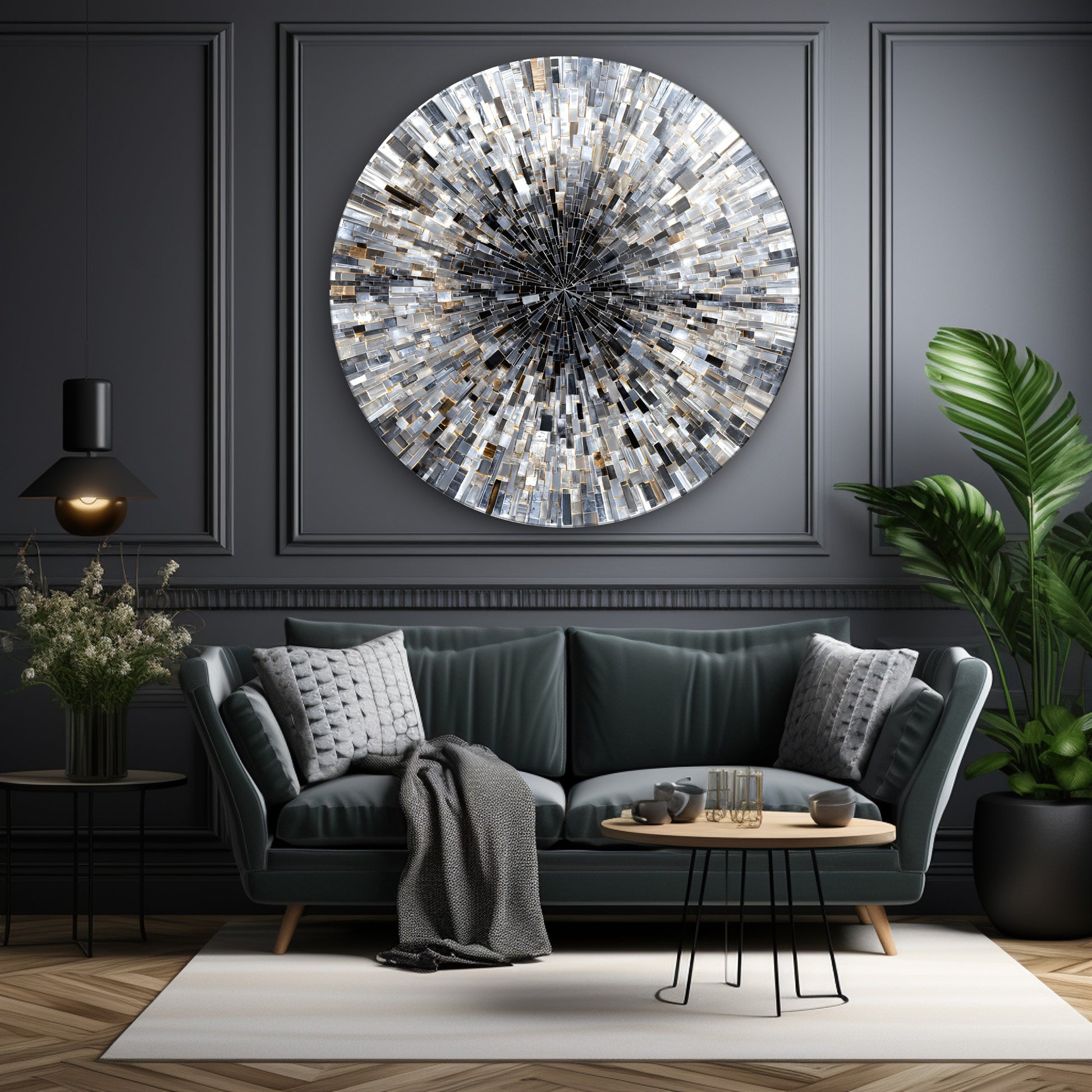 Soyut Gri Mozaik Yuvarlak Cam Tablo