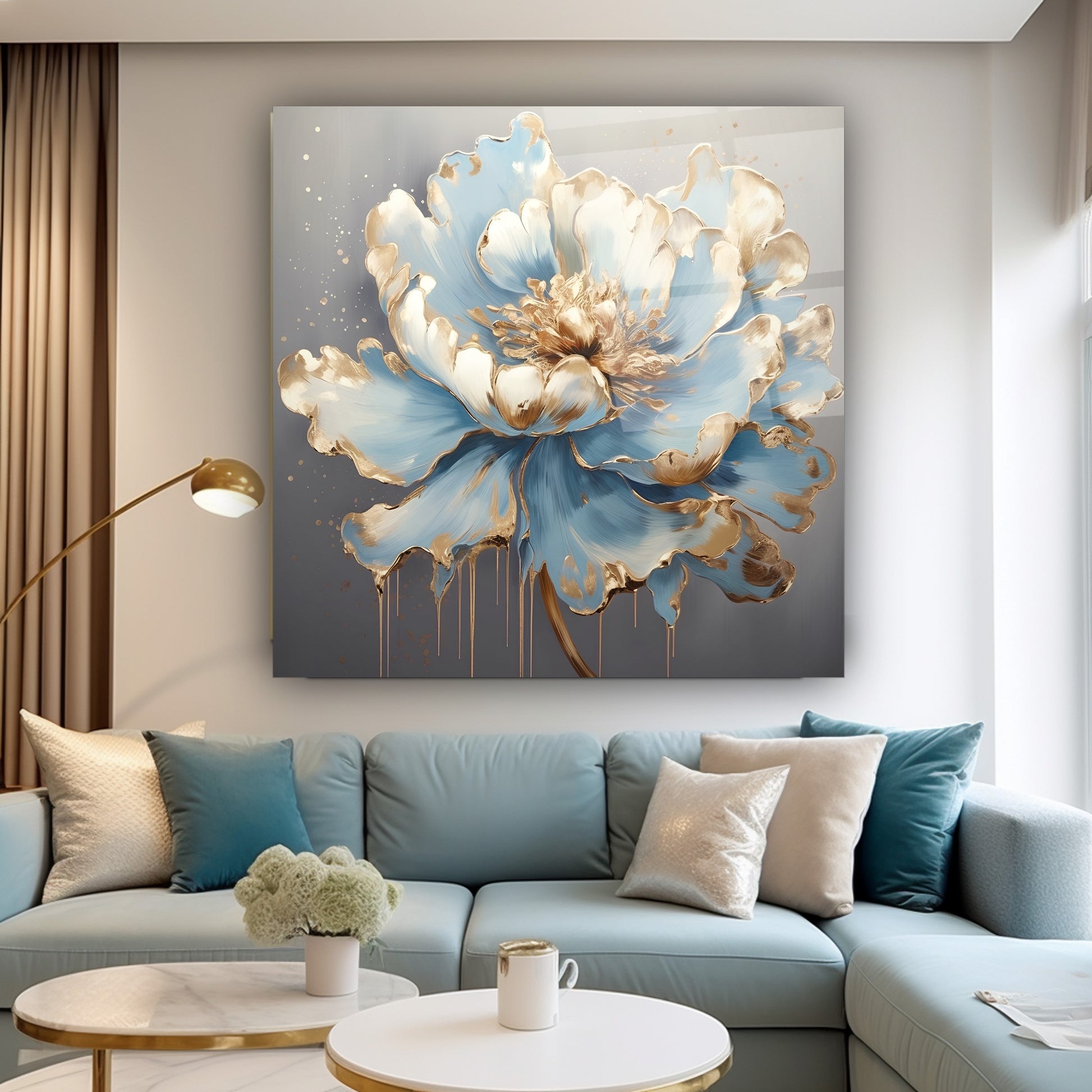 Gri zeminle uyumlu mavi ve gold detaylı kabartmalı çiçekler, bu gerçek cam tabloya zarif ve üç boyutlu bir etki kazandırır. Kırılmaz cam tablo yapısı sayesinde hem uzun ömürlü hem estetik bir dekorasyon sunar. Modern yaşam alanlarında şıklığı ve sanatı bir arada yaşatmak isteyenler için ideal bir cam tablo tercihidir.