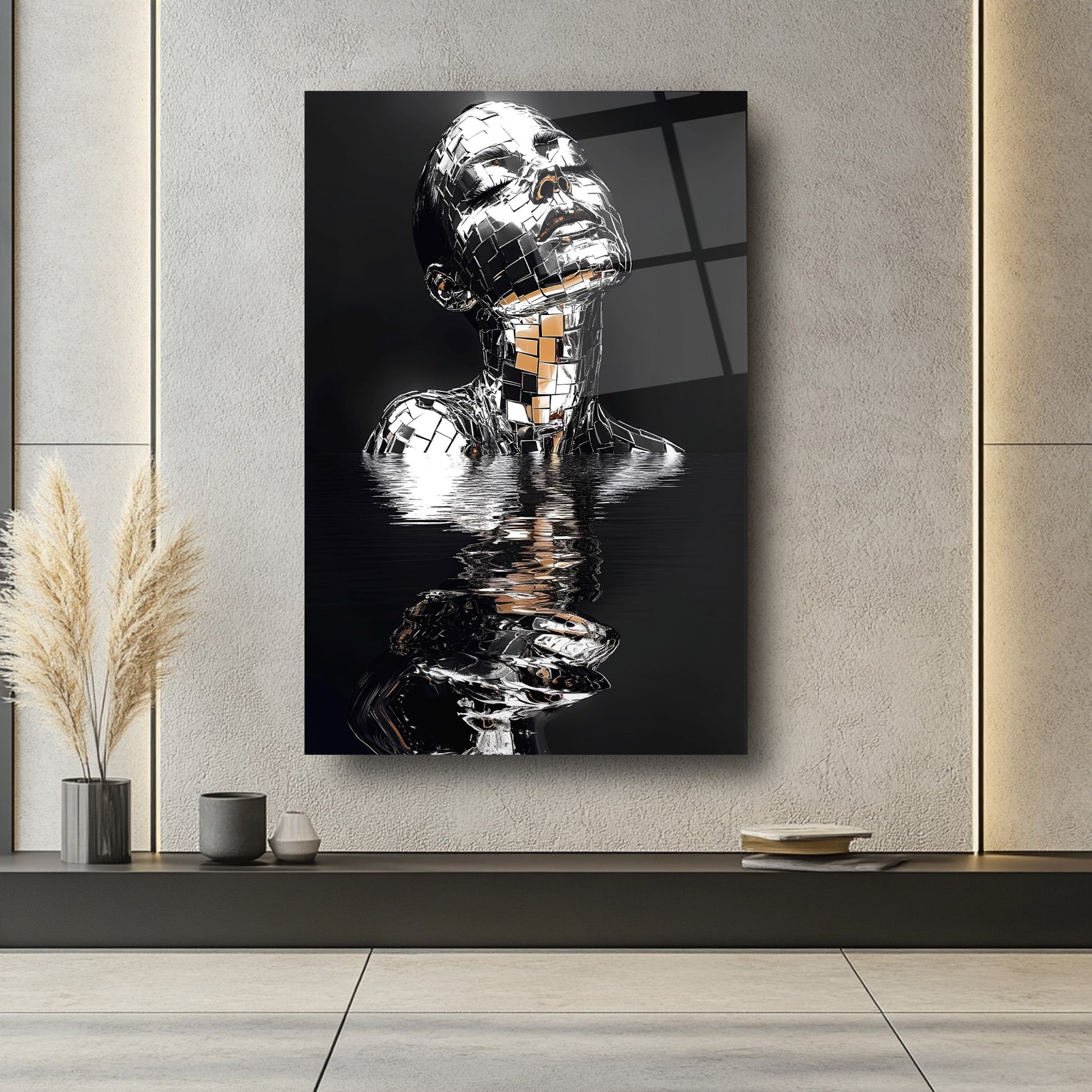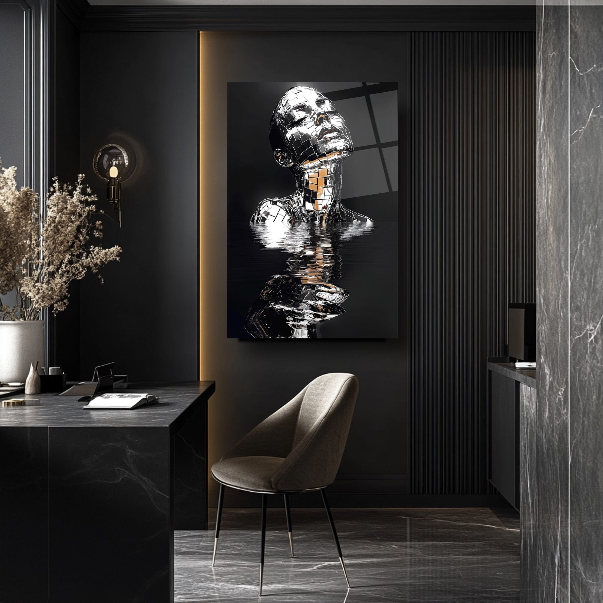 Güzellik Mekanlarınıza Gümüş Işıltısı: Gümüş Detaylı Kadın Model Cam Tablo