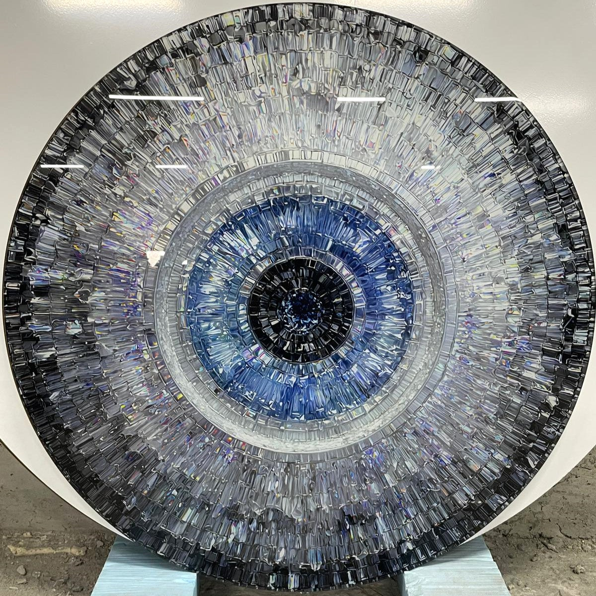 Gümüş Mavi Göz Bebeği Yuvarlak Cam Tablo