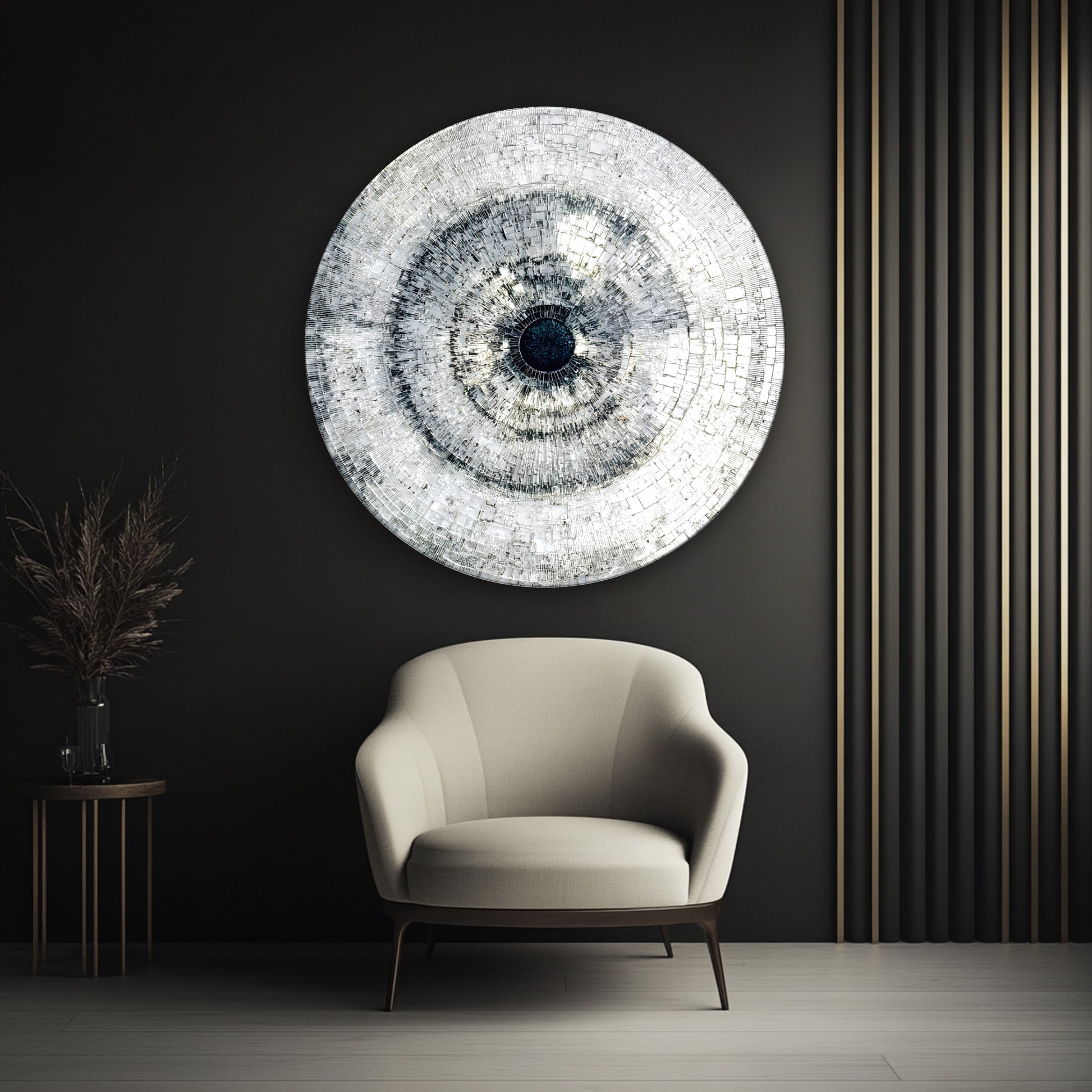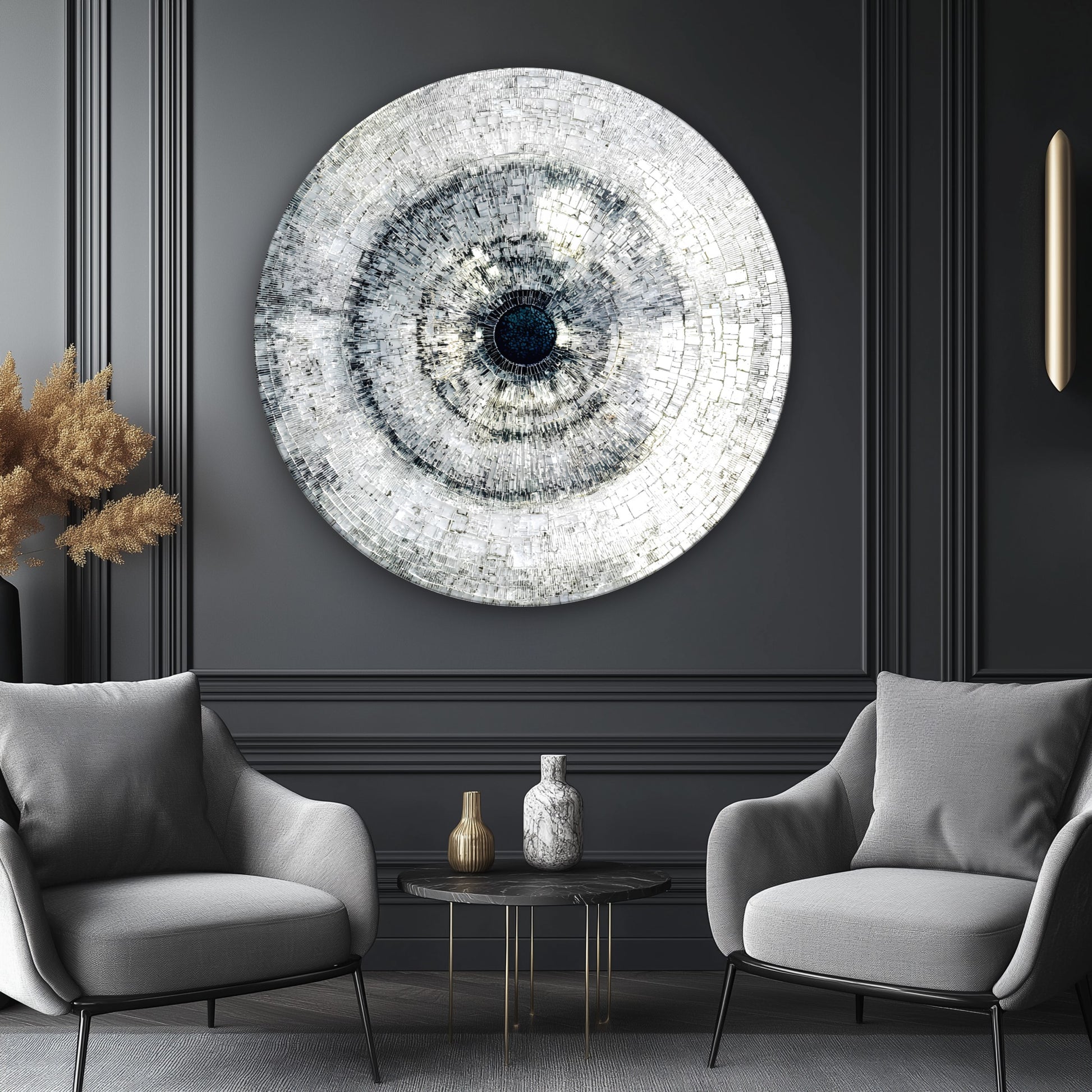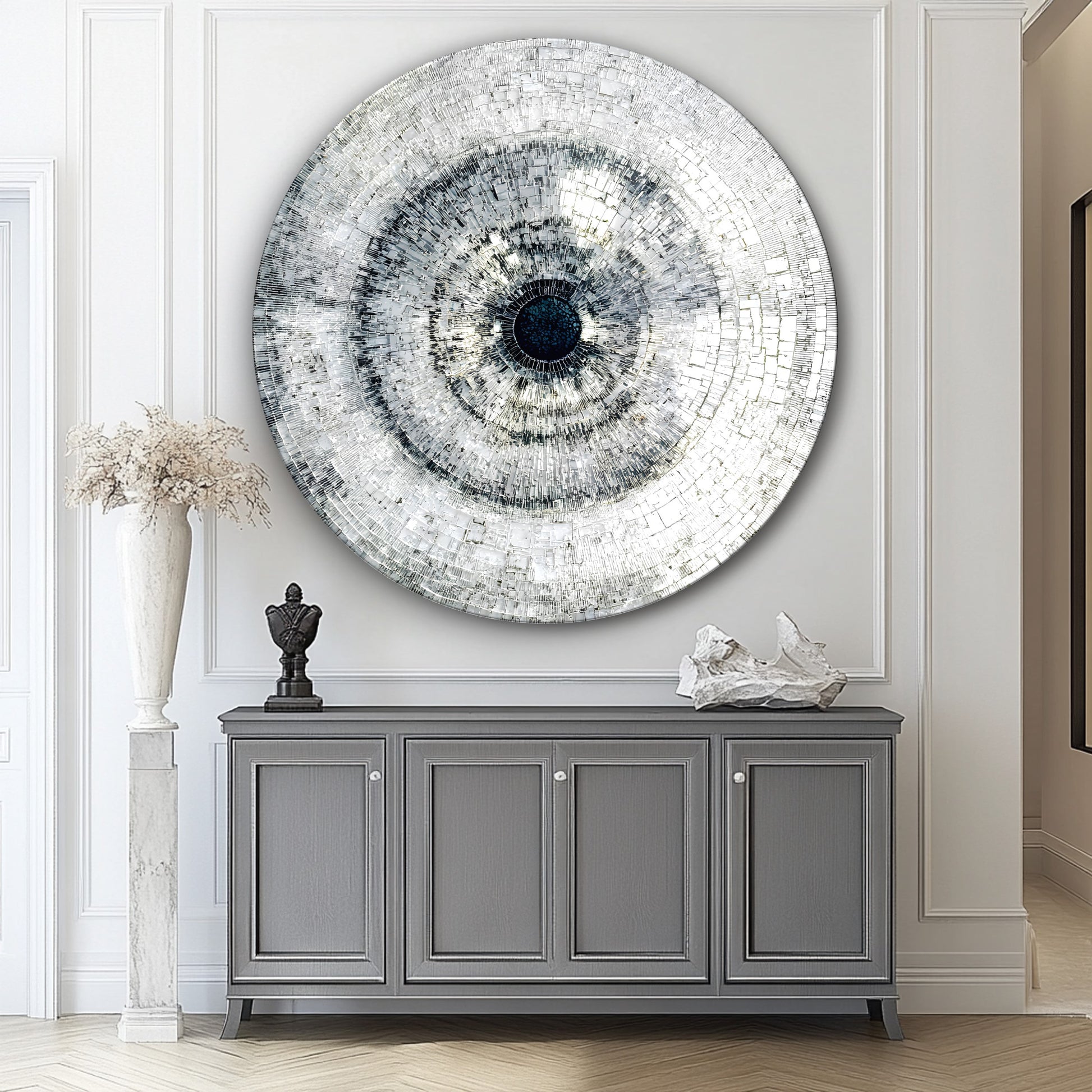 Gümüş Mozaik Desen Göz Bebeği Yuvarlak Cam Tablo