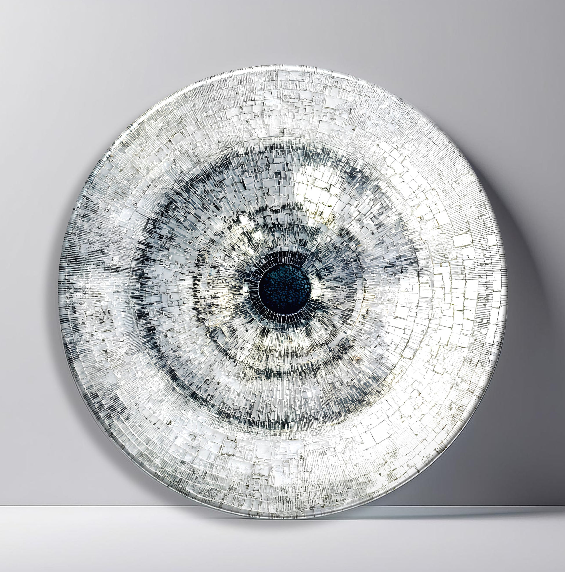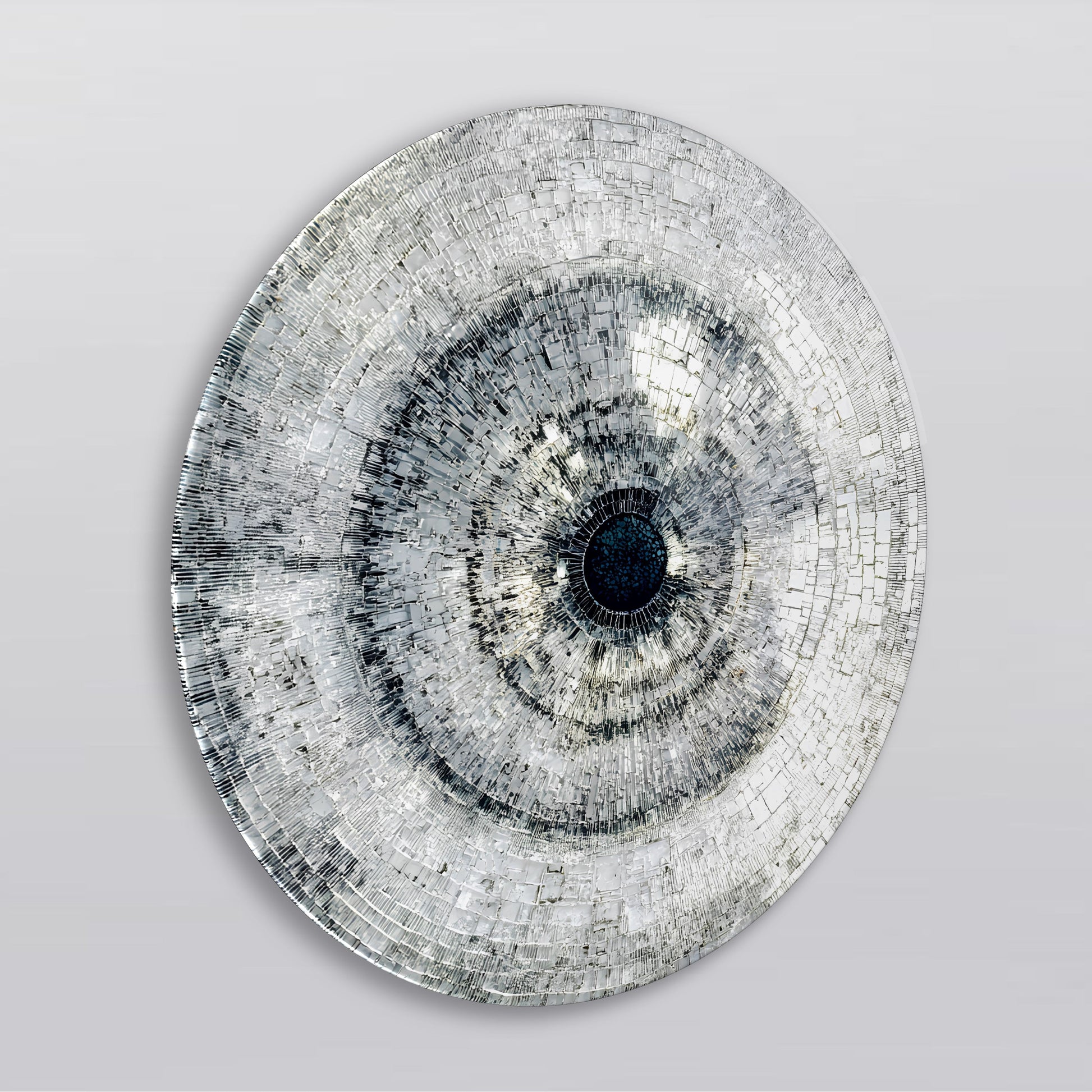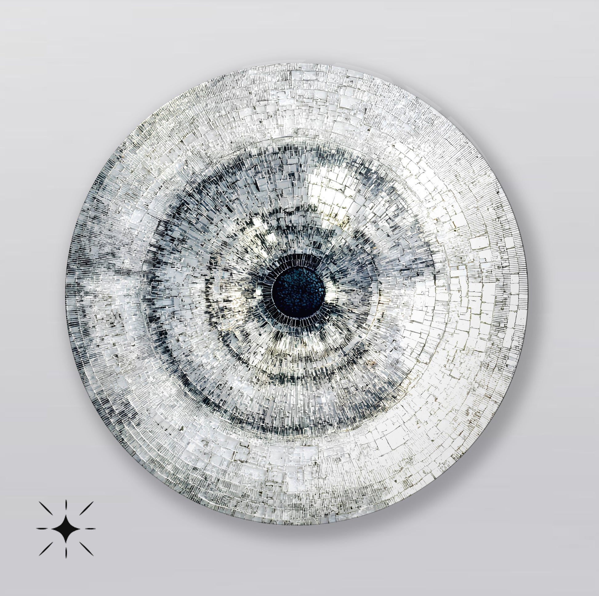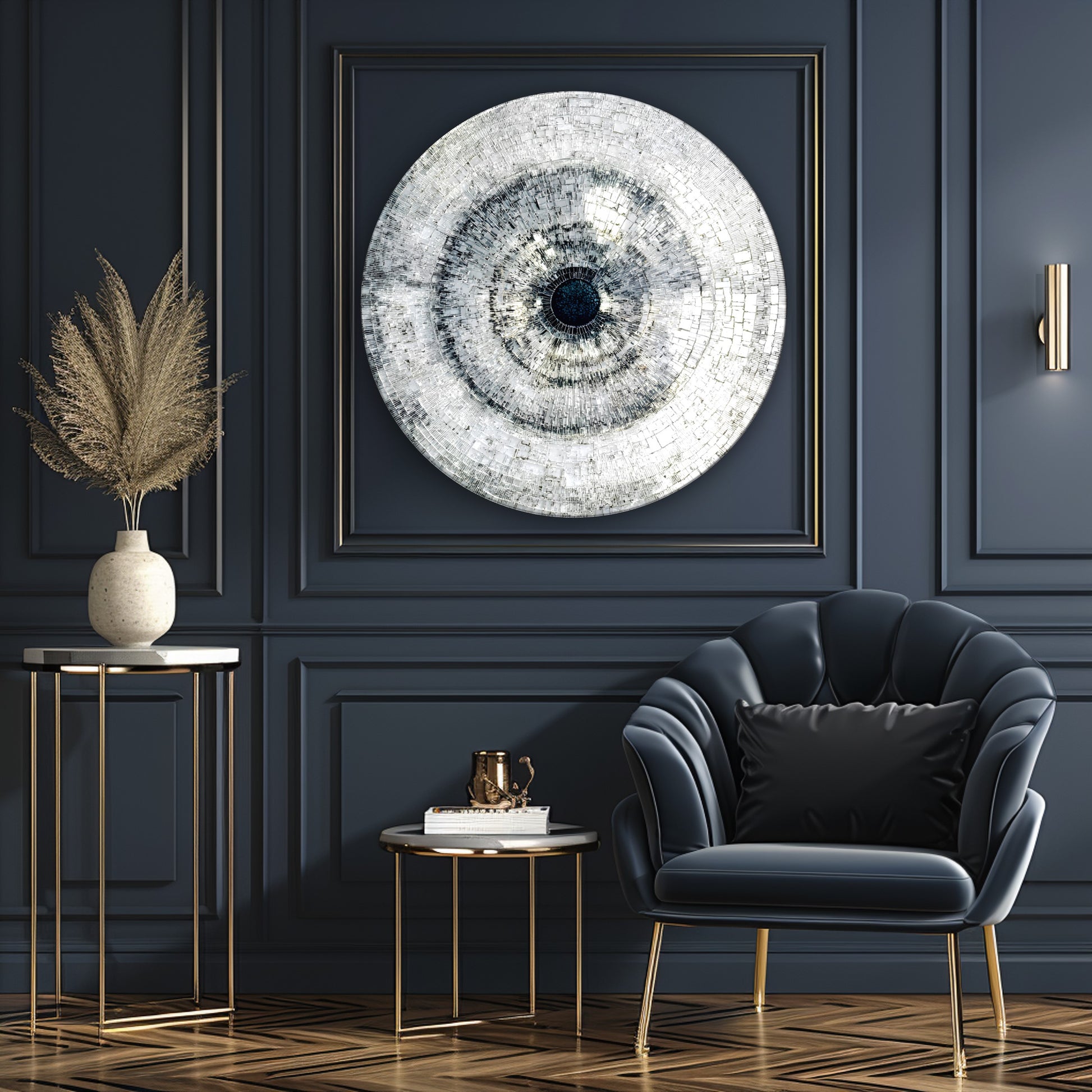 Gümüş Mozaik Desen Göz Bebeği Yuvarlak Cam Tablo