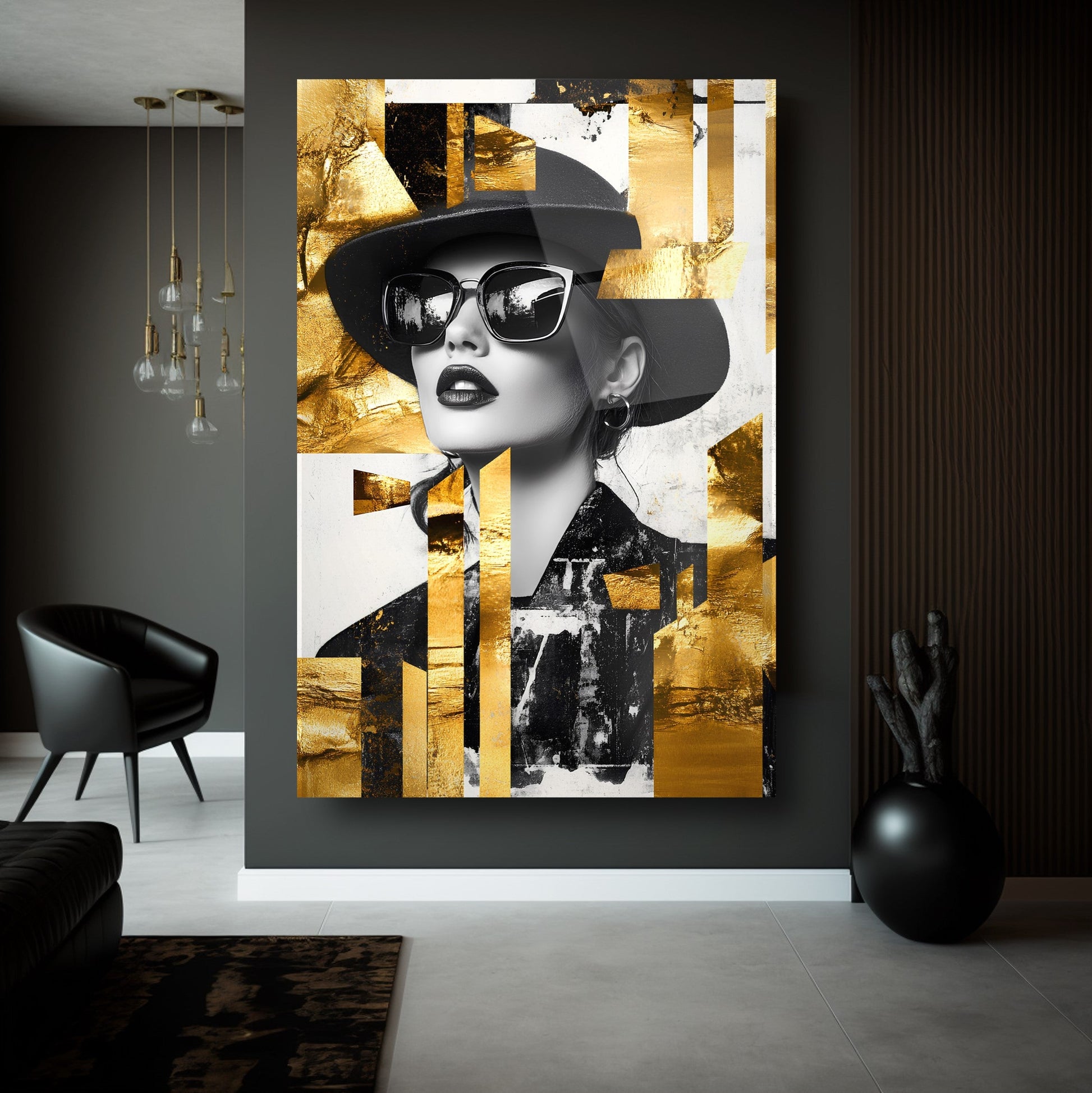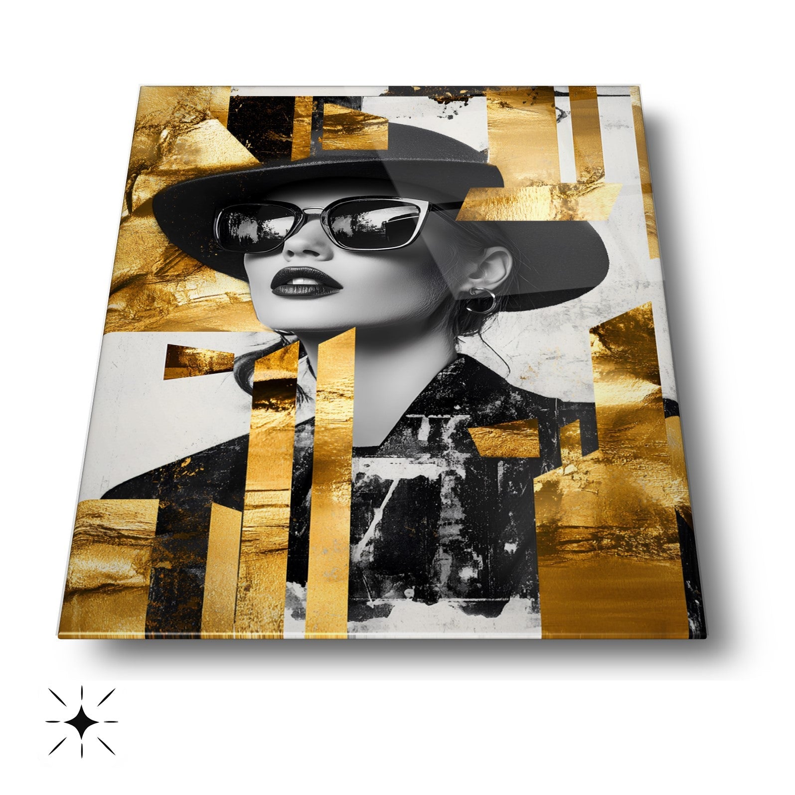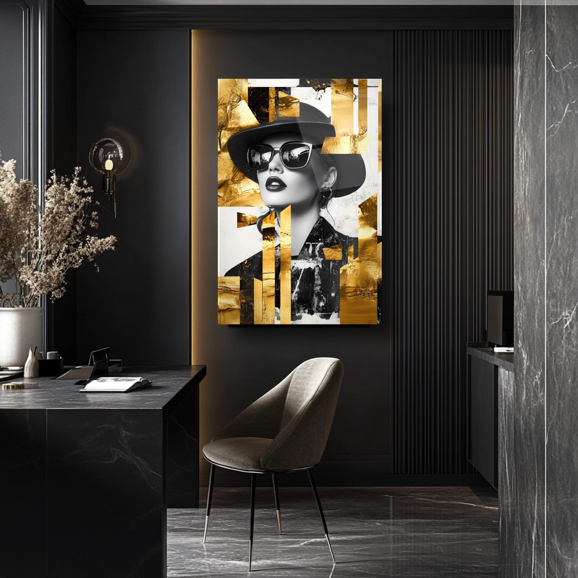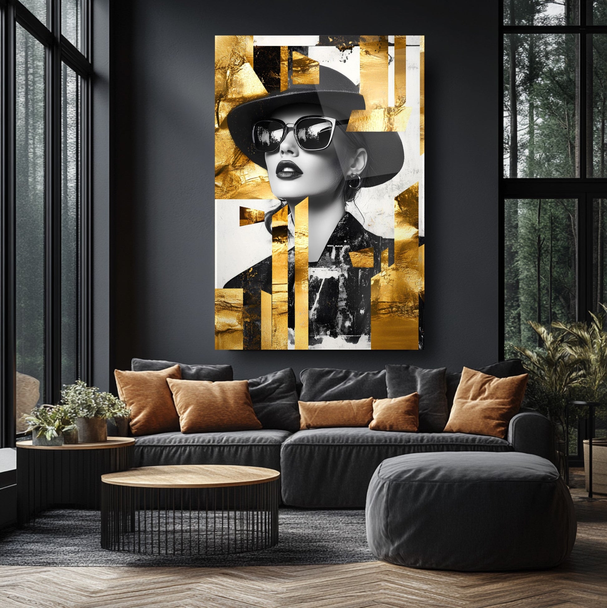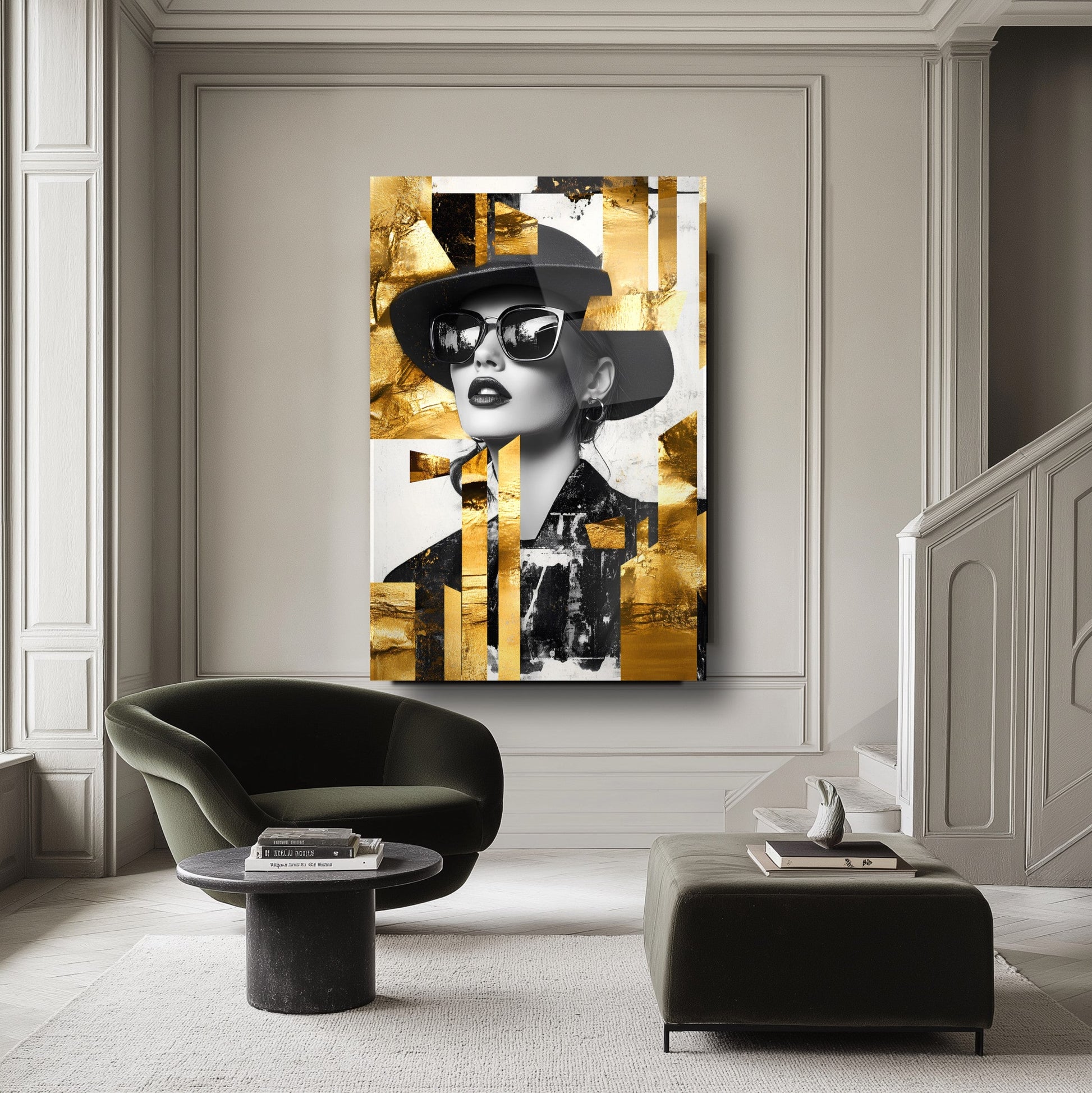 Güzellik Mekanlarınıza Tarz Bir Dokunuş: Gold Detay Şapkalı Kadın Cam Tablo