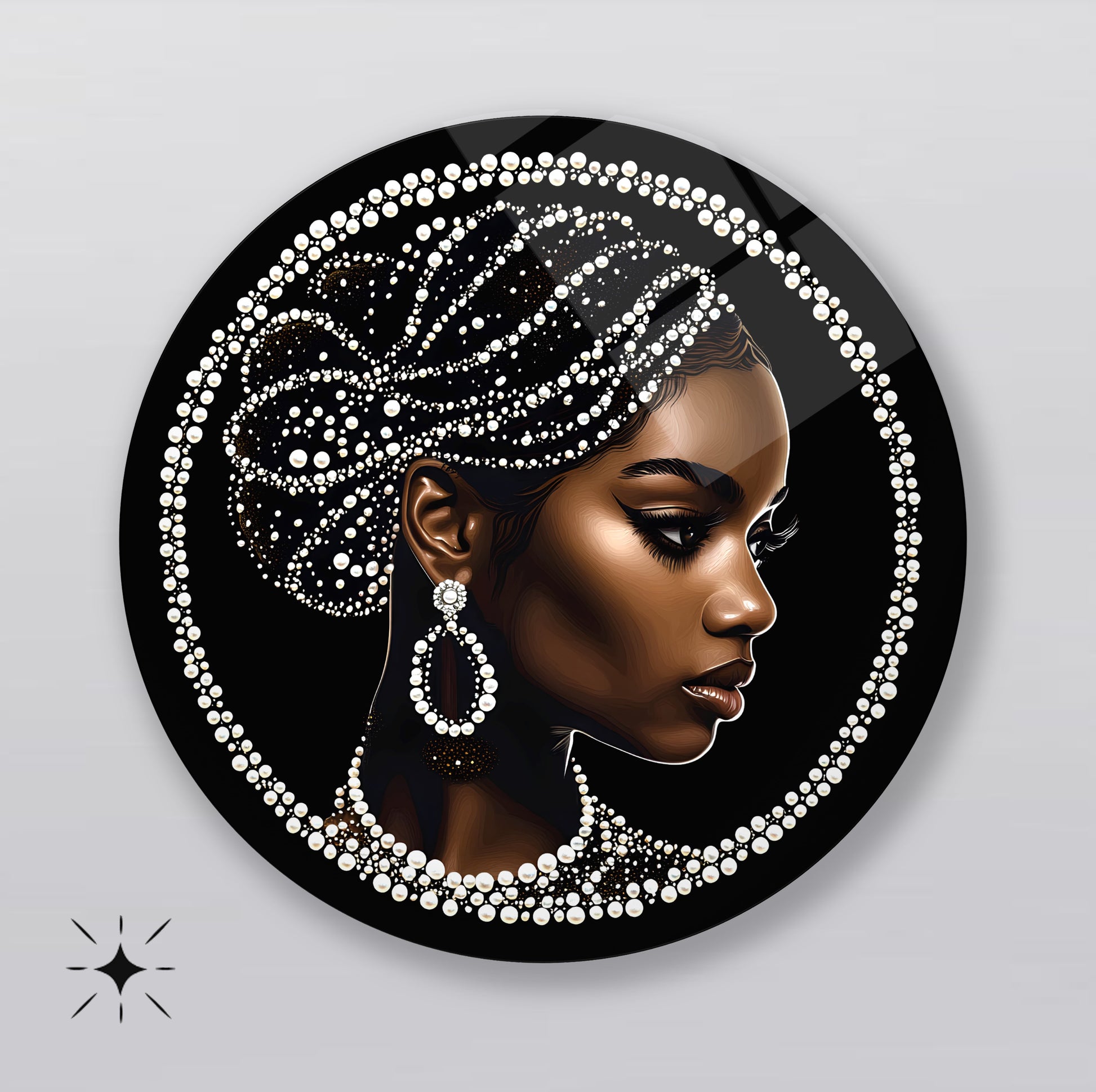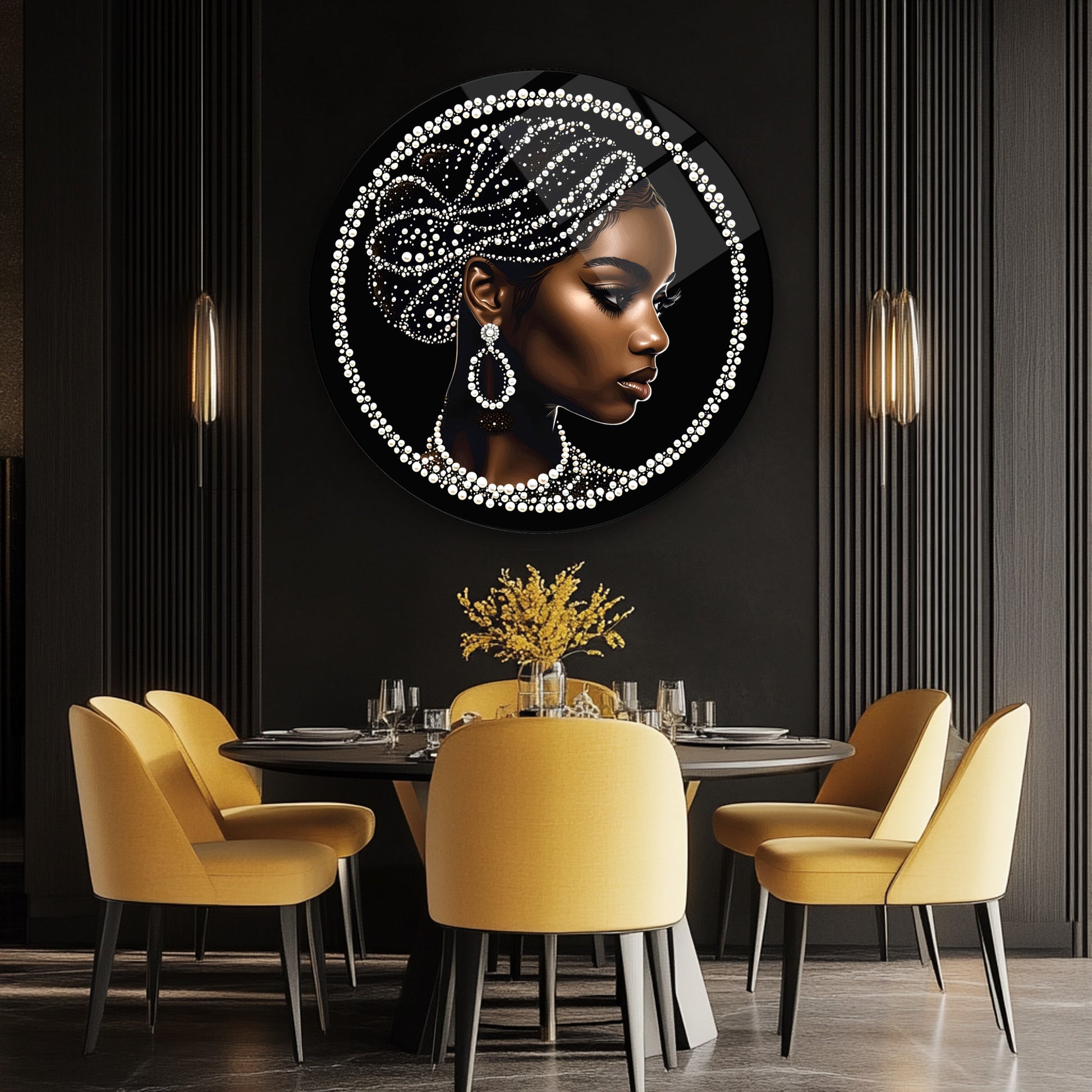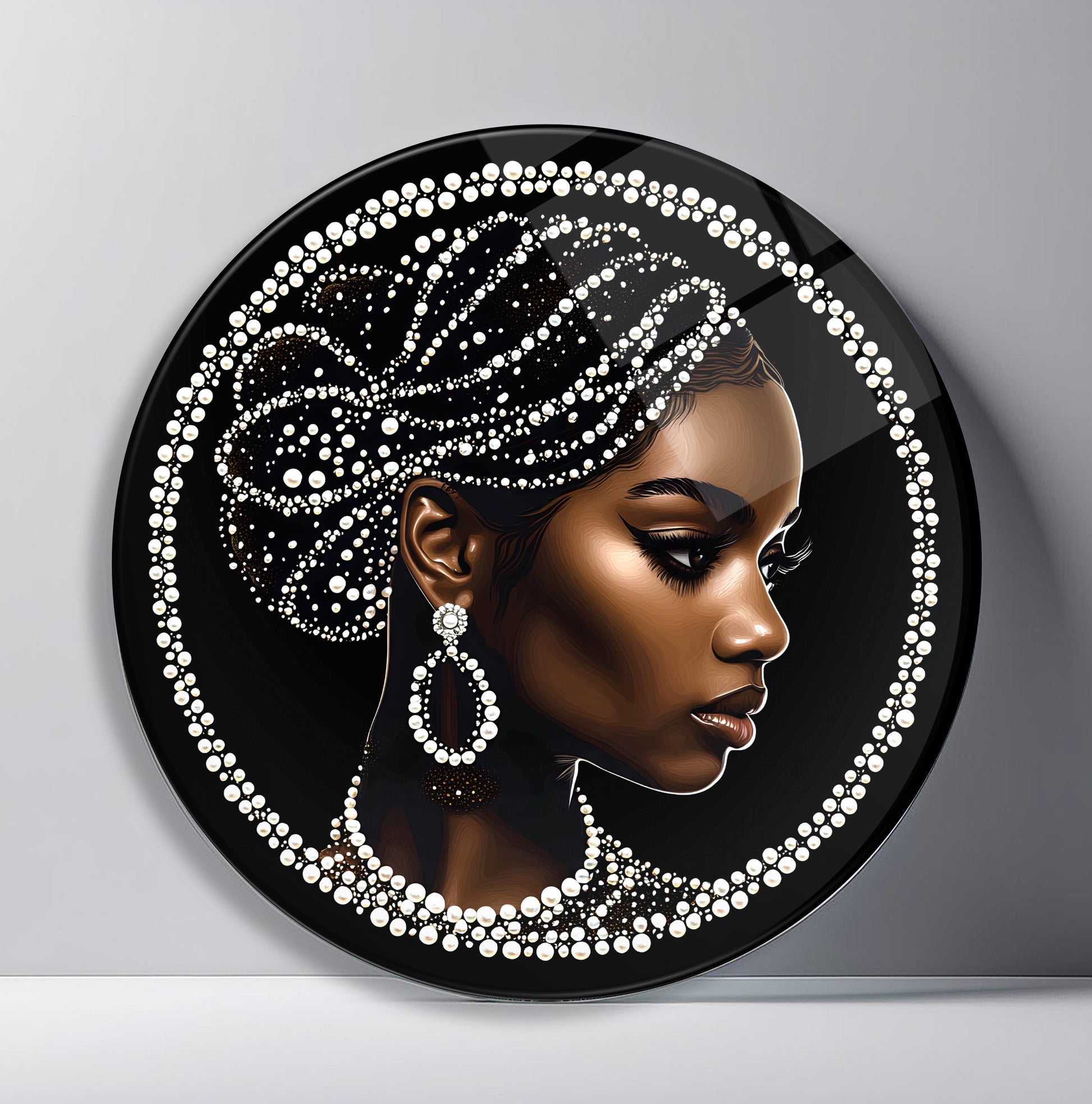 Mücevherli Siyahi Kadın Model Yuvarlak Cam Tablo