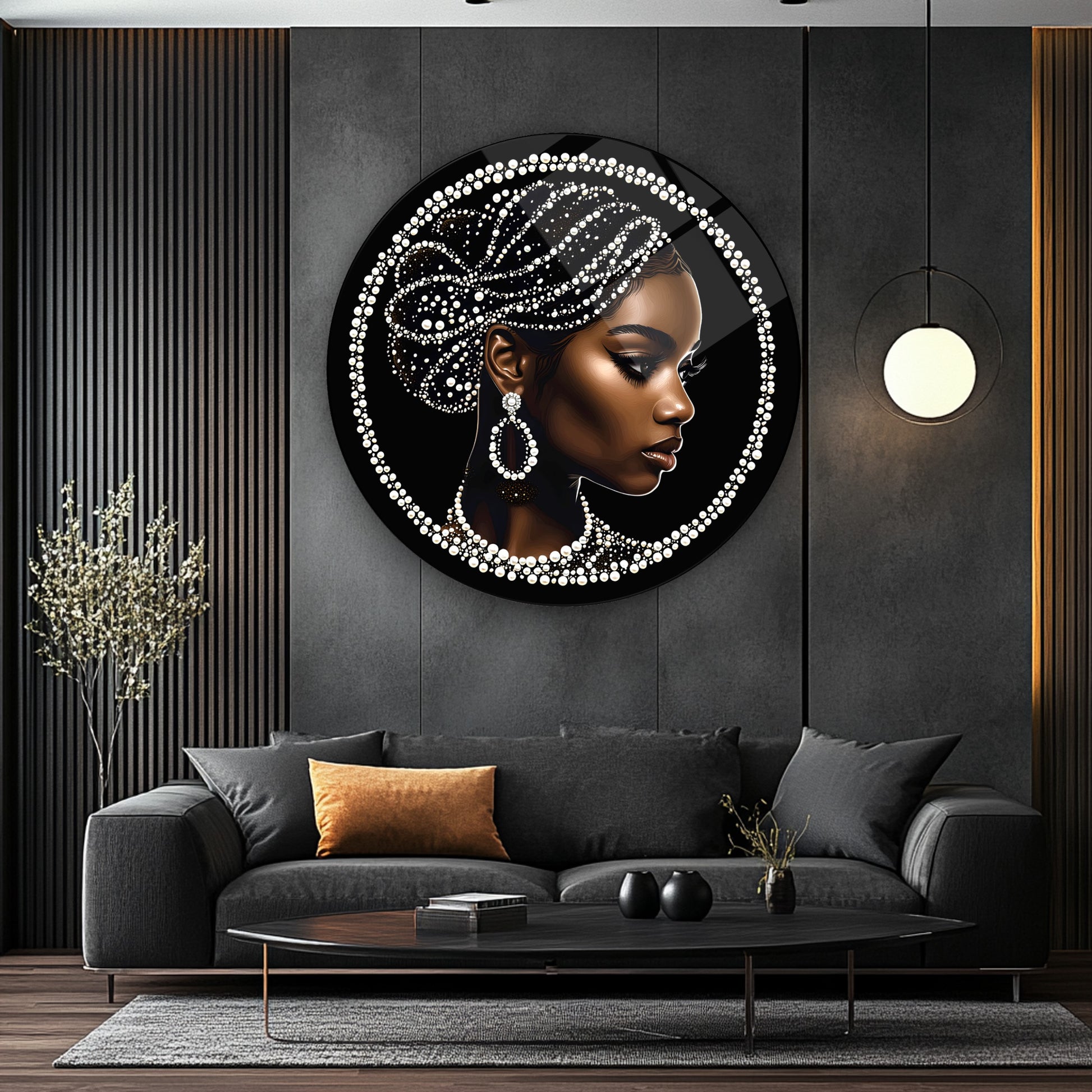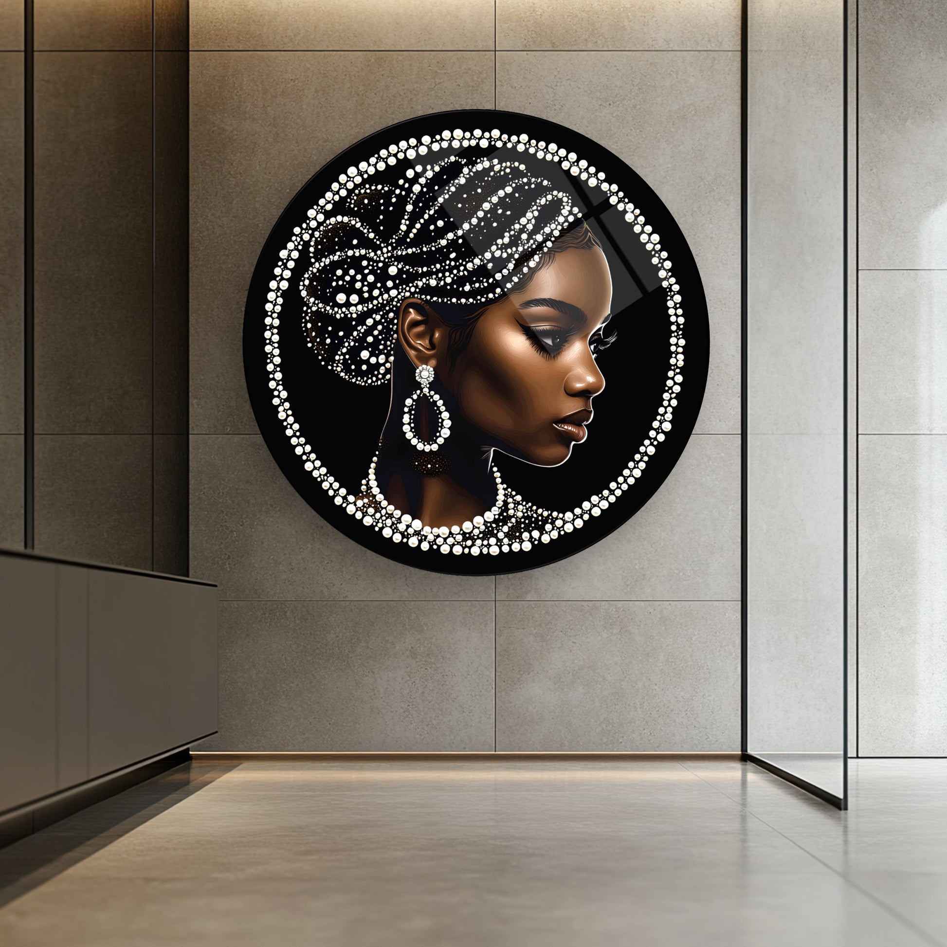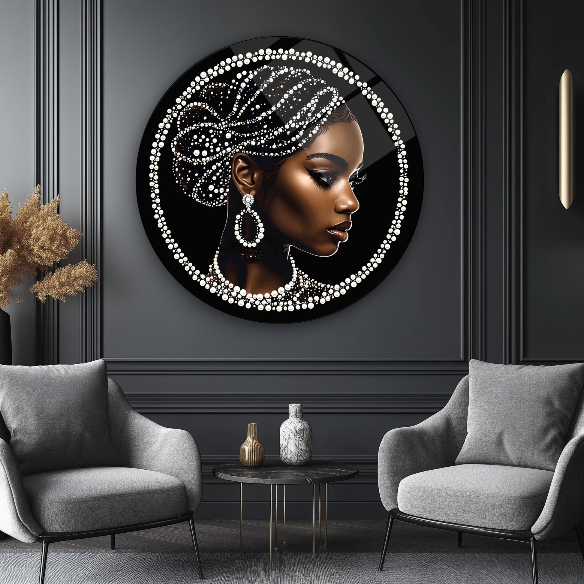 Mücevherli Siyahi Kadın Model Yuvarlak Cam Tablo