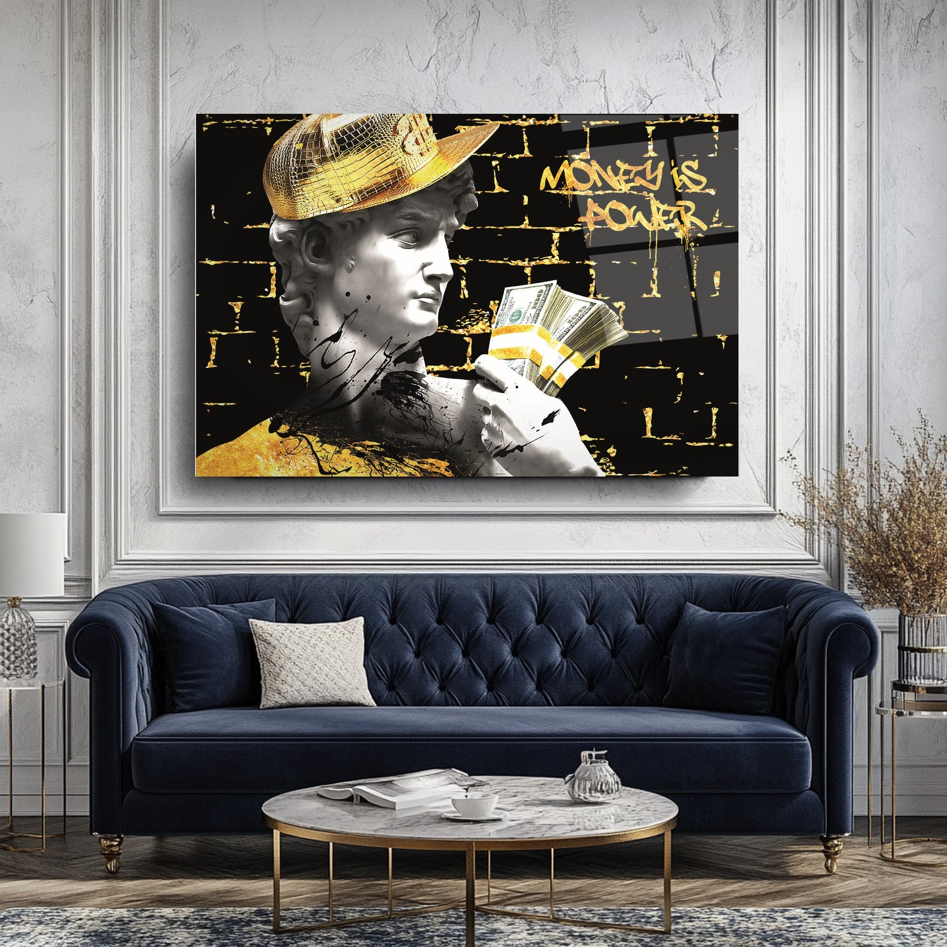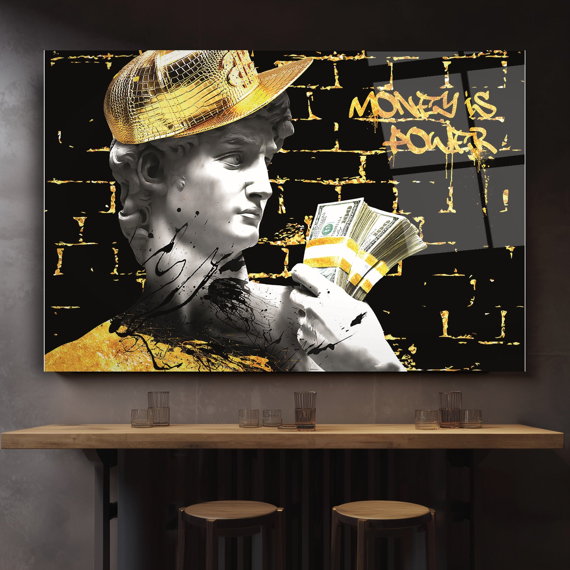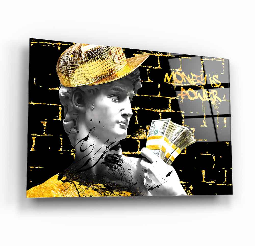 Sanat ve Finansın Buluştuğu Nokta: Dolar Davud Heykeli Gold Detay Cam Tablo