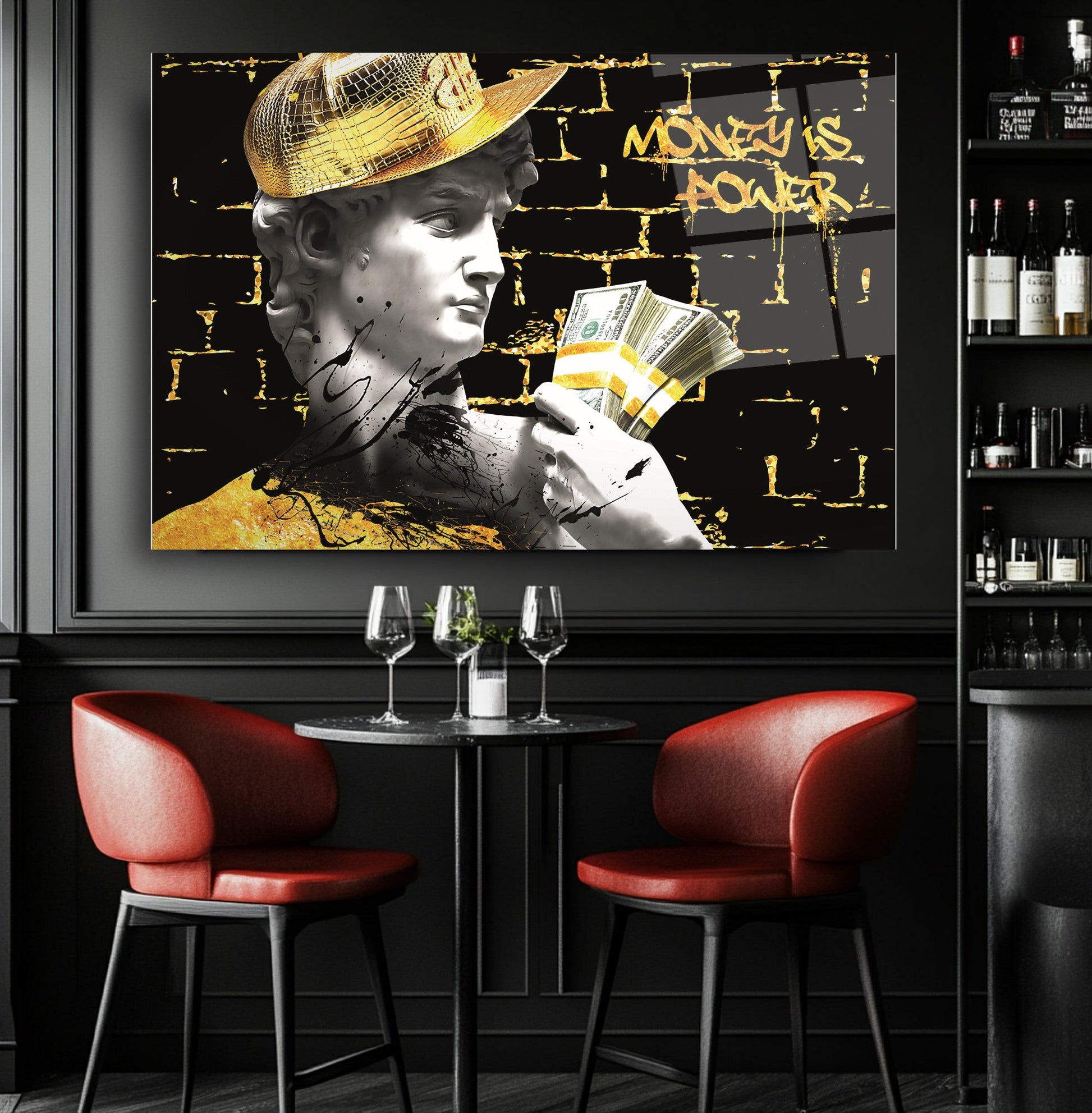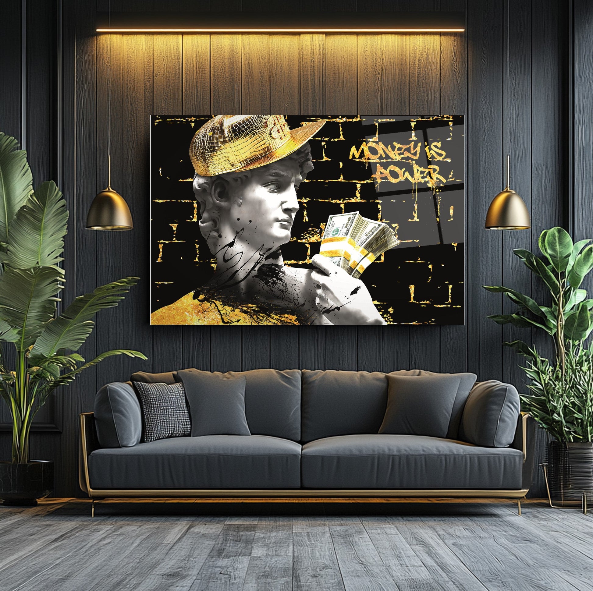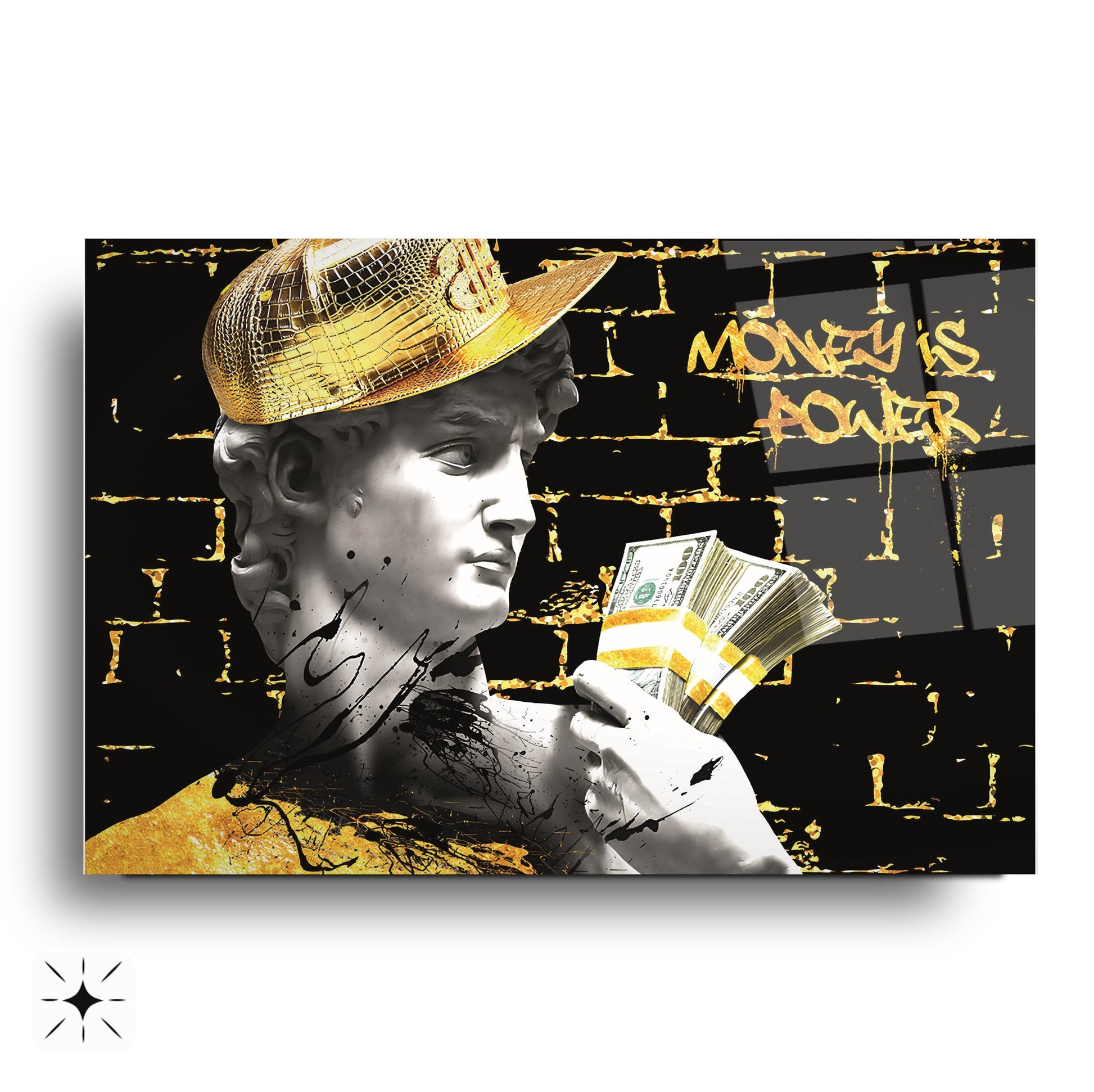 Sanat ve Finansın Buluştuğu Nokta: Dolar Davud Heykeli Gold Detay Cam Tablo