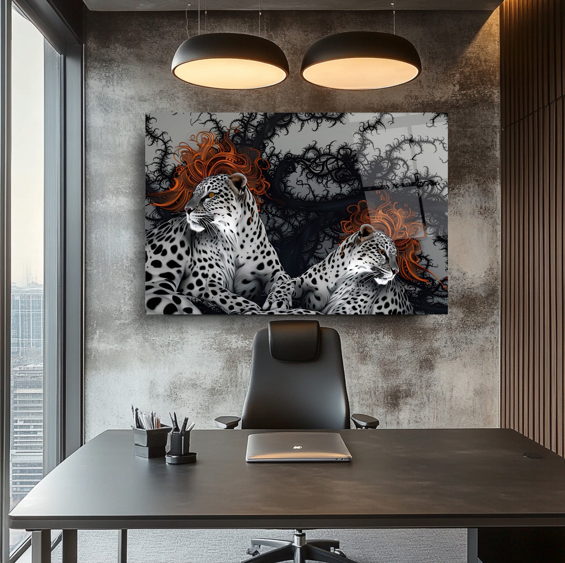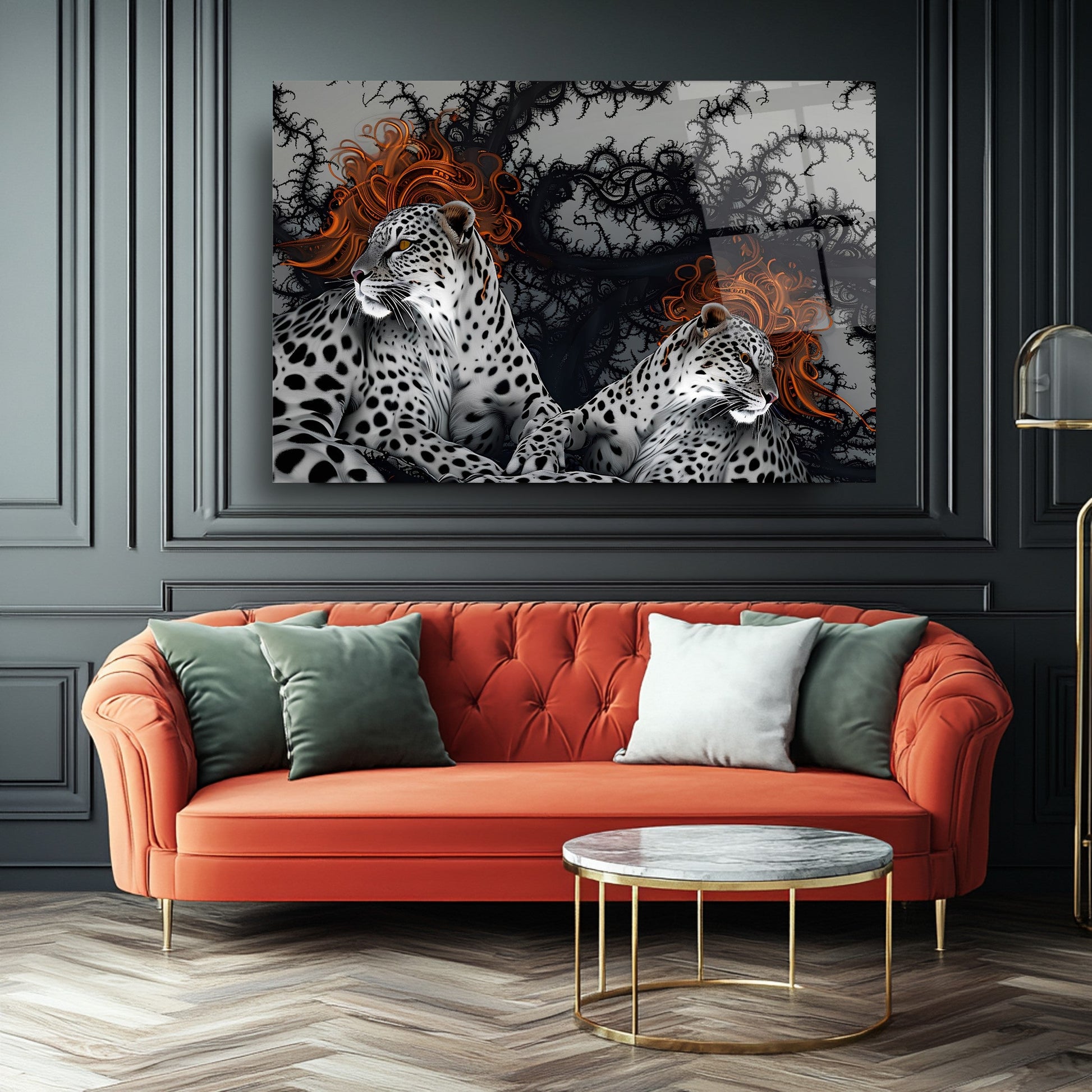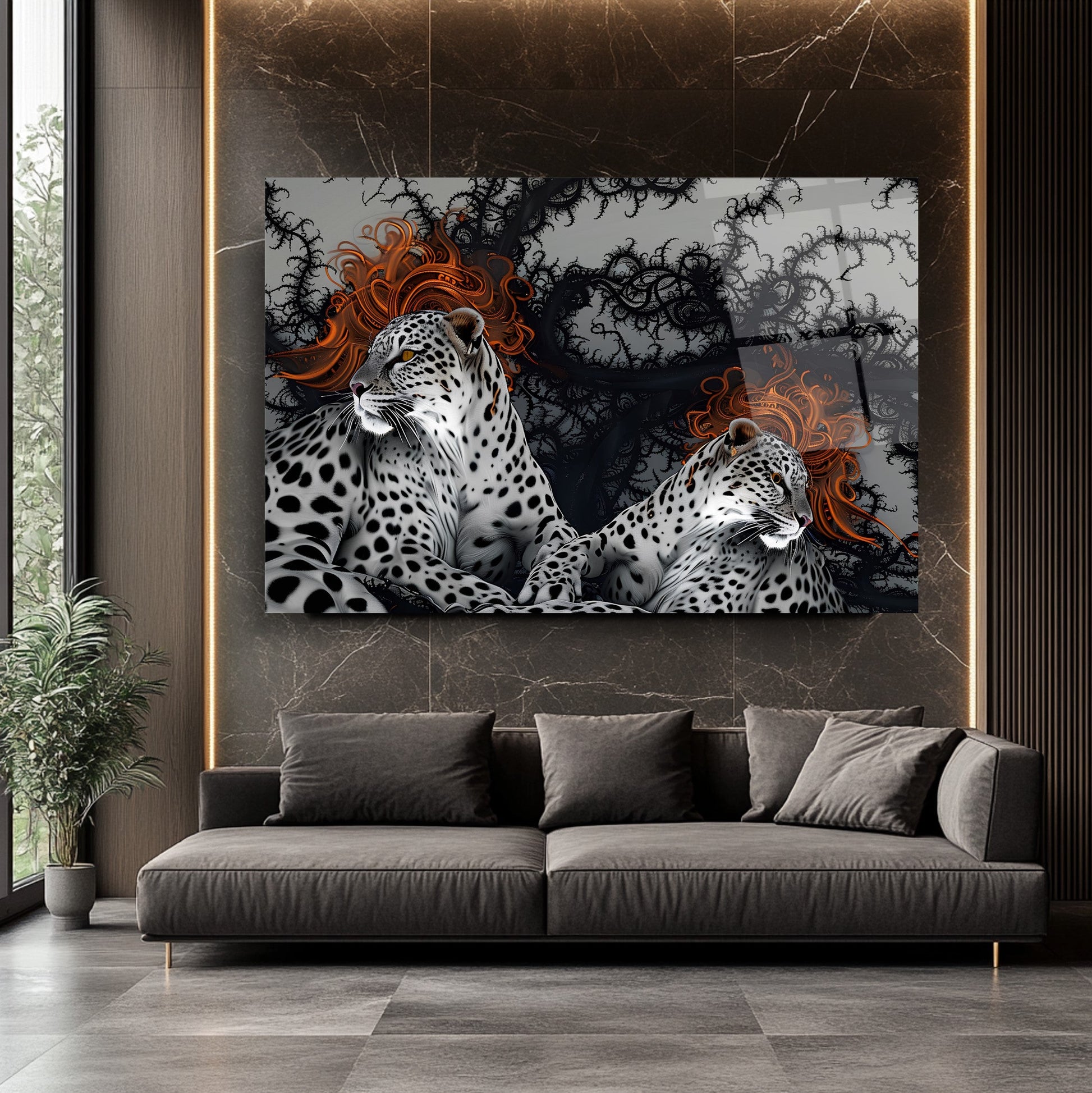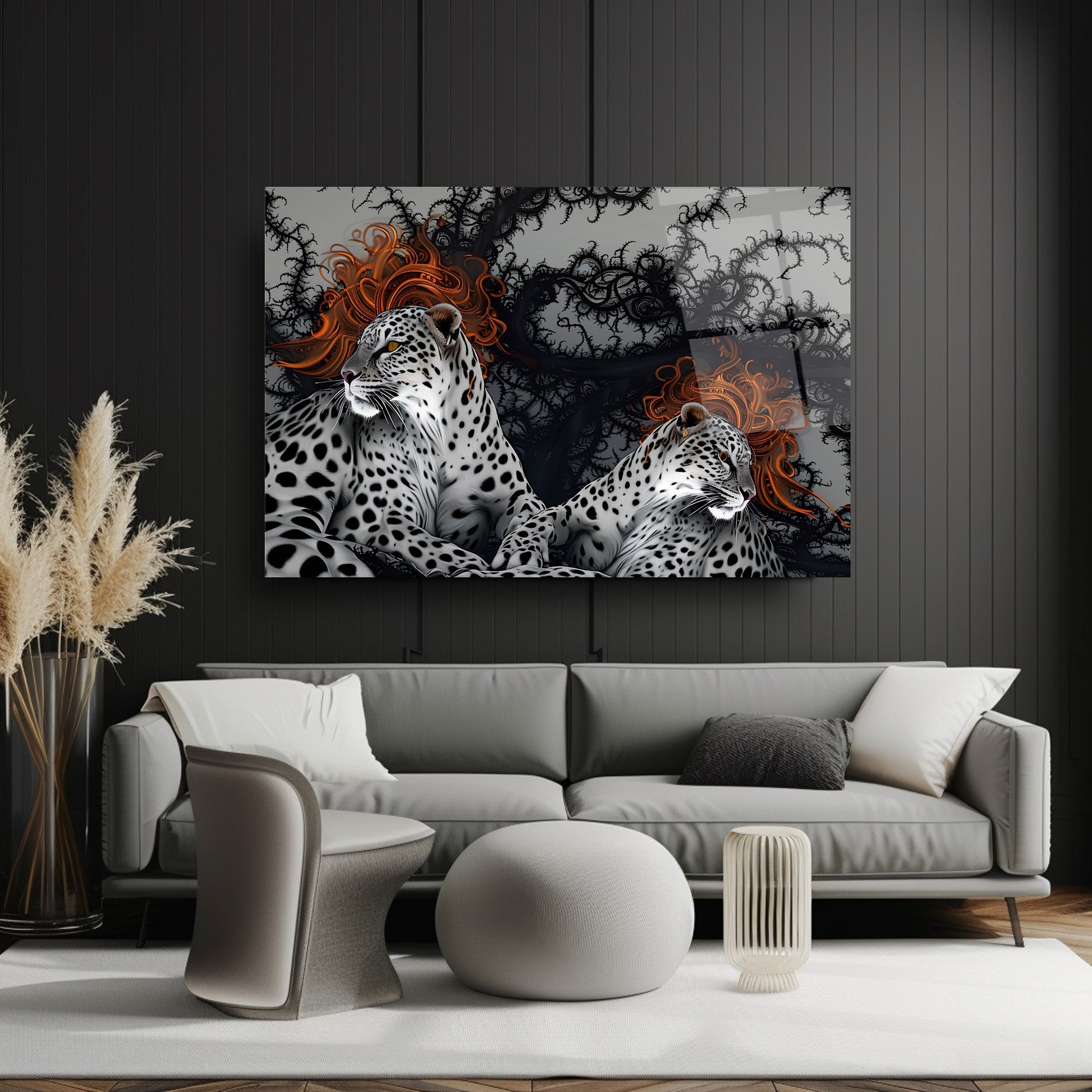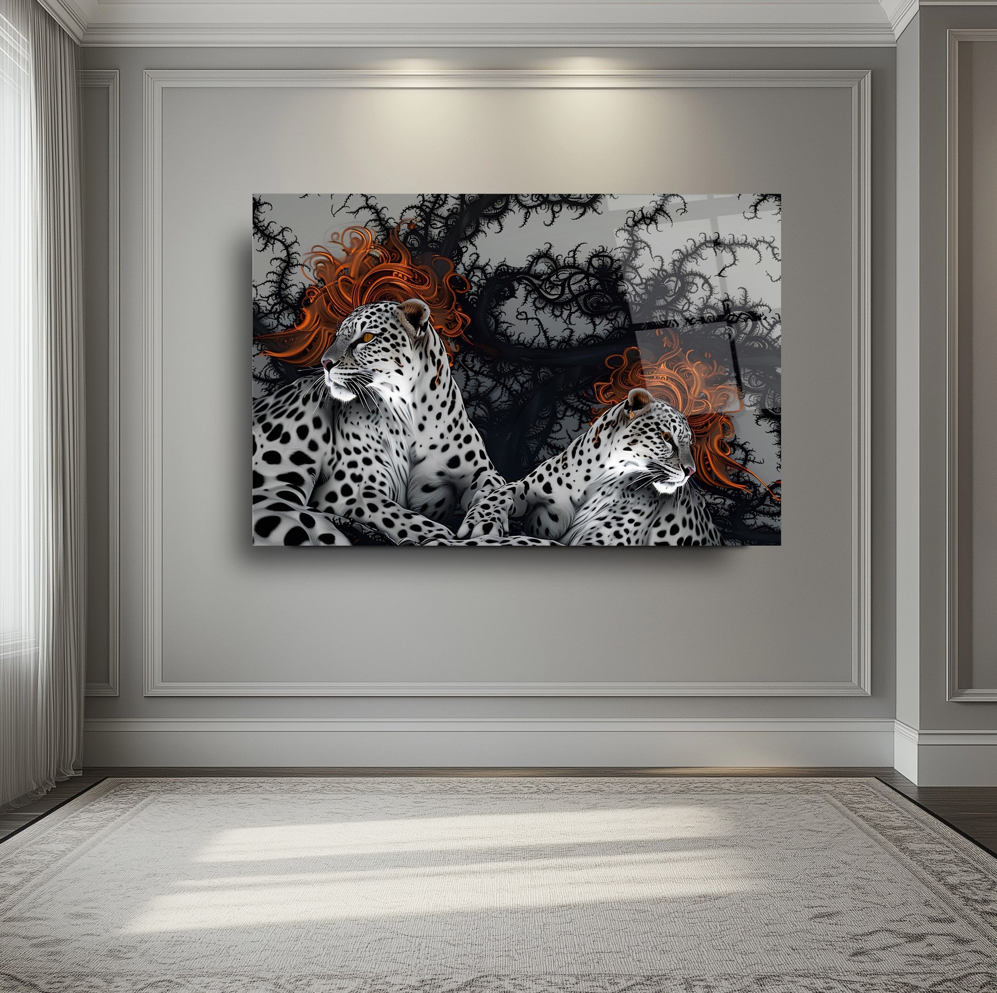 İkili leopar çiftinin modern ve şık tasarımı, soyut arka plan üzerinde etkileyici bir estetik sunar. Kırılmaz temperli cam ve UV baskı teknolojisiyle uzun ömürlü, canlı renklere sahip olan bu cam tablo, salon, ofis veya antre dekorasyonunda zarif bir vurgu yapar. Minimalist ve çerçevesiz tasarımı sayesinde her mekâna uyum sağlar. Hayvan figürlü dekorasyon arayanlar için ideal bir seçimdir.