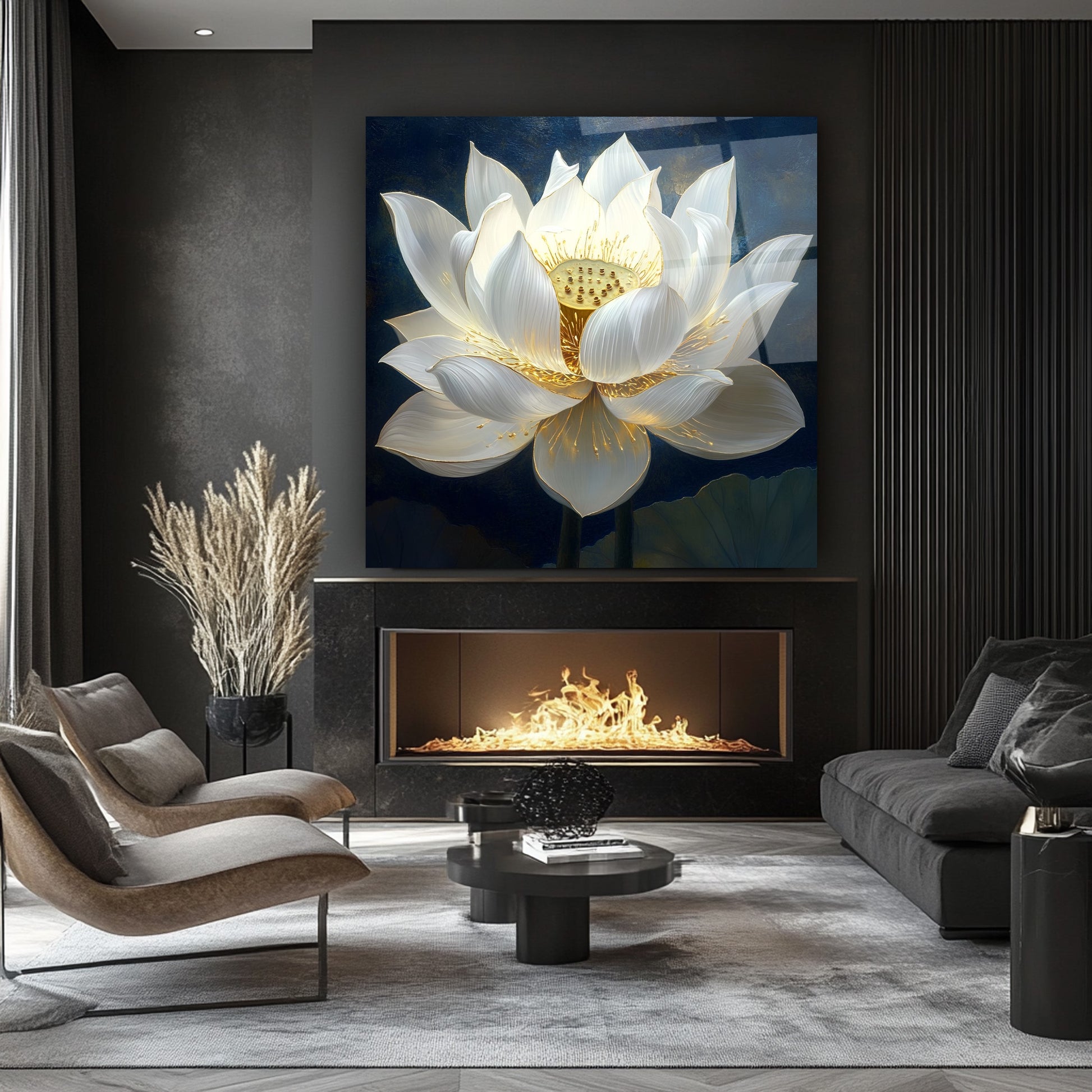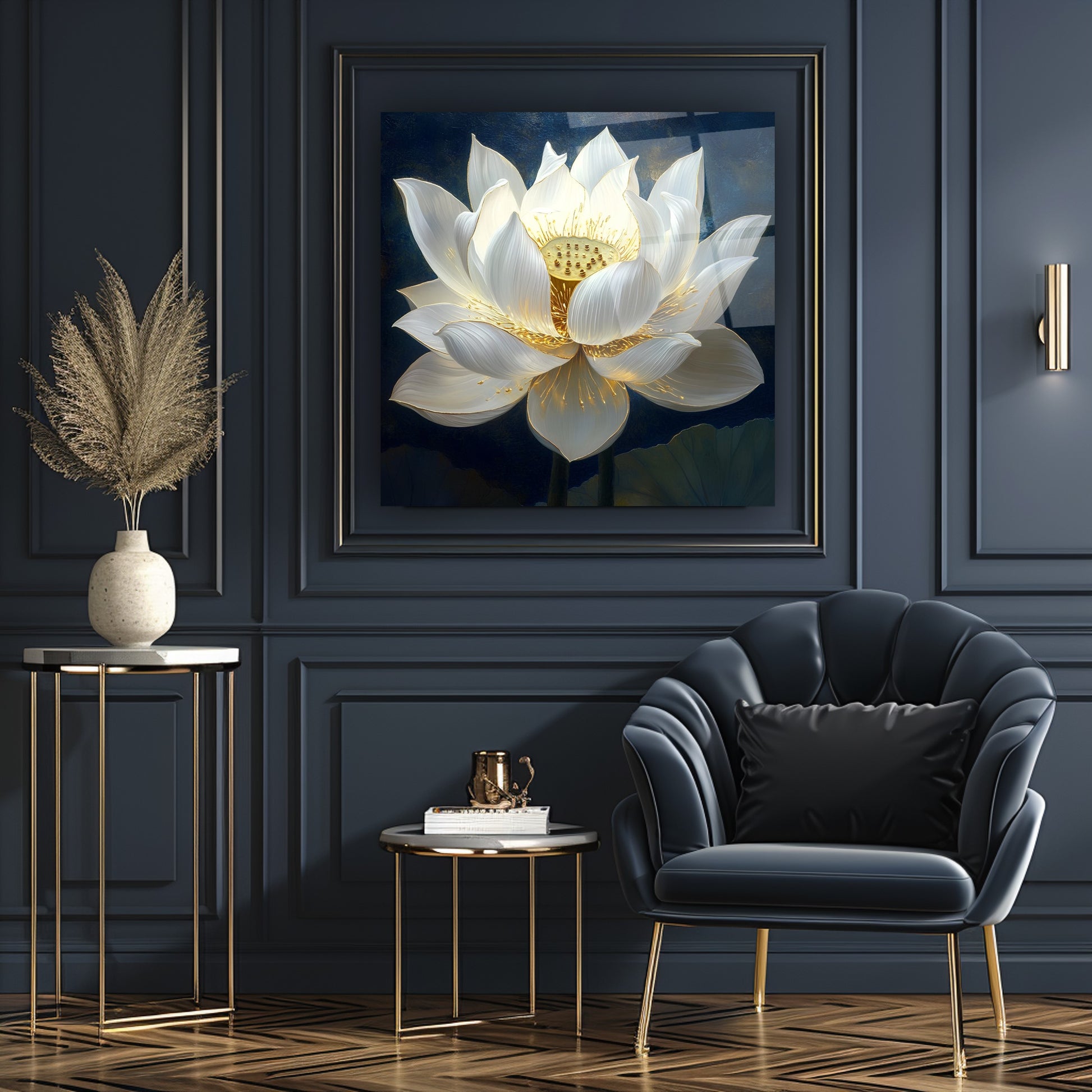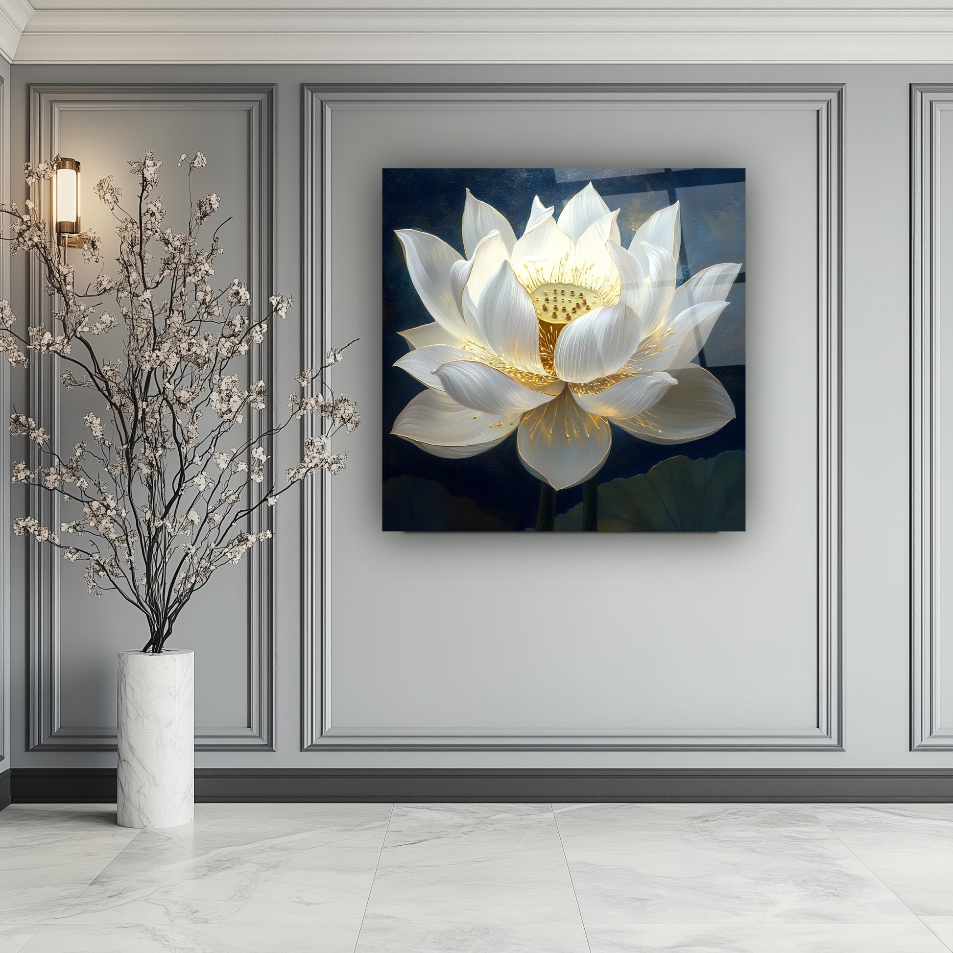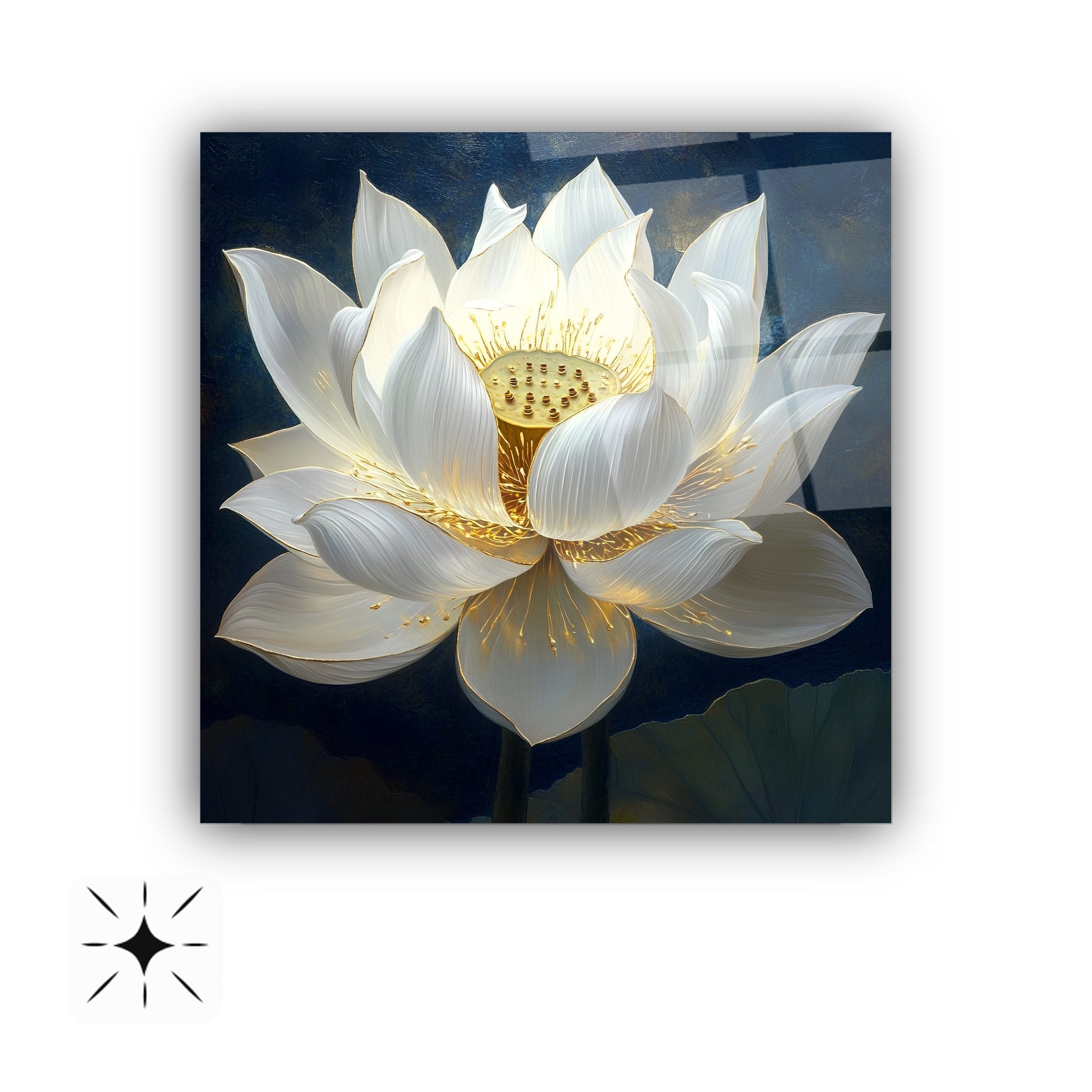 Lacivert zemin üzerinde kabartma beyaz çiçek detaylarıyla öne çıkan bu gerçek cam tablo, ışık efektleriyle derinlik ve zarafet sunar. Kırılmaz cam tablo yapısı sayesinde hem dayanıklı hem şık bir dekorasyon tercihidir. Modern yaşam alanlarında estetik bir vurgu arayanlar için ideal ve dikkat çekici bir cam tablo seçeneğidir.