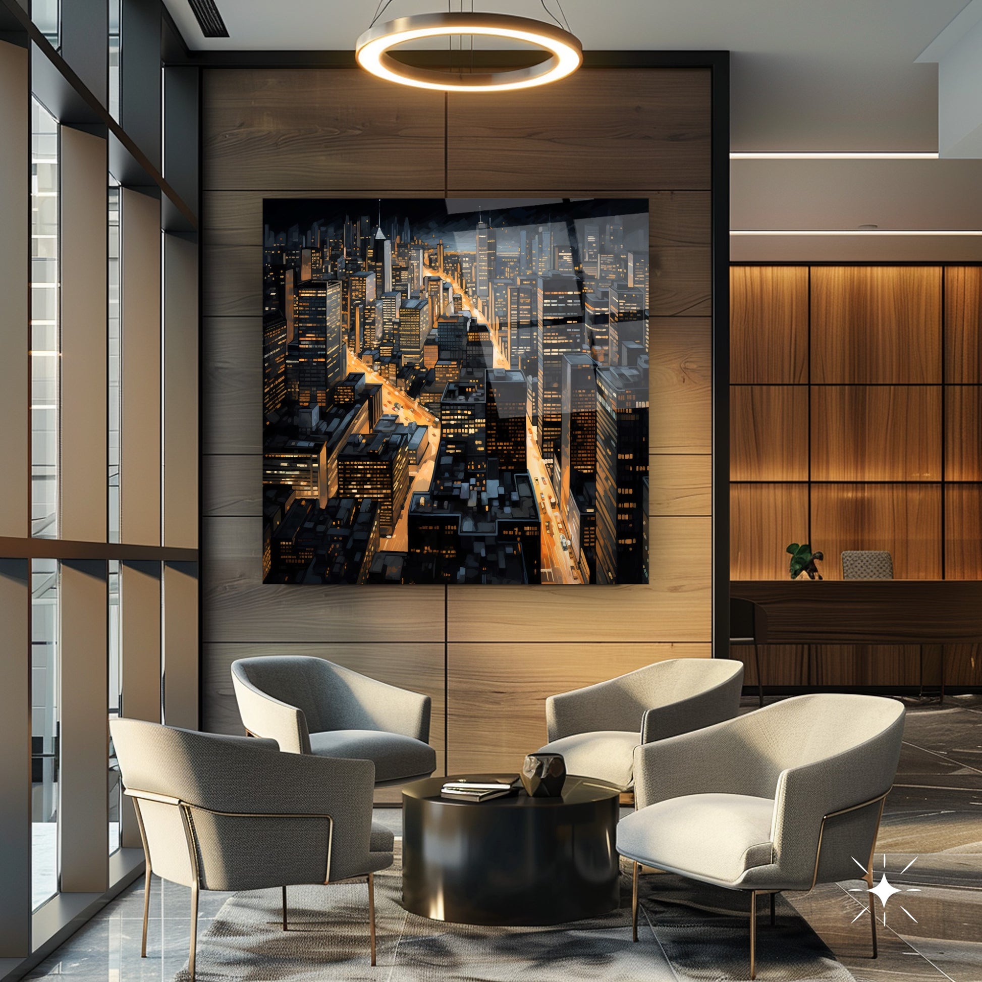 CamDeko’nun ışıklı gece şehir manzarası tasarımı, gökdelenler ve modern mimarinin zarif birleşimiyle ofisler, inşaat firmaları ve modern yaşam alanları için eşsiz bir dekorasyon seçeneği sunuyor. Kırılmaz temperli cam üzerine UV baskı ve ışık efektleriyle hazırlanmış bu tablo, mekana hem prestij hem de dinamizm katarken, detaylı işçiliği ve canlı renkleriyle her ortamda dikkat çekiyor. Uzun ömürlü dayanıklı yapısı sayesinde, çalışma alanlarınıza modern ve profesyonel bir atmosfer yaratır. CamDeko kalitesiyle tasarlanan bu ürün, iş yerlerinize estetik bir dokunuş arayanlar için mükemmel bir tercih.