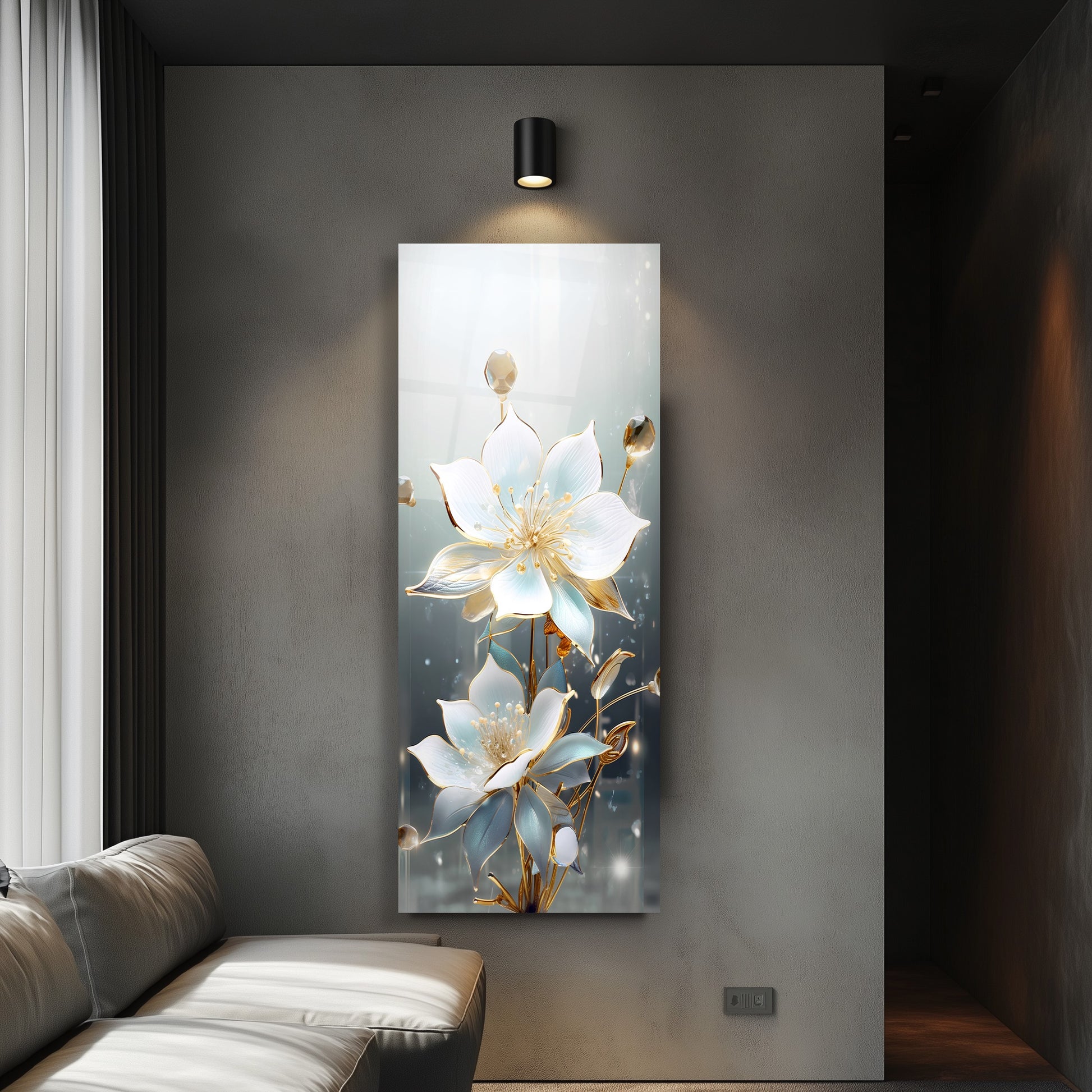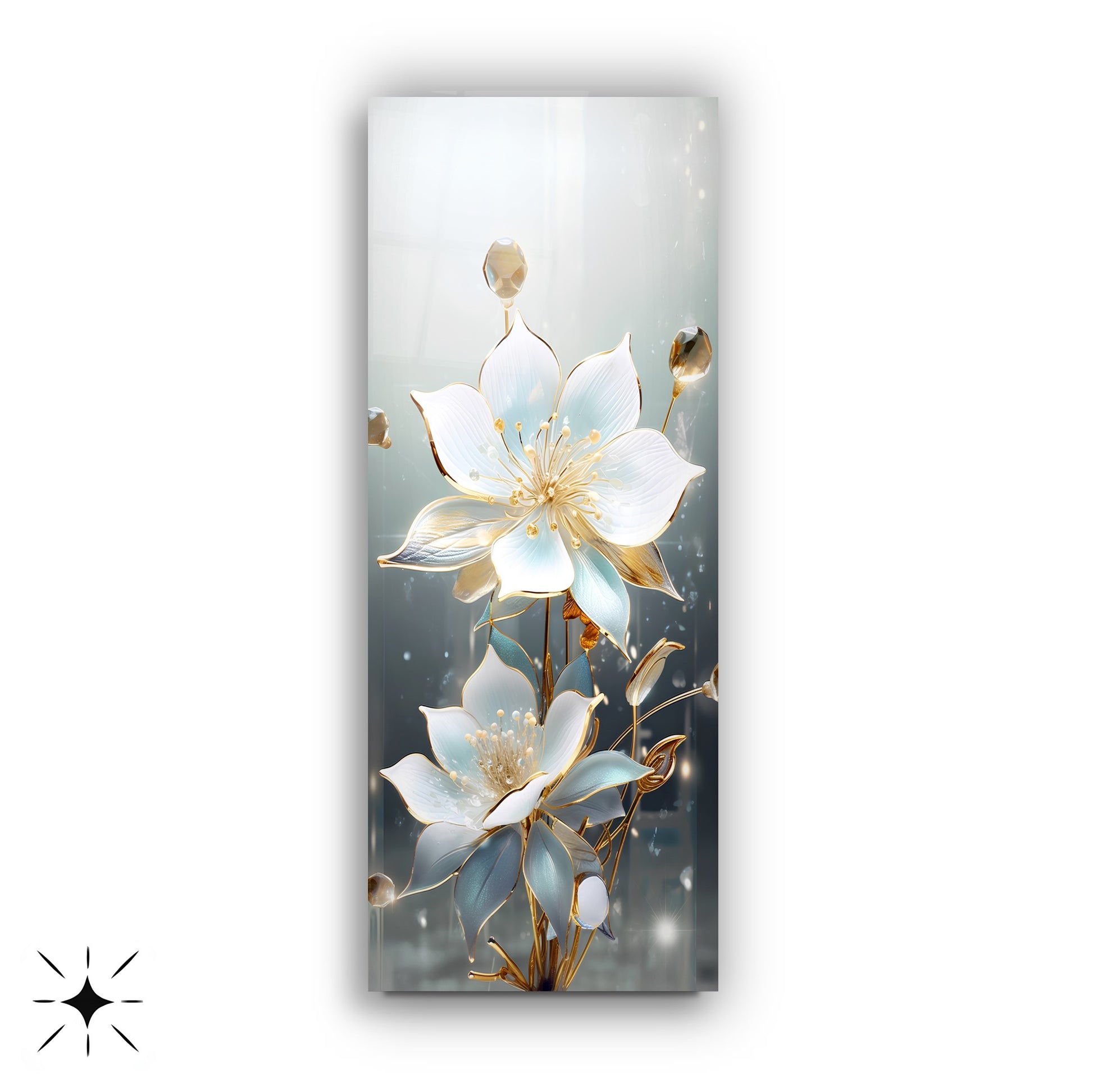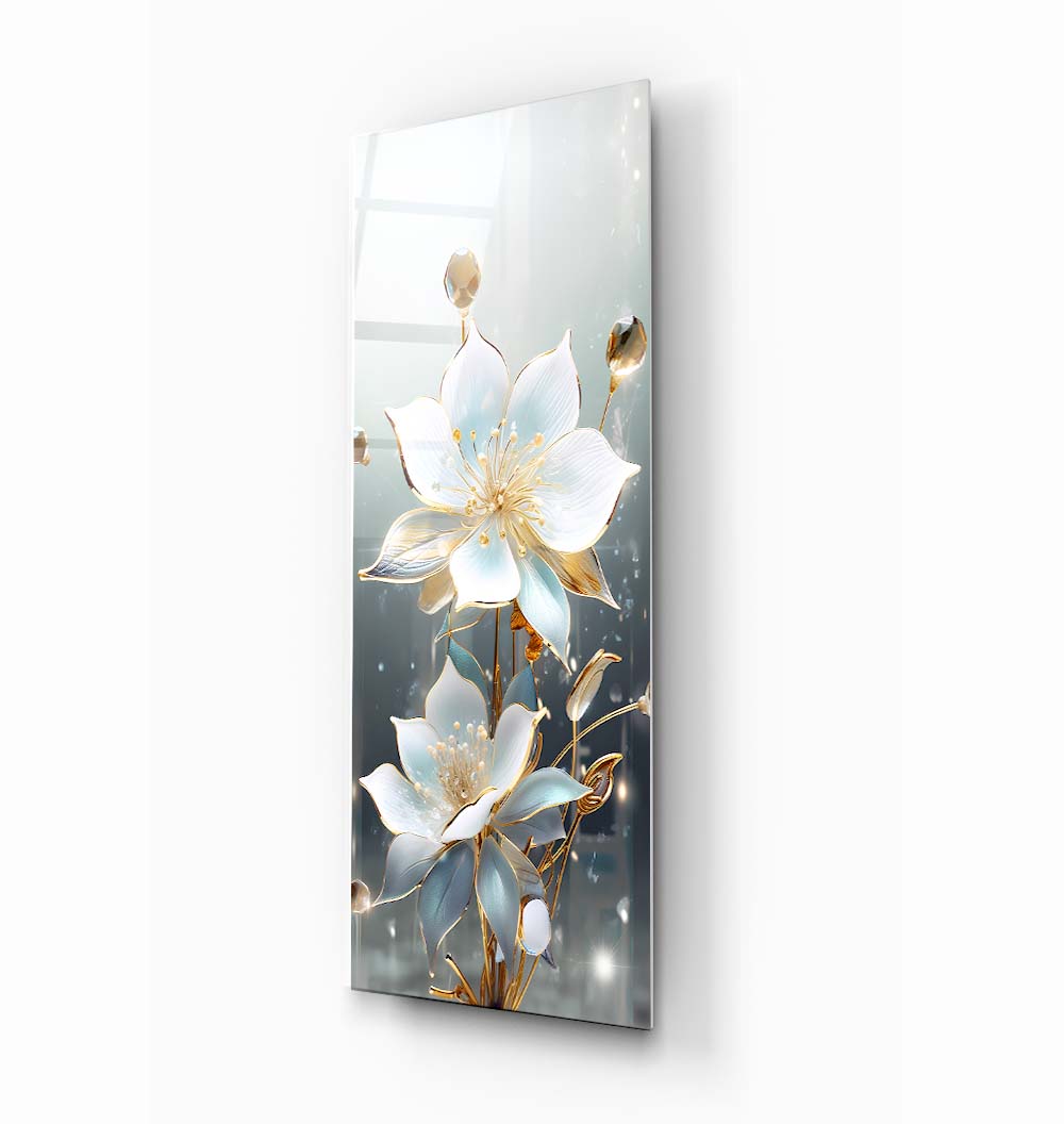 Işıltılı yüzeyi ve kabartmalı beyaz bahar çiçekleriyle zarif bir görünüm sunan bu panoramik gerçek cam tablo, modern dekorasyonlara ferahlık ve sofistike bir hava katar. Kırılmaz cam yapısı sayesinde uzun ömürlü ve dayanıklıdır. Geniş yatay formu, duvarda dengeli ve etkileyici bir atmosfer yaratır. Doğal zarafet ve şıklığı bir araya getiren dekorasyon arayanlar için mükemmel bir tercihtir.