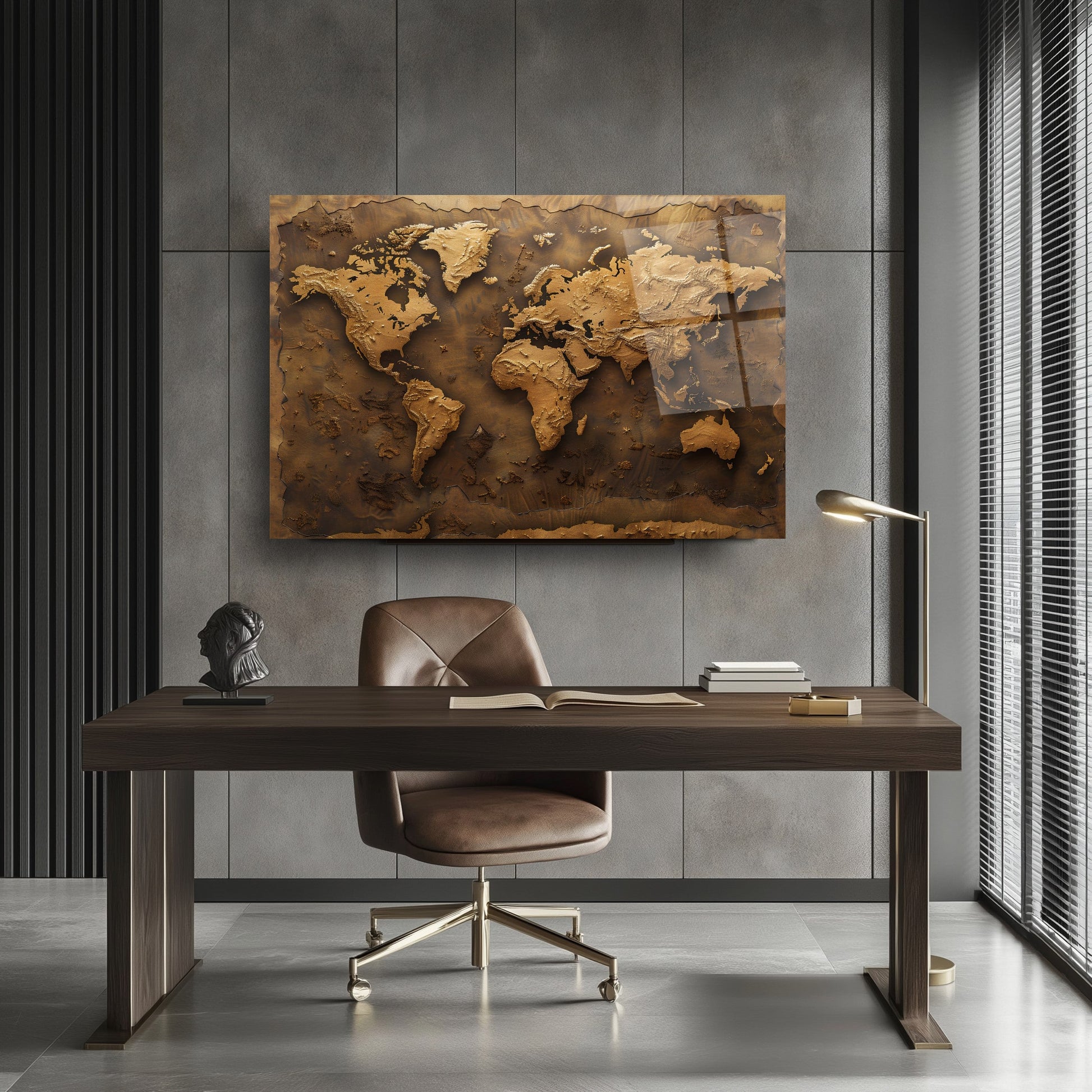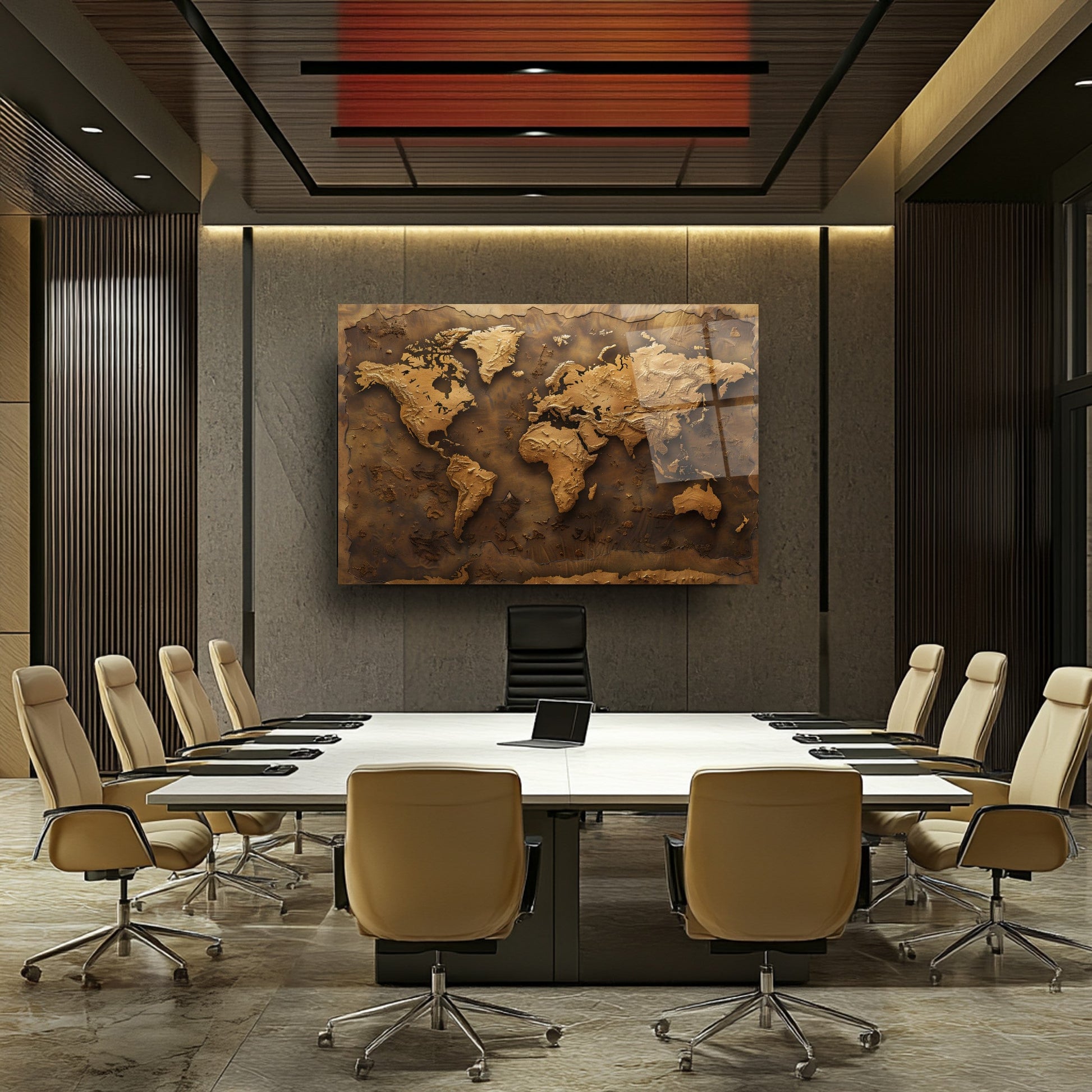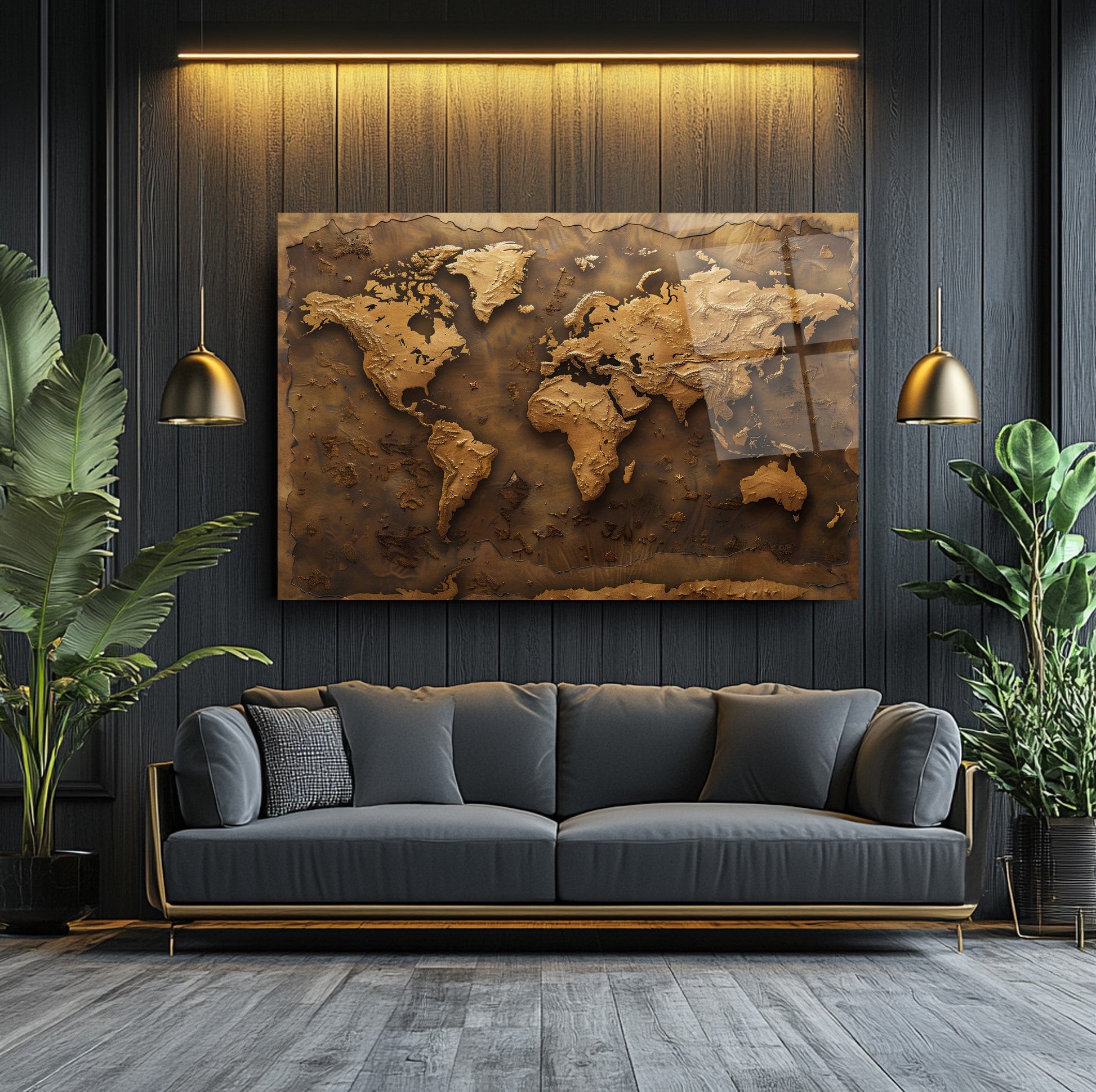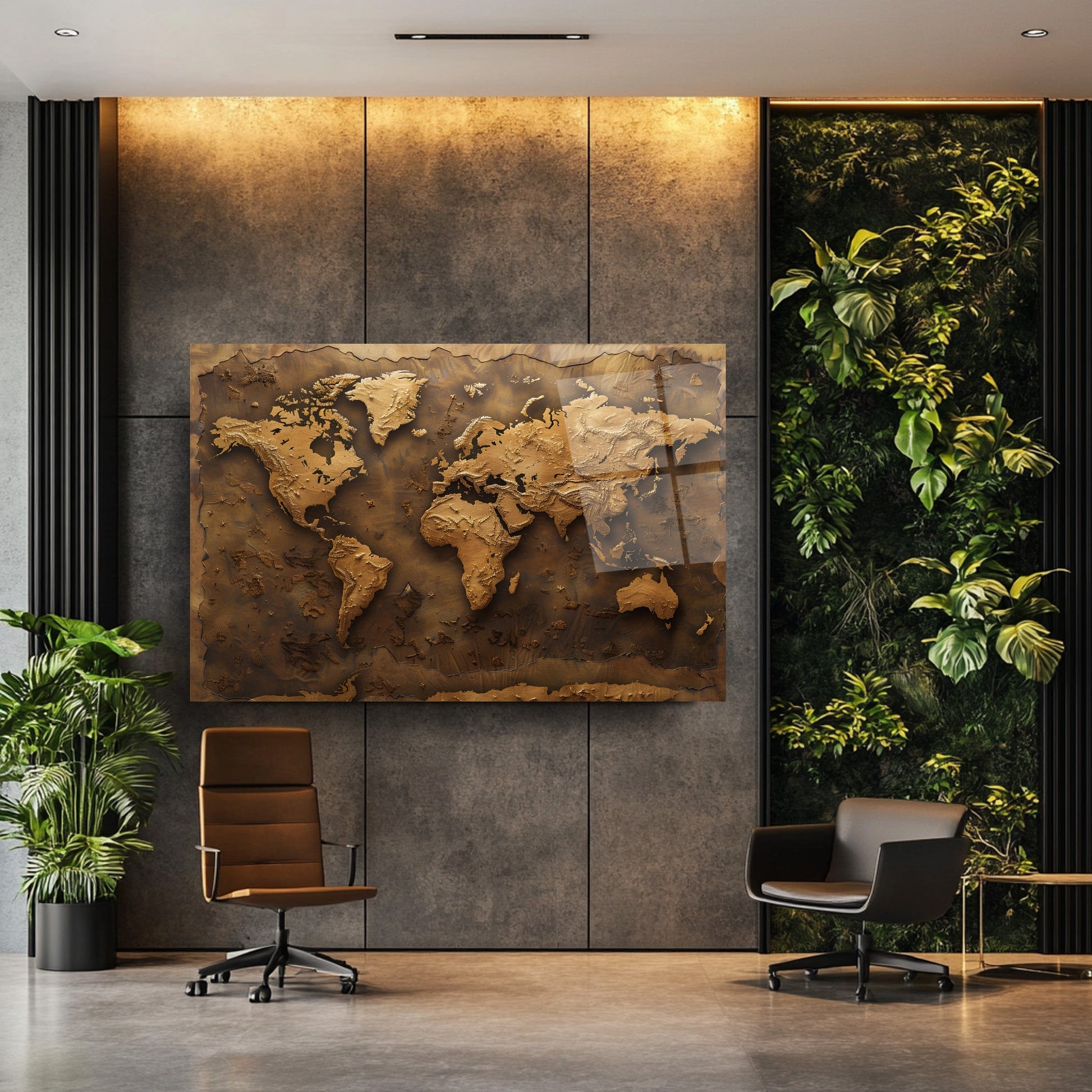 Kahverenginin sıcak tonlarında, kabartmalı detaylarla işlenmiş bu dünya haritası, mekânınıza zarif ve sofistike bir dokunuş katıyor. 4 mm kalınlığında, kırılmaya karşı 10 kat daha dayanıklı temperli cam üzerine UV dijital baskı teknolojisiyle işlenen bu eser, renklerin solmasını engeller ve uzun ömürlü kullanım sunar. Rodajlanmış kenarları sayesinde estetik ve güvenli bir görünüm sağlar. Kolay montaj için tüm aksesuarlar kutu içinde sunulur. Ofis, makam odası veya antre gibi farklı mekanlarda şıklık ve prestij arayanlar için ideal bir tercihtir.