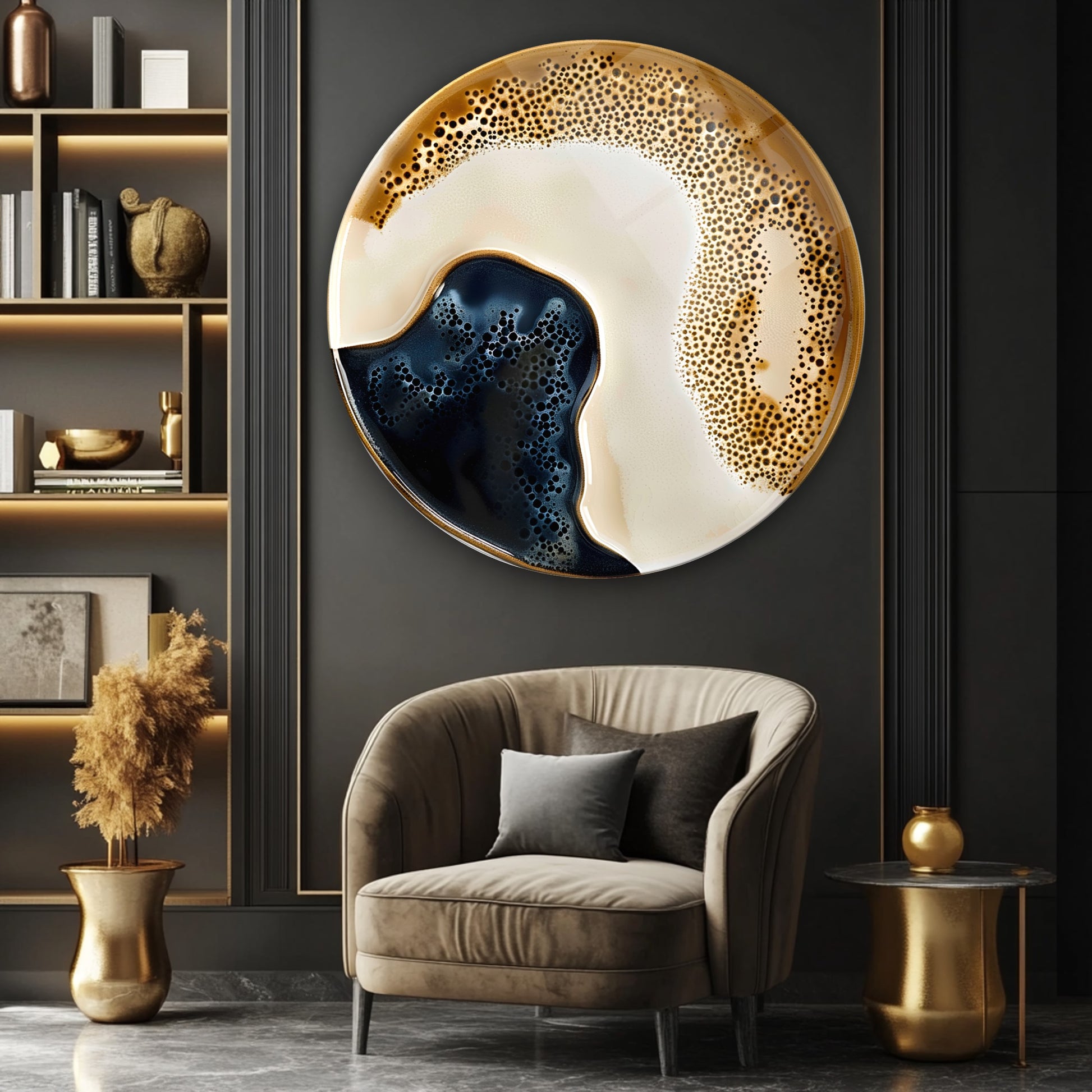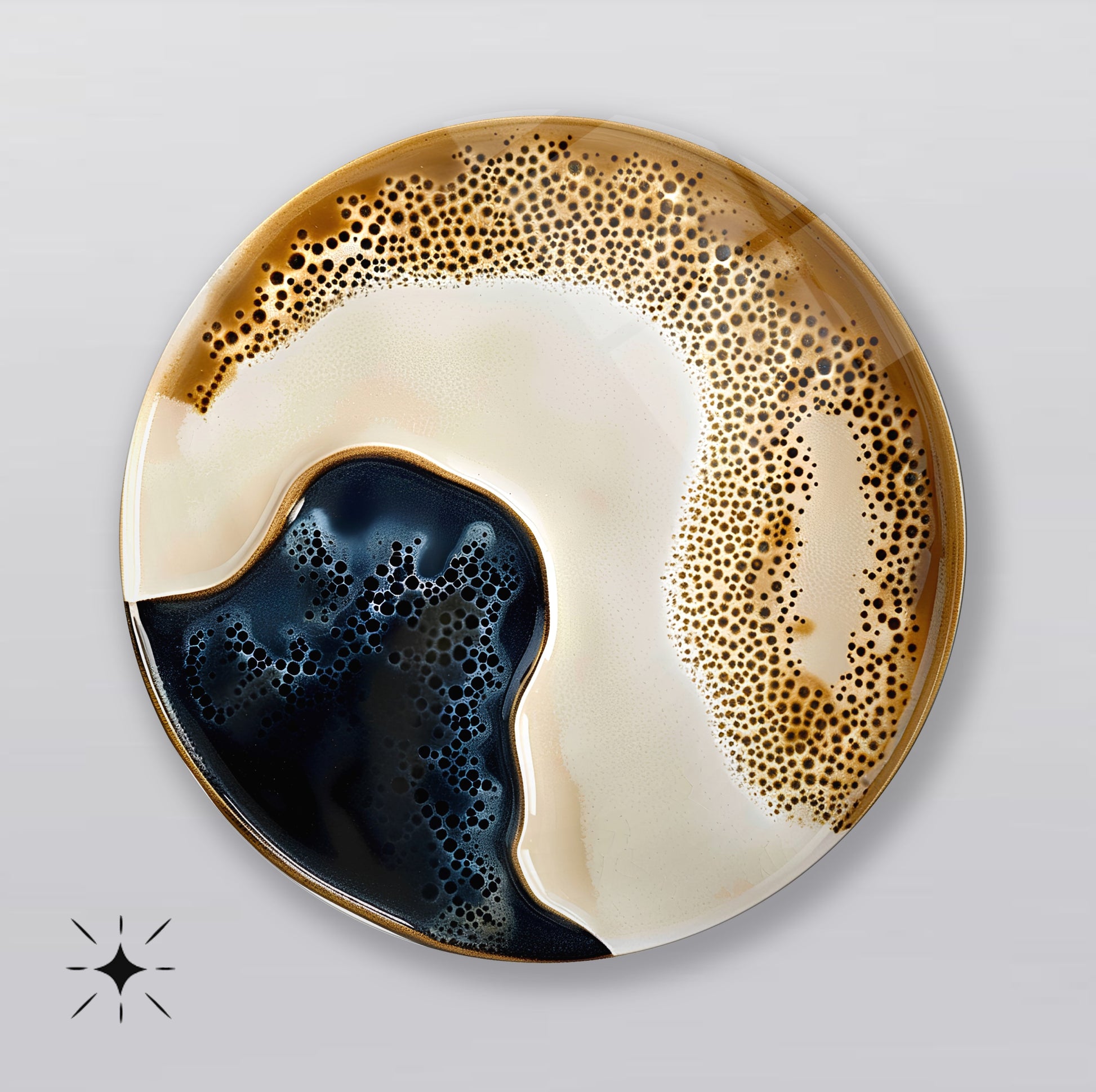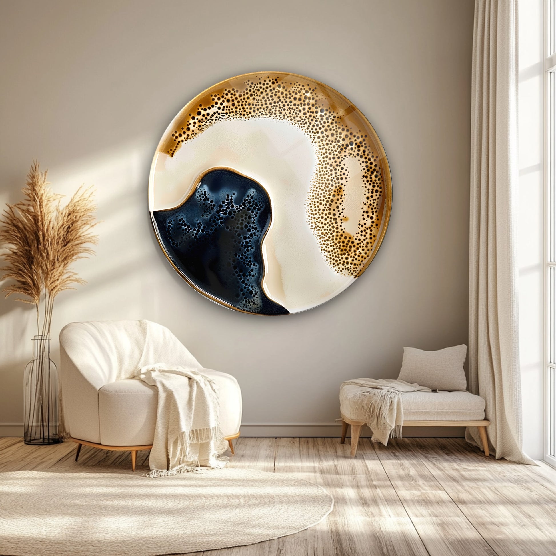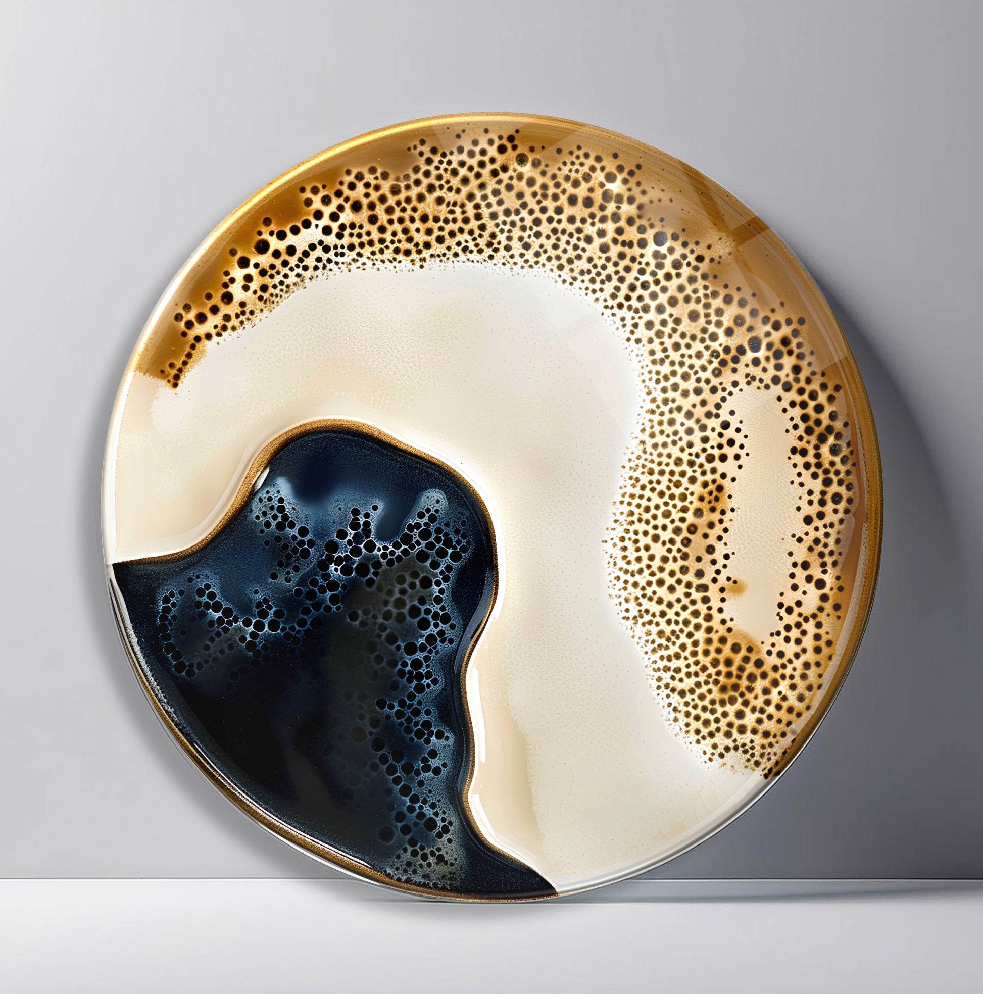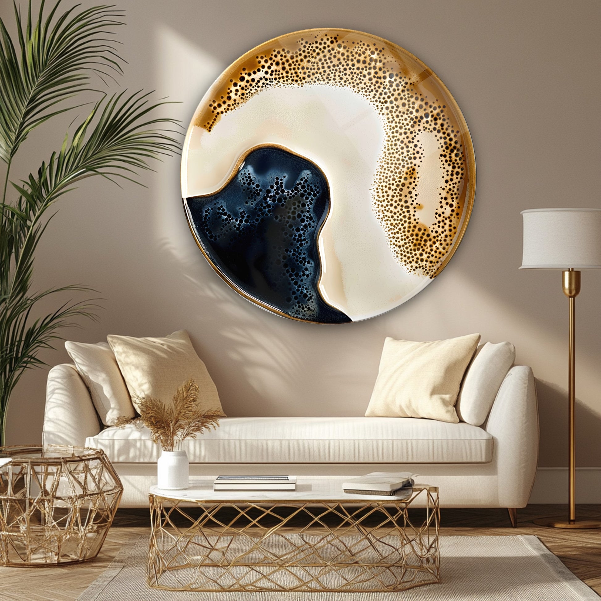 Soyut Kahve Köpüğü Yuvarlak Cam Tablo