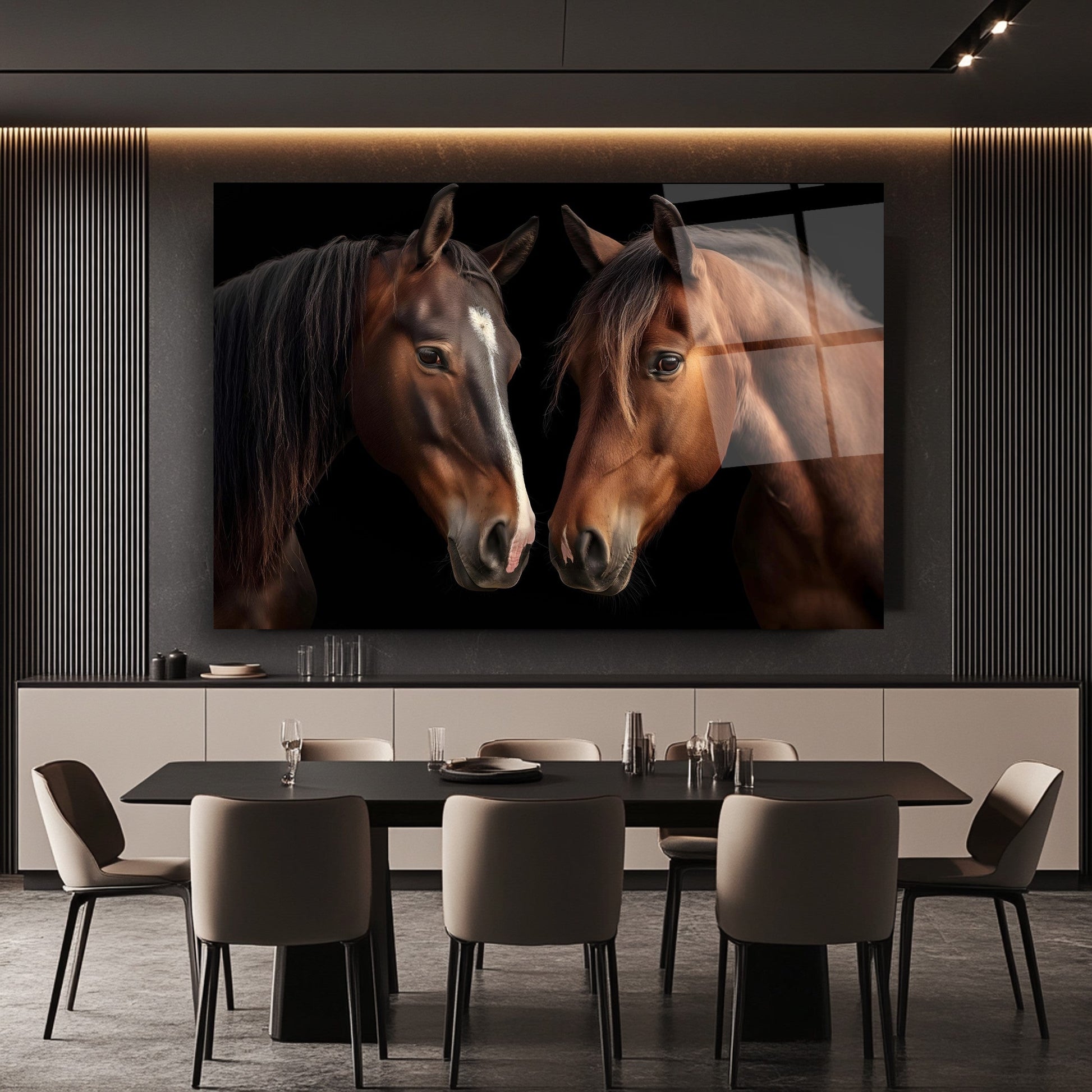 Bu modern cam tablo, siyah zemin üzerinde kahverengi atların detaylı portreleriyle mekânınıza zarif bir vurgu yapıyor. HD UV baskı teknolojisiyle temperli cam üzerine uygulanan baskı, renklerin solmadan uzun süre canlı kalmasını sağlar. 4 mm kalınlığındaki ultra-clear temperli cam, hem estetik hem de dayanıklılık açısından yüksek performans sunar. Çerçevesiz minimalist tasarımıyla salon, ofis veya antre gibi alanlarda şık bir odak noktası oluşturur. Suya, neme ve çizilmeye dayanıklı yüzeyi sayesinde uzun ömürlü kullanım imkânı tanır. Kolay montaj için tüm aksesuarlar kutuda yer alır ve güvenli paketleme ile sigortalı kargo avantajı sunulur. Doğa ve zarafeti bir arada arayanlar için ideal bir seçimdir.