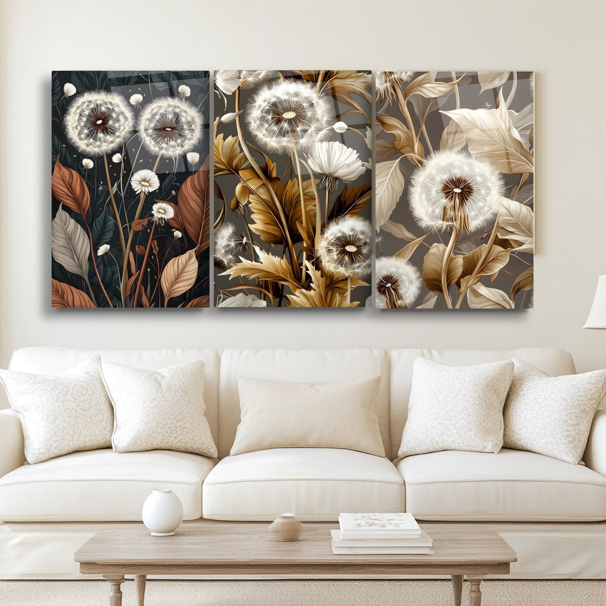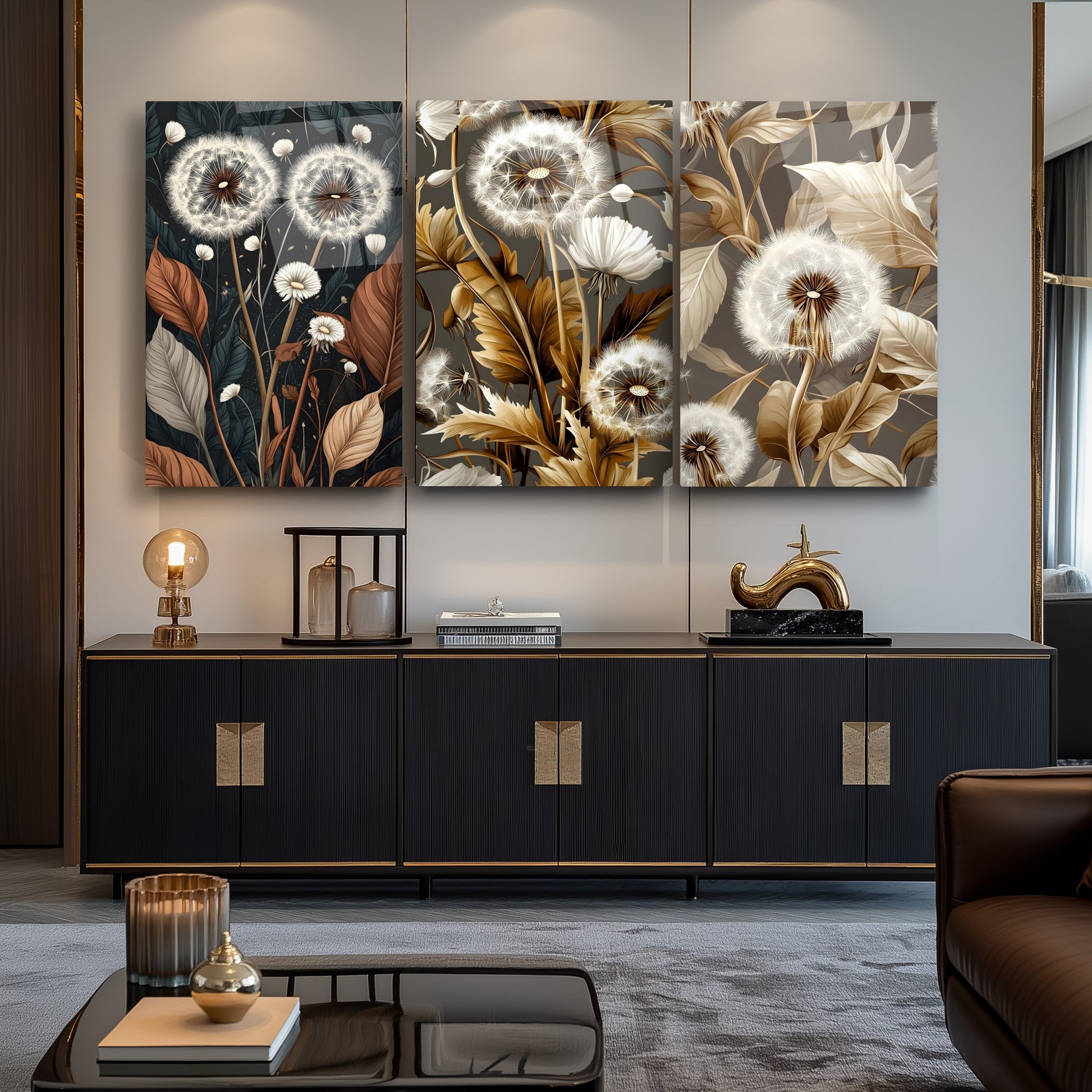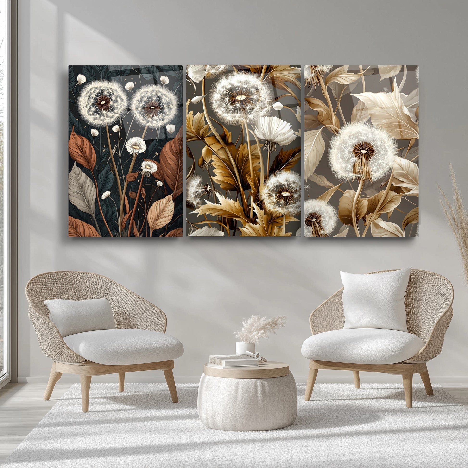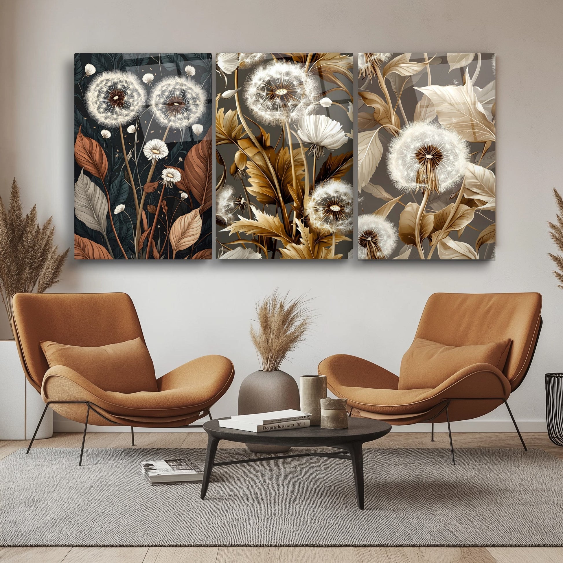 Minimal Karahindibalar Üçlü Set Cam Tablo