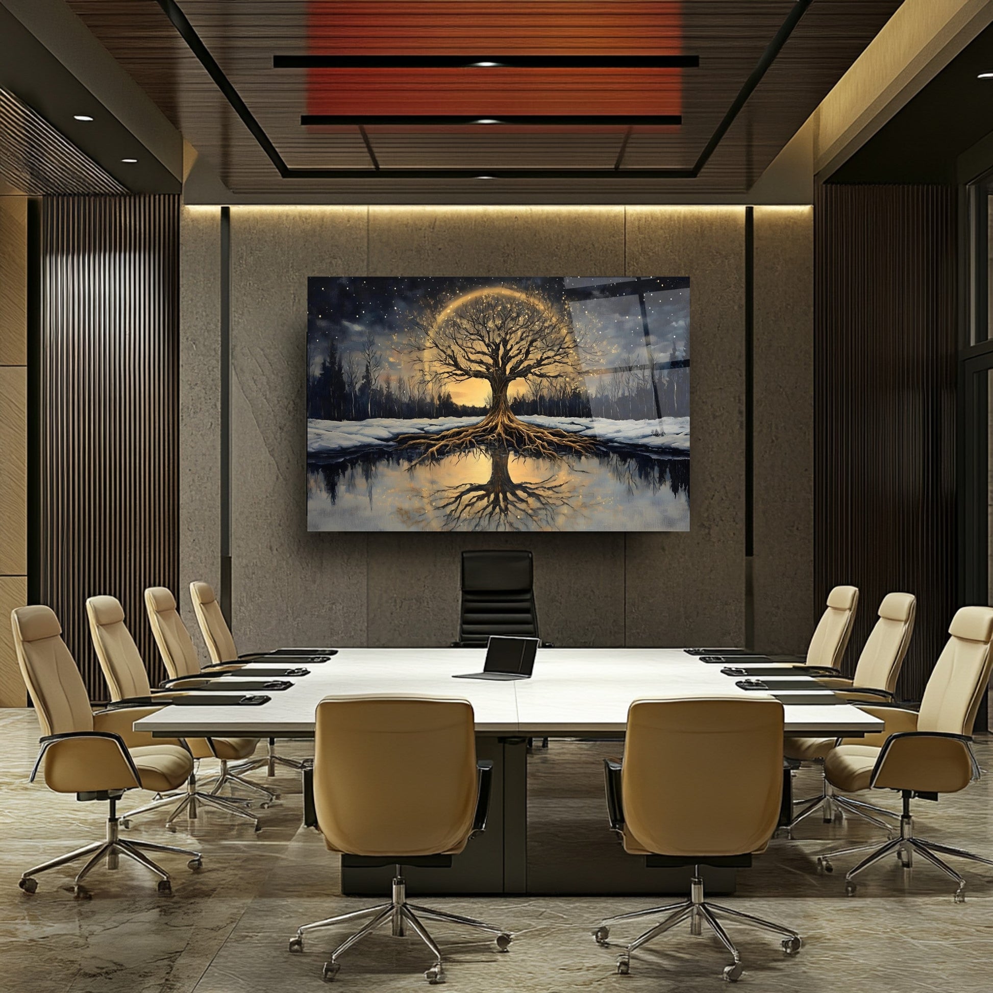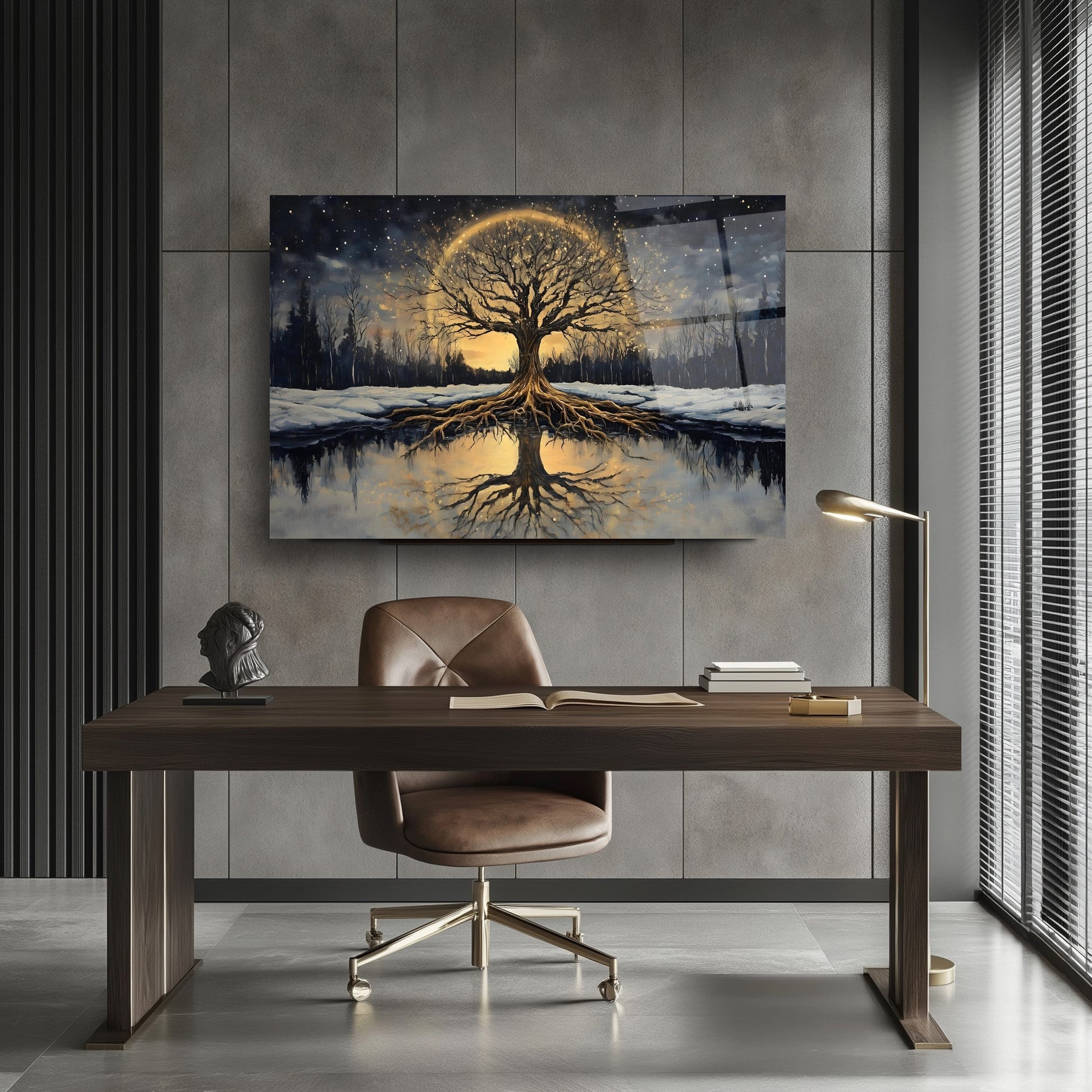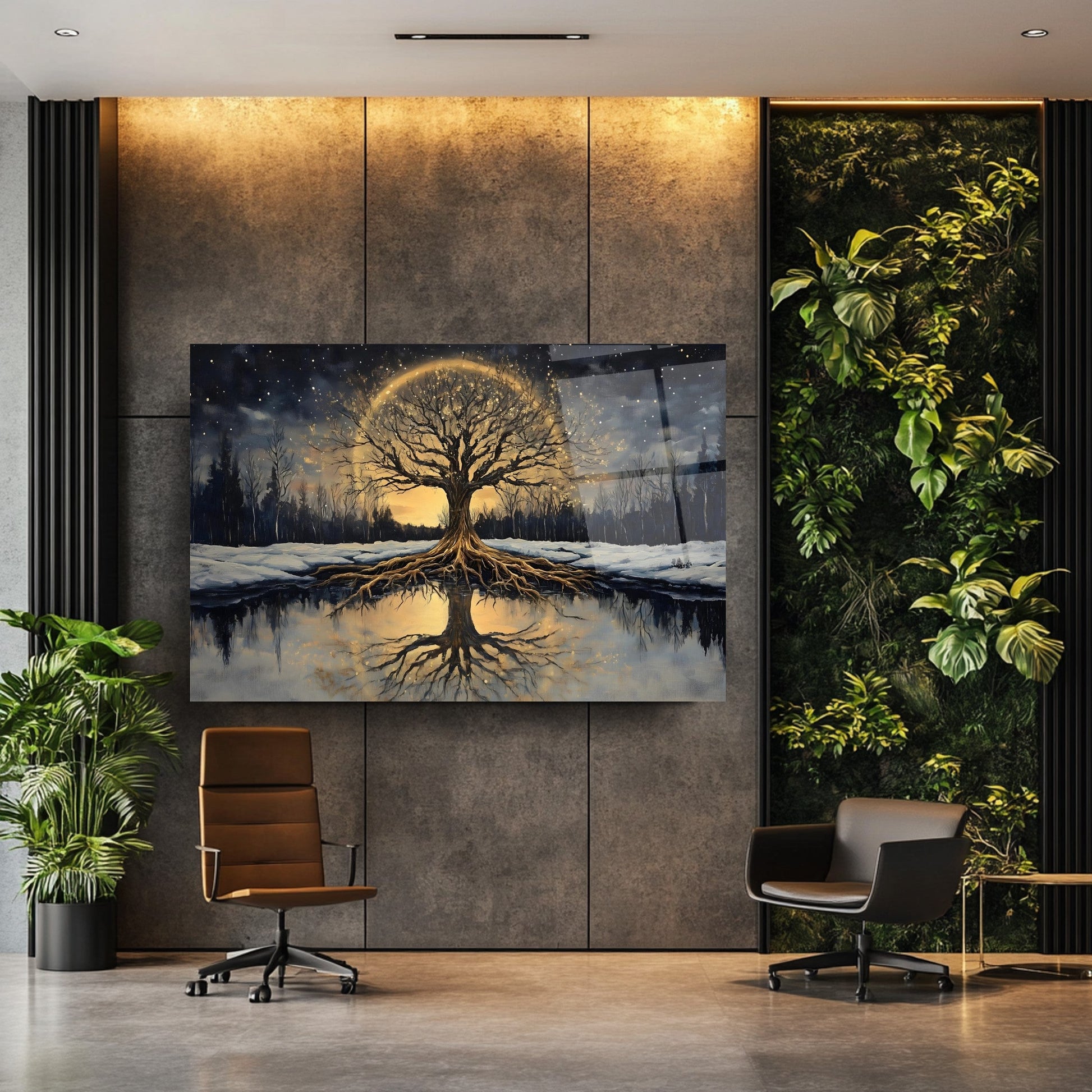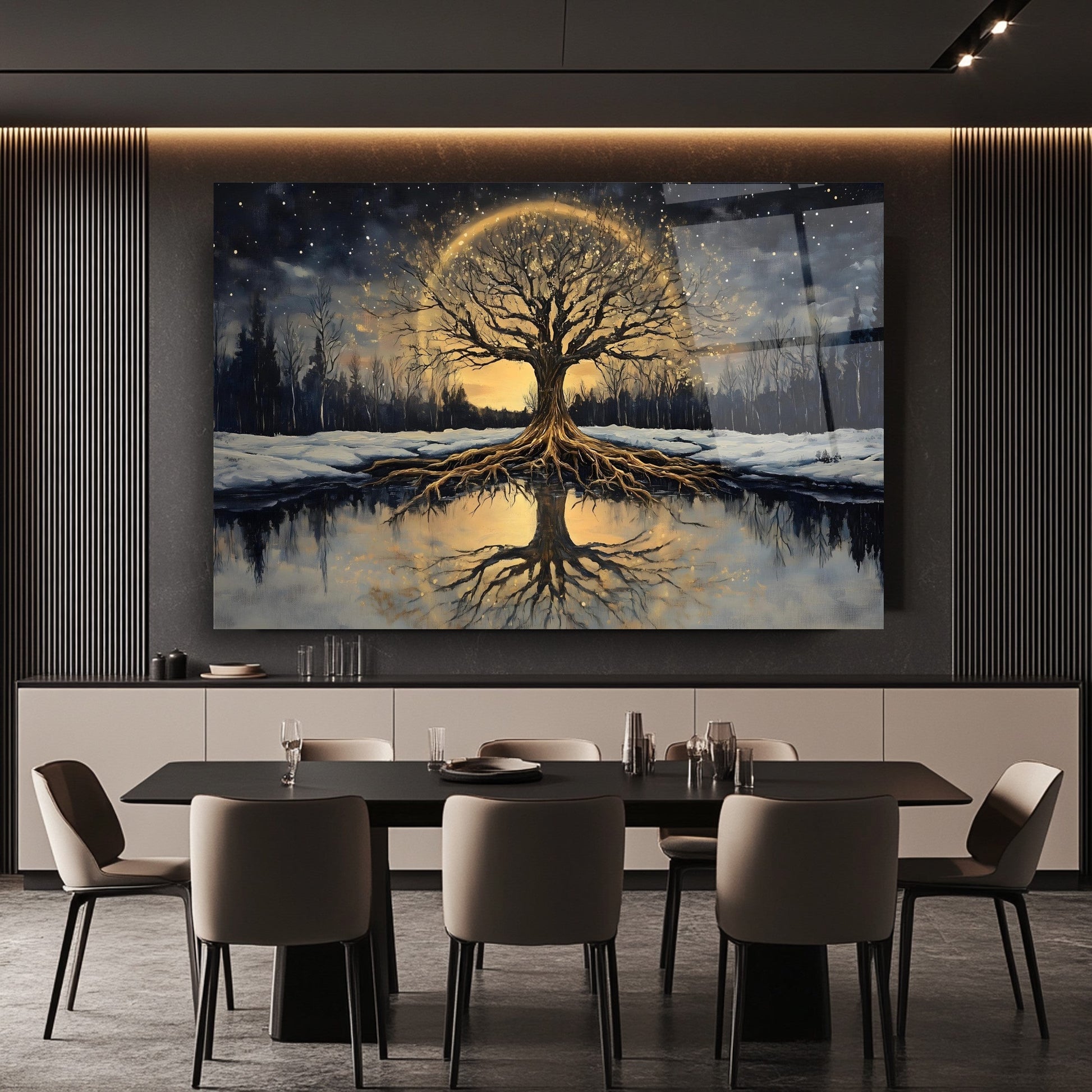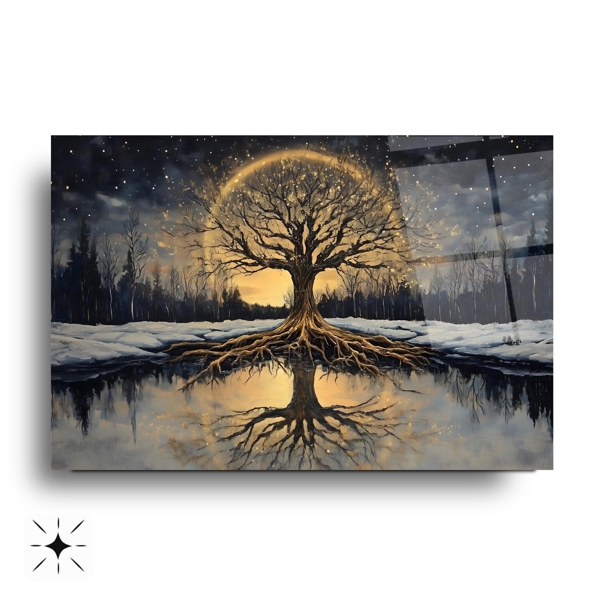 Karlı orman teması ve gün batımının sıcak tonlarıyla hayat ağacını buluşturan bu modern cam tablo, dekorasyona doğal ve huzurlu bir dokunuş katıyor. Temperli cam üzerine yapılan UV baskı sayesinde canlı renkler uzun ömürlü kalırken, çerçevesiz minimalist tasarımı her mekâna uyum sağlıyor. Salon, ofis veya antrede şıklık ve estetik arayanlar için ideal olan bu cam tablo, doğa ve sembolizm severlerin favorisi. Modern cam tablo, temperli cam baskı ve zarif duvar dekoru arayanlar için mükemmel seçimdir.