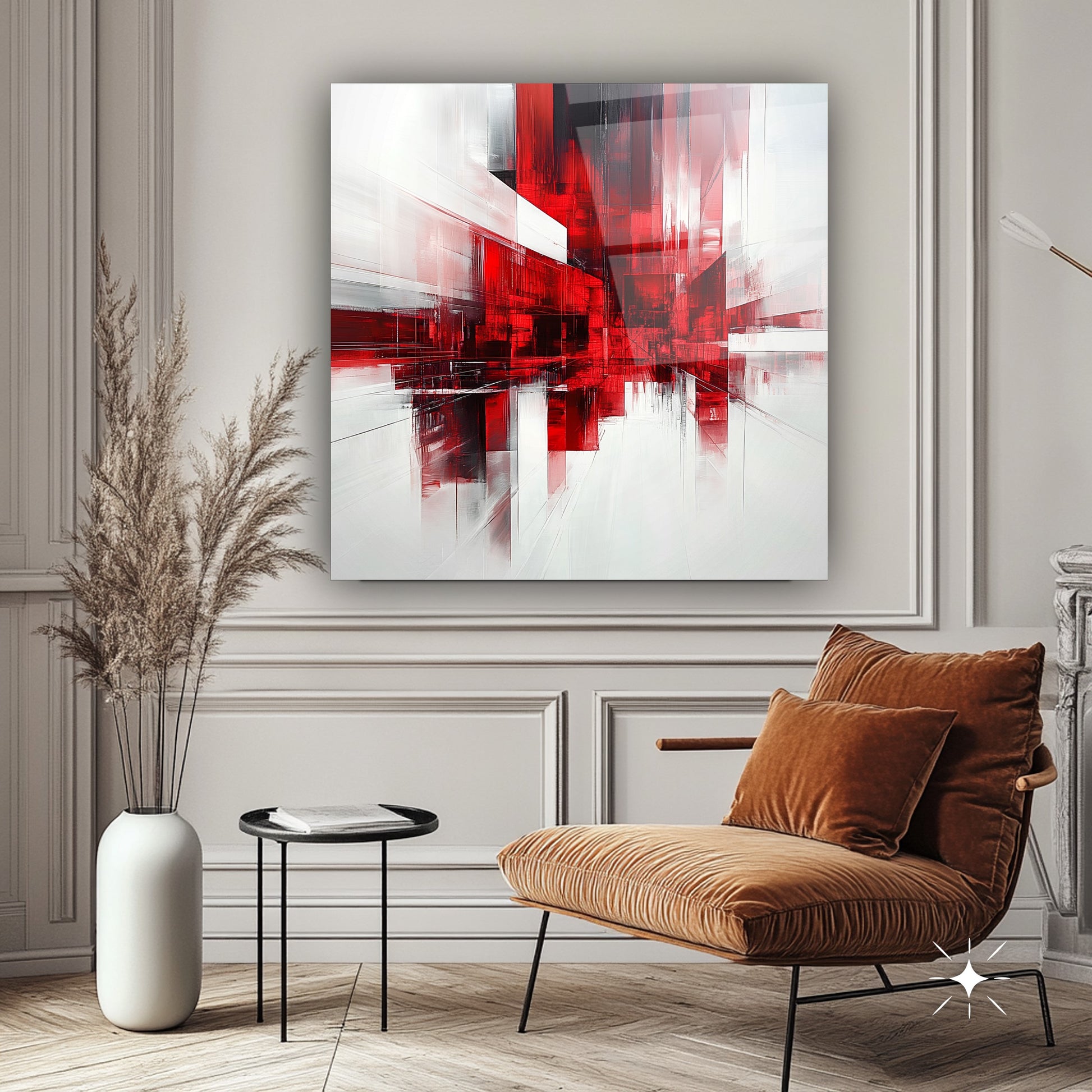 Kırmızı tonlarının canlılığıyla dikkat çeken bu soyut gökdelen temalı cam tablo, modern yaşam alanlarına dinamik ve enerjik bir hava katıyor. CamDeko kalitesiyle kırılmaz temperli cam üzerine UV baskı teknolojisiyle üretilen bu ürün, güçlü renk geçişleri ve özgün çizgileriyle mekânda çağdaş bir atmosfer yaratır. Ofislerden şehir temalı dekorasyonlara, modern otel lobilerinden yaratıcı çalışma alanlarına kadar geniş kullanım alanına sahip olan tablo, dayanıklı yapısıyla uzun yıllar boyunca ilk günkü parlaklığını korur. Şehir yaşamını ve modern mimariyi sevenler için şık ve estetik bir dekorasyon seçeneğidir.