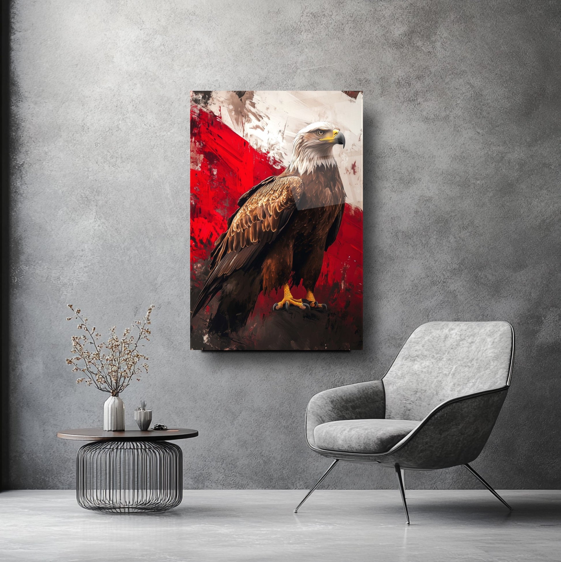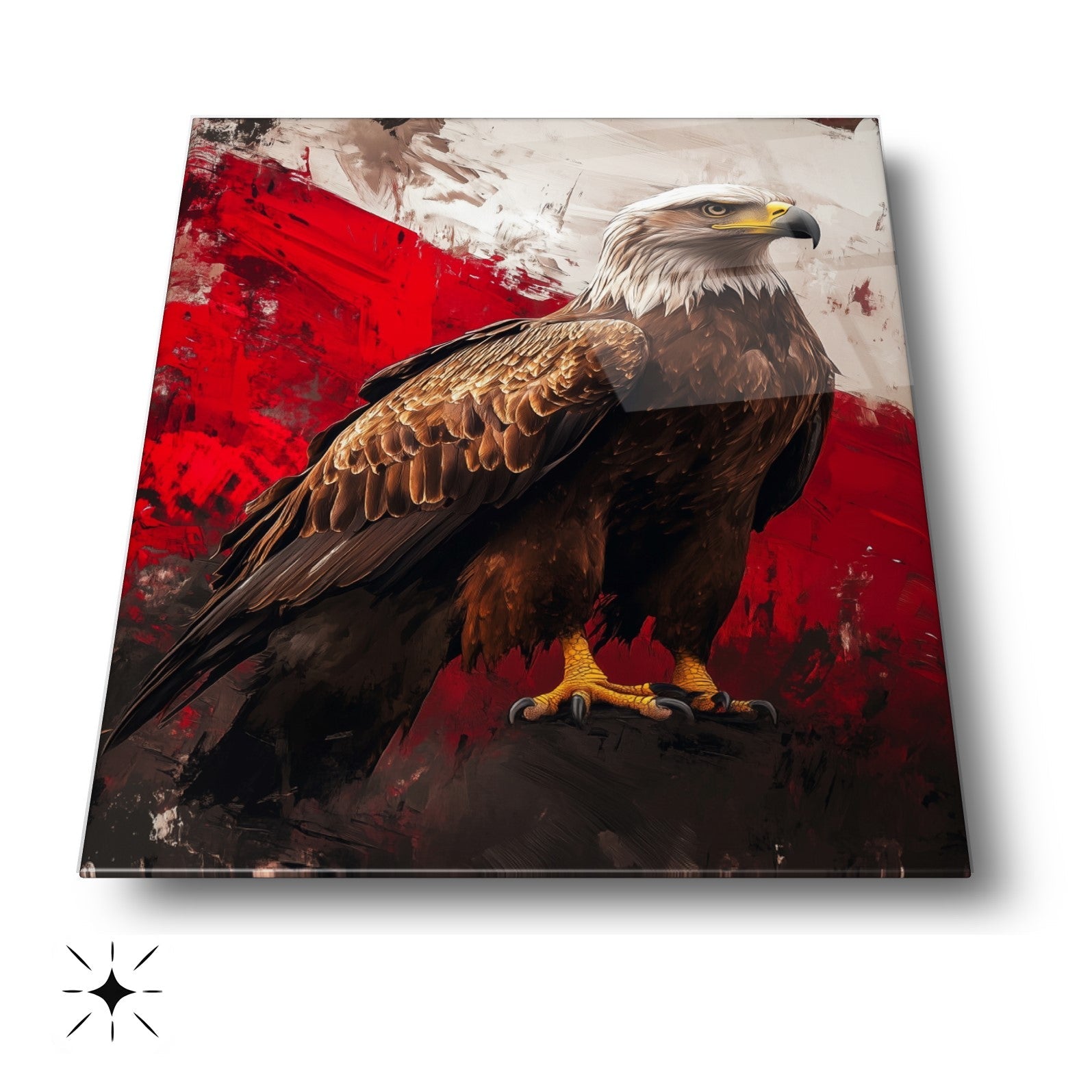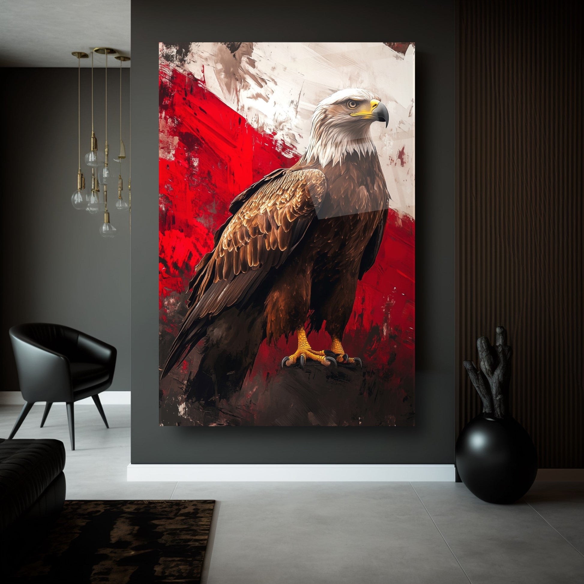 Gücün ve Özgürlüğün Simgesi: Kırmızı Beyaz Detay Kartal Modern Kırılmaz Cam Tablo