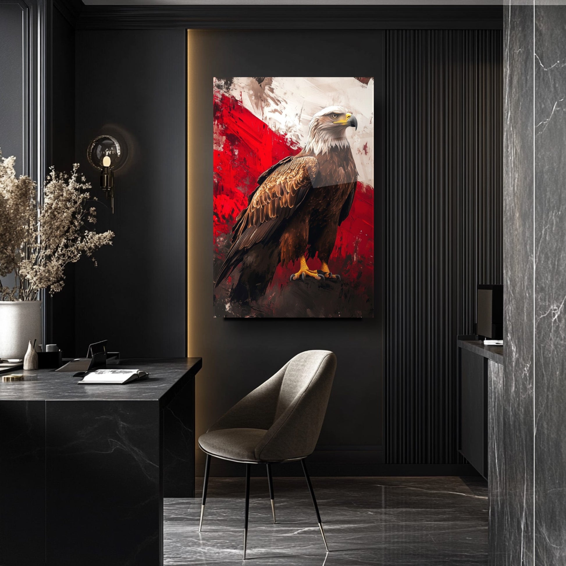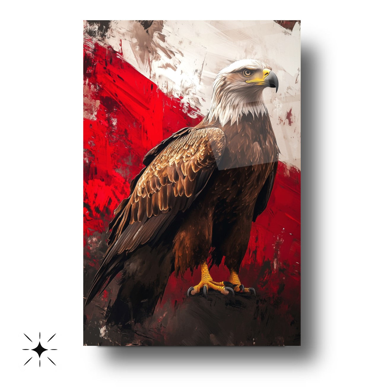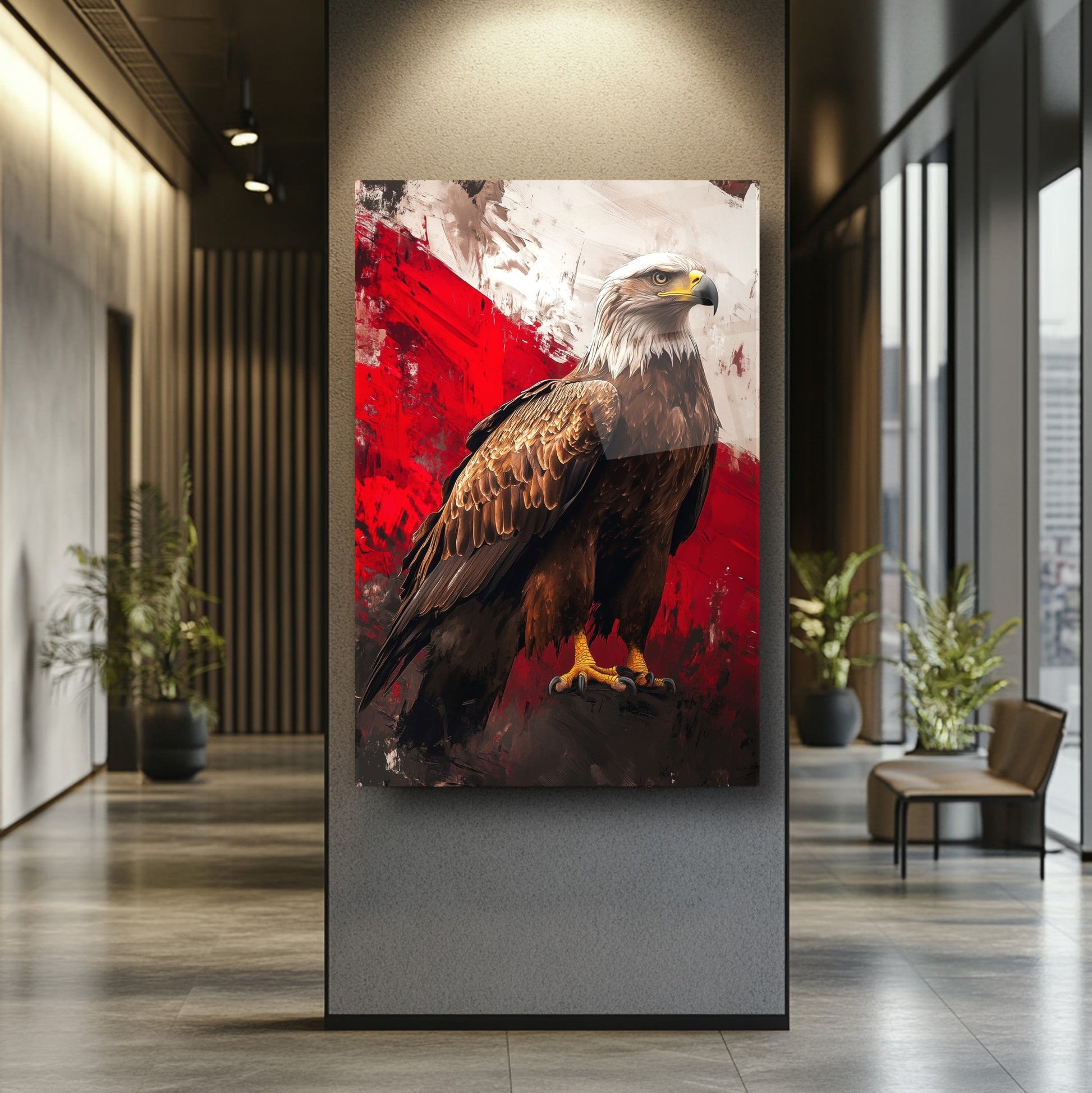 Gücün ve Özgürlüğün Simgesi: Kırmızı Beyaz Detay Kartal Modern Kırılmaz Cam Tablo