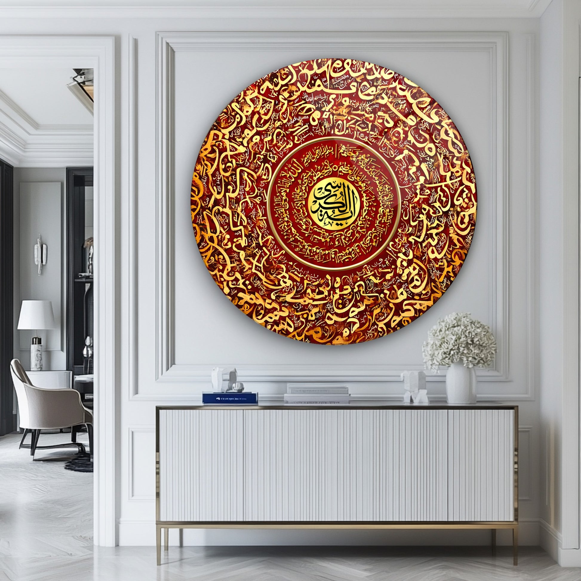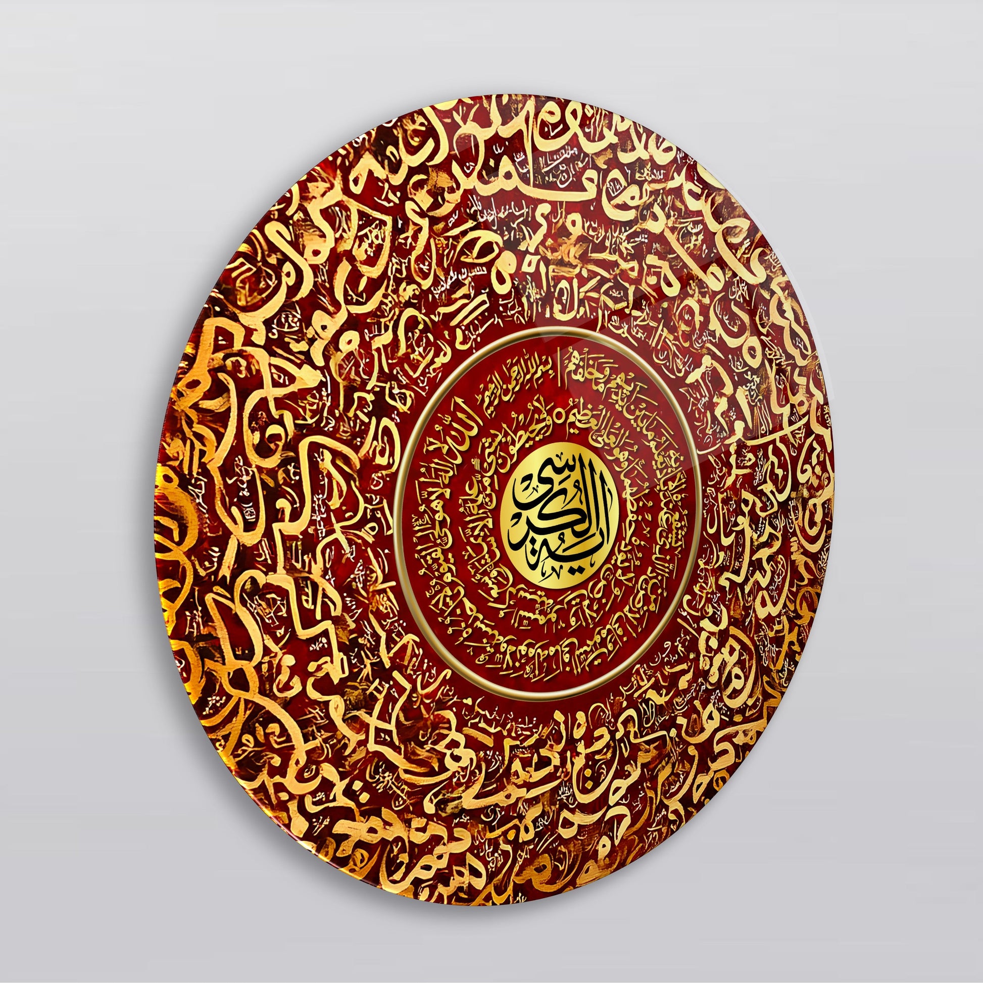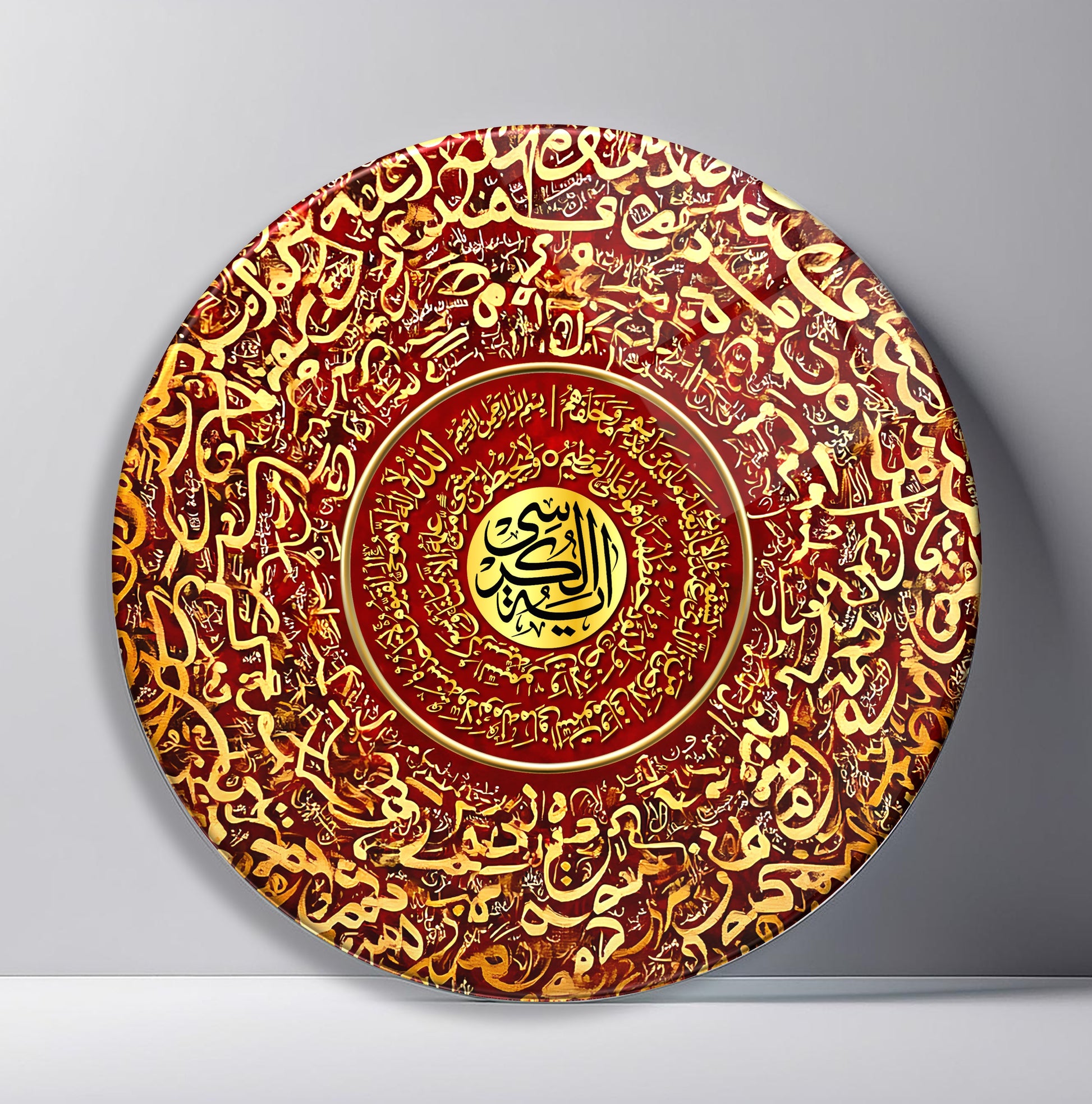 Ayetel Kursi İslami Hat Sanatı Yuvarlak Cam Tablo