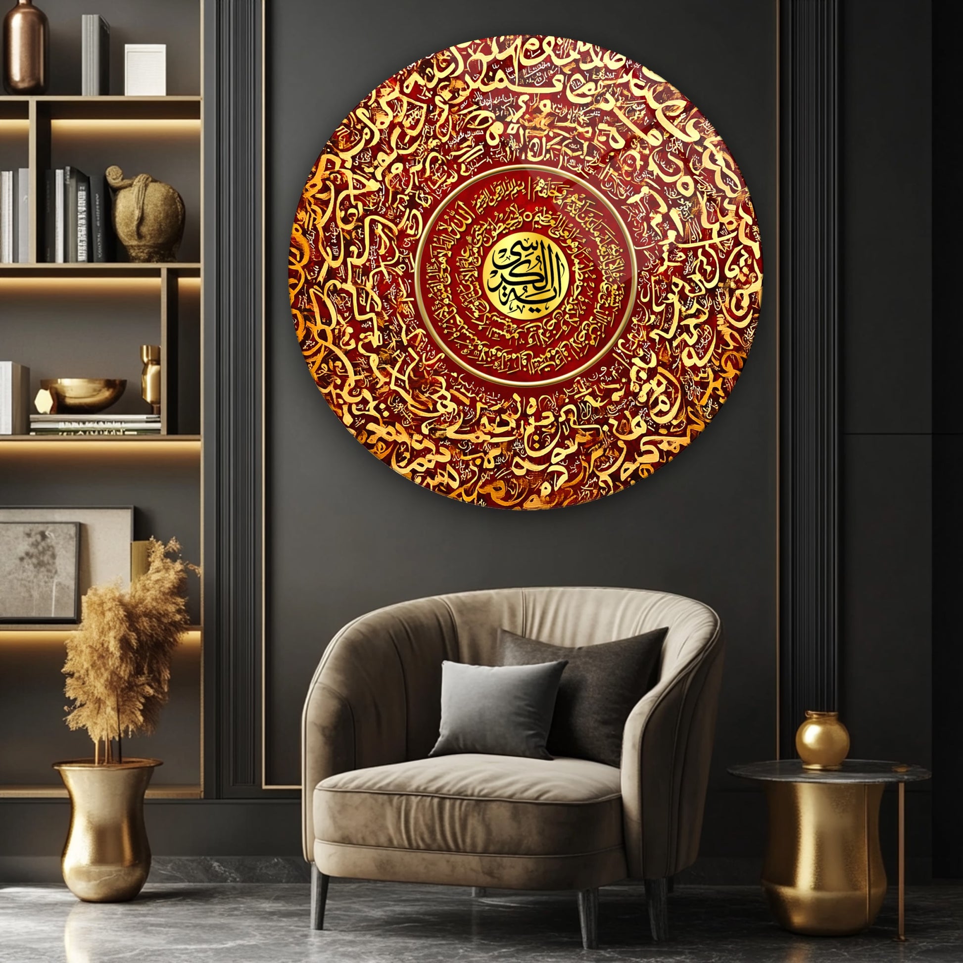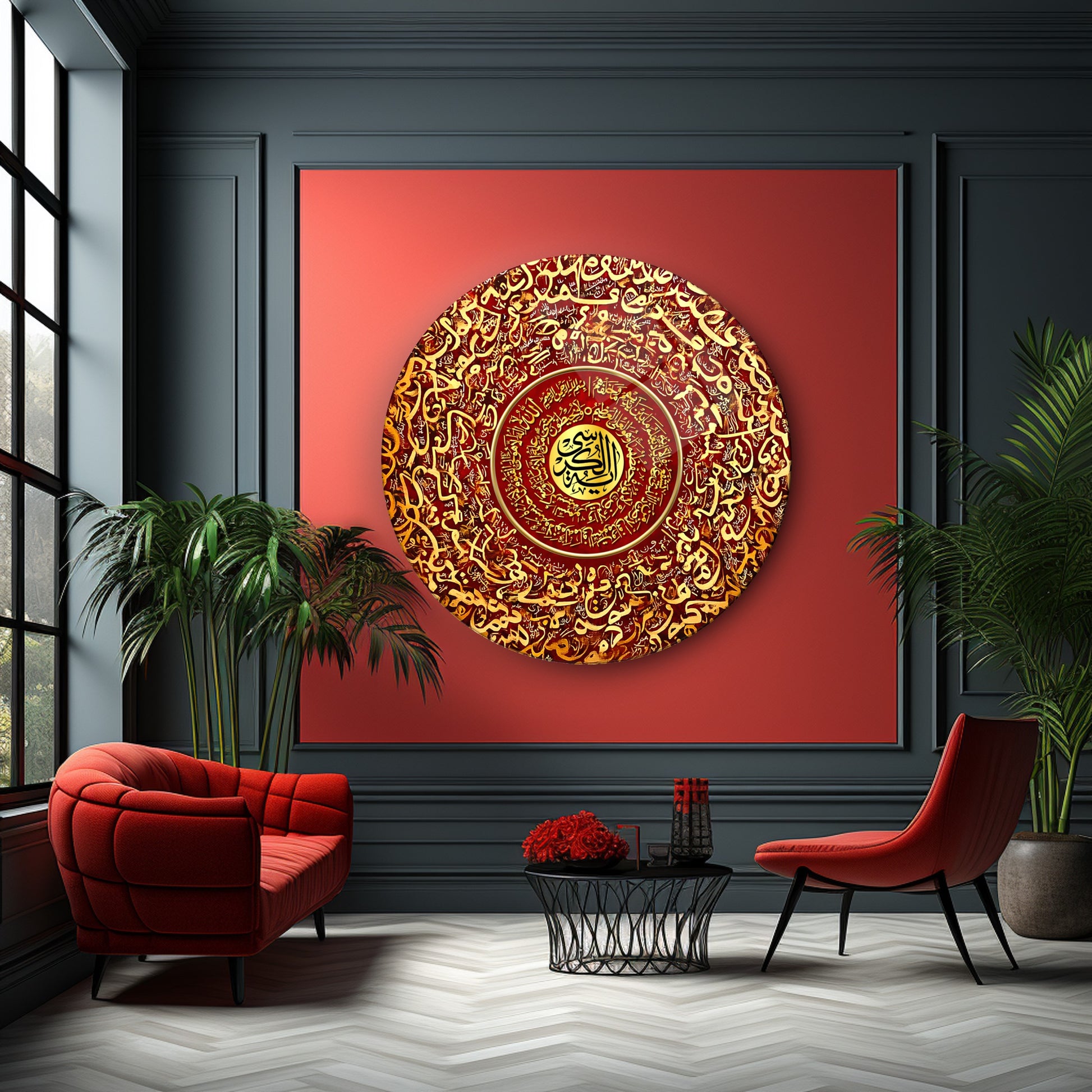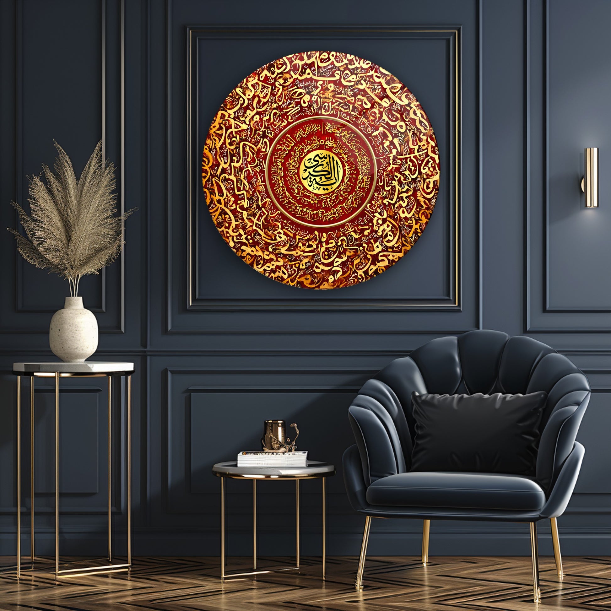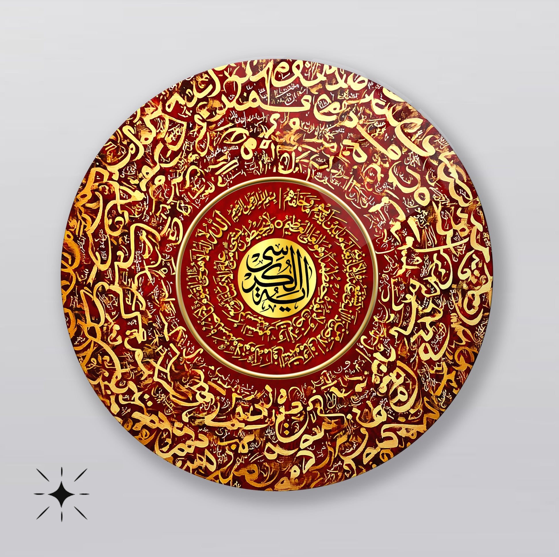Ayetel Kursi İslami Hat Sanatı Yuvarlak Cam Tablo