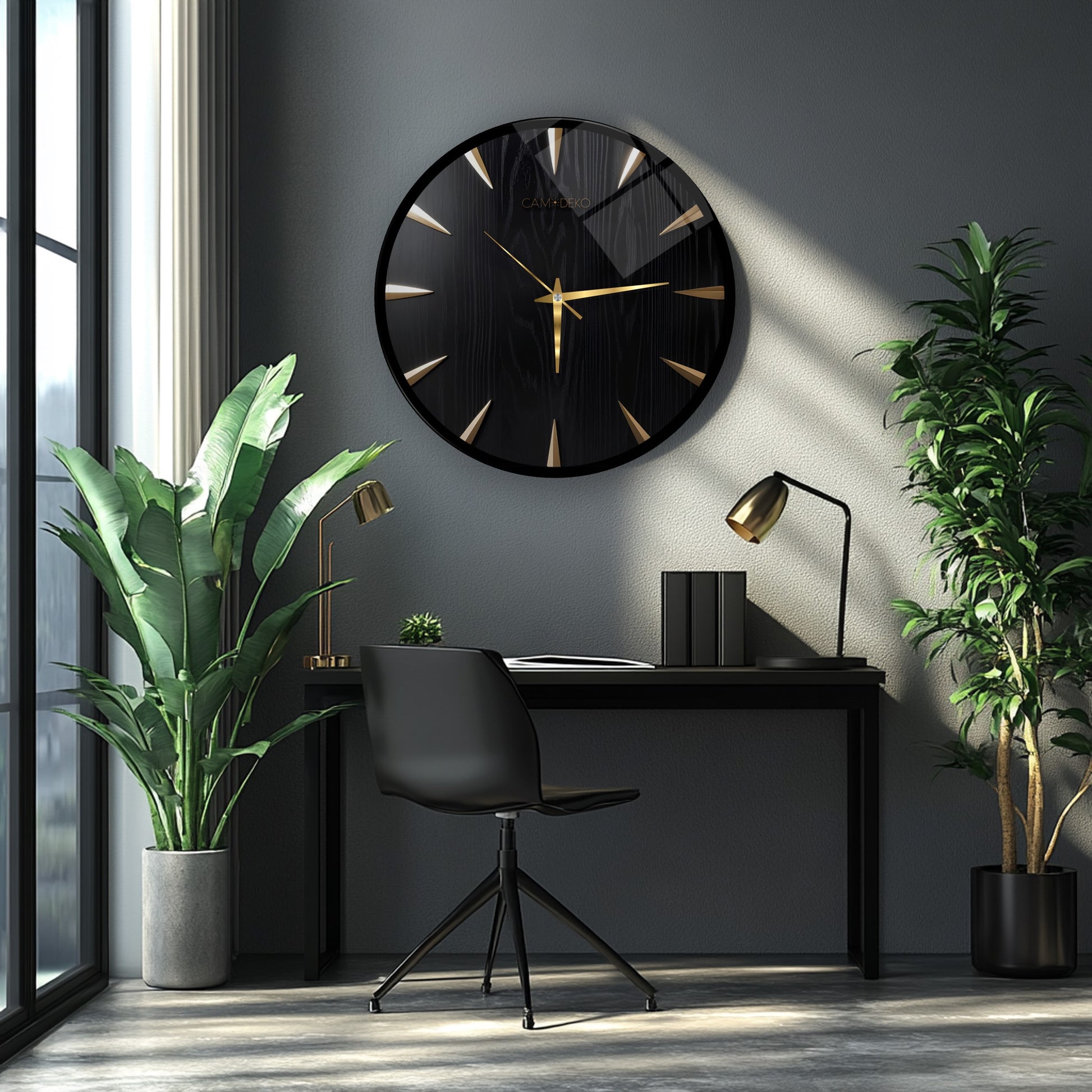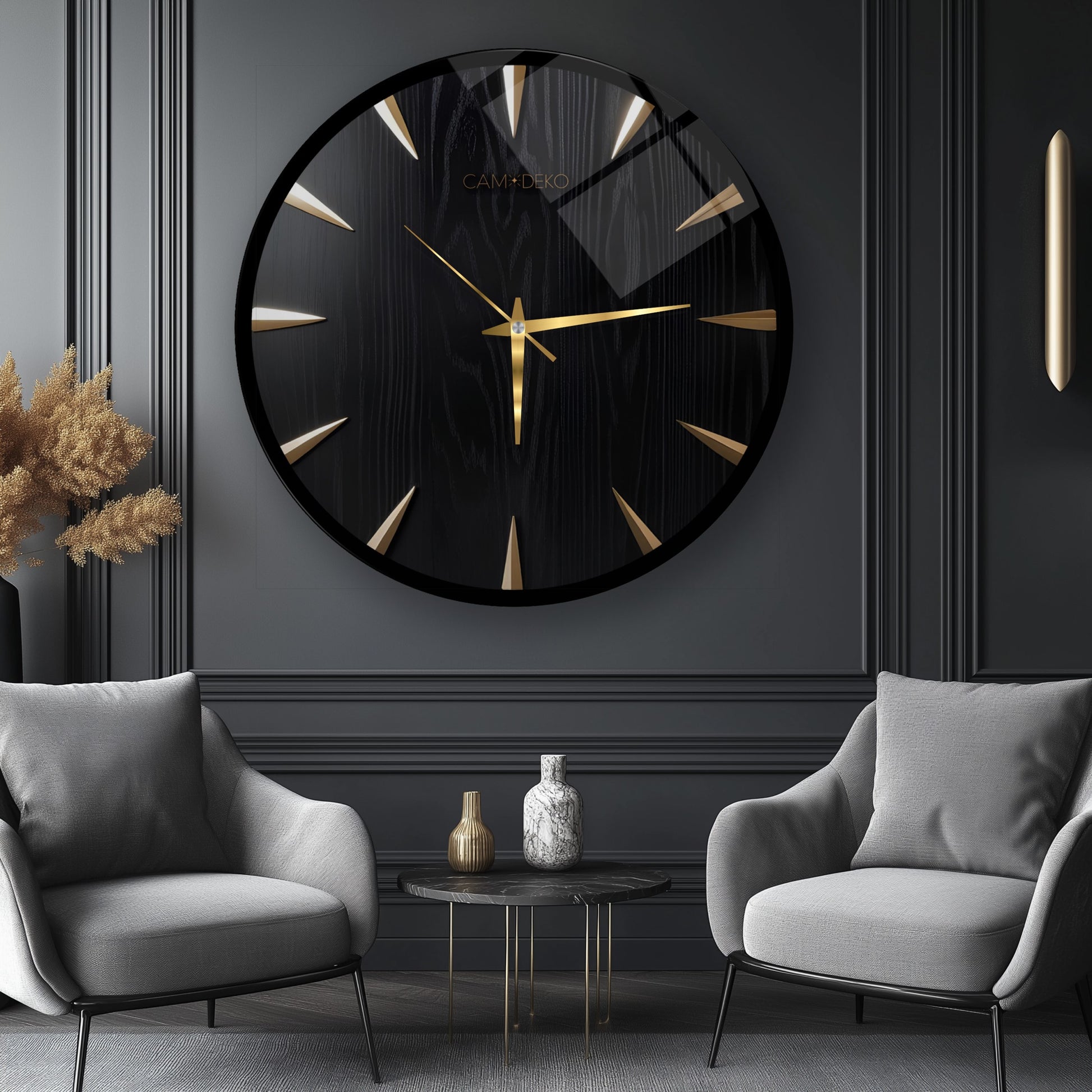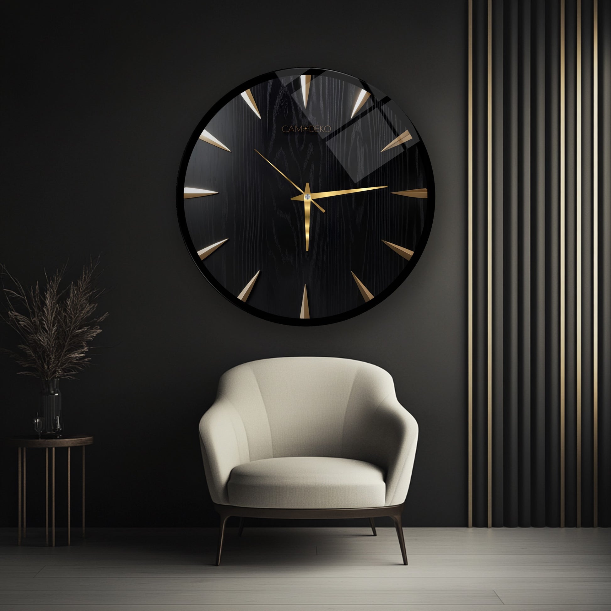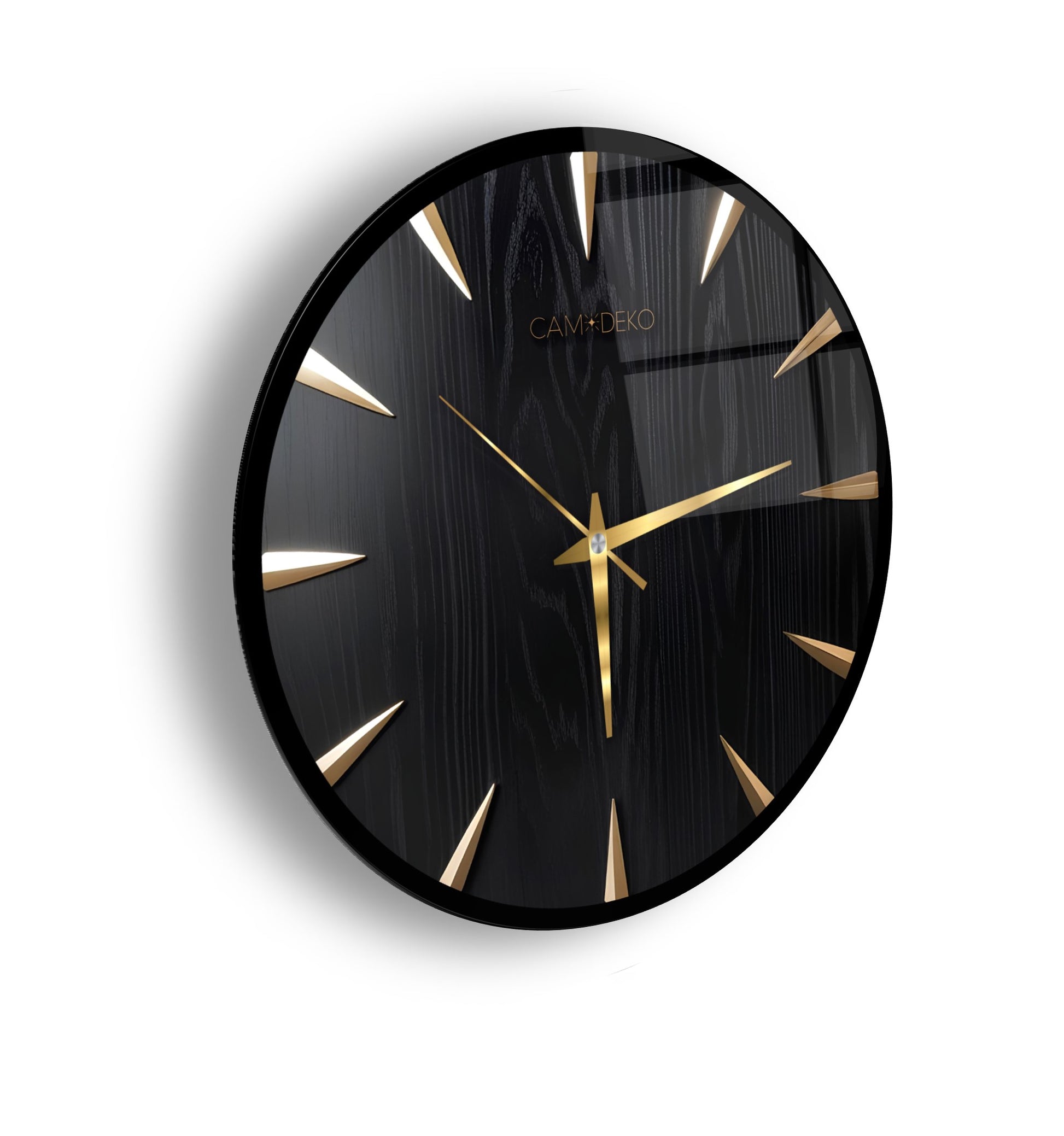 Klasik Gold Siyah Cam Duvar Saati