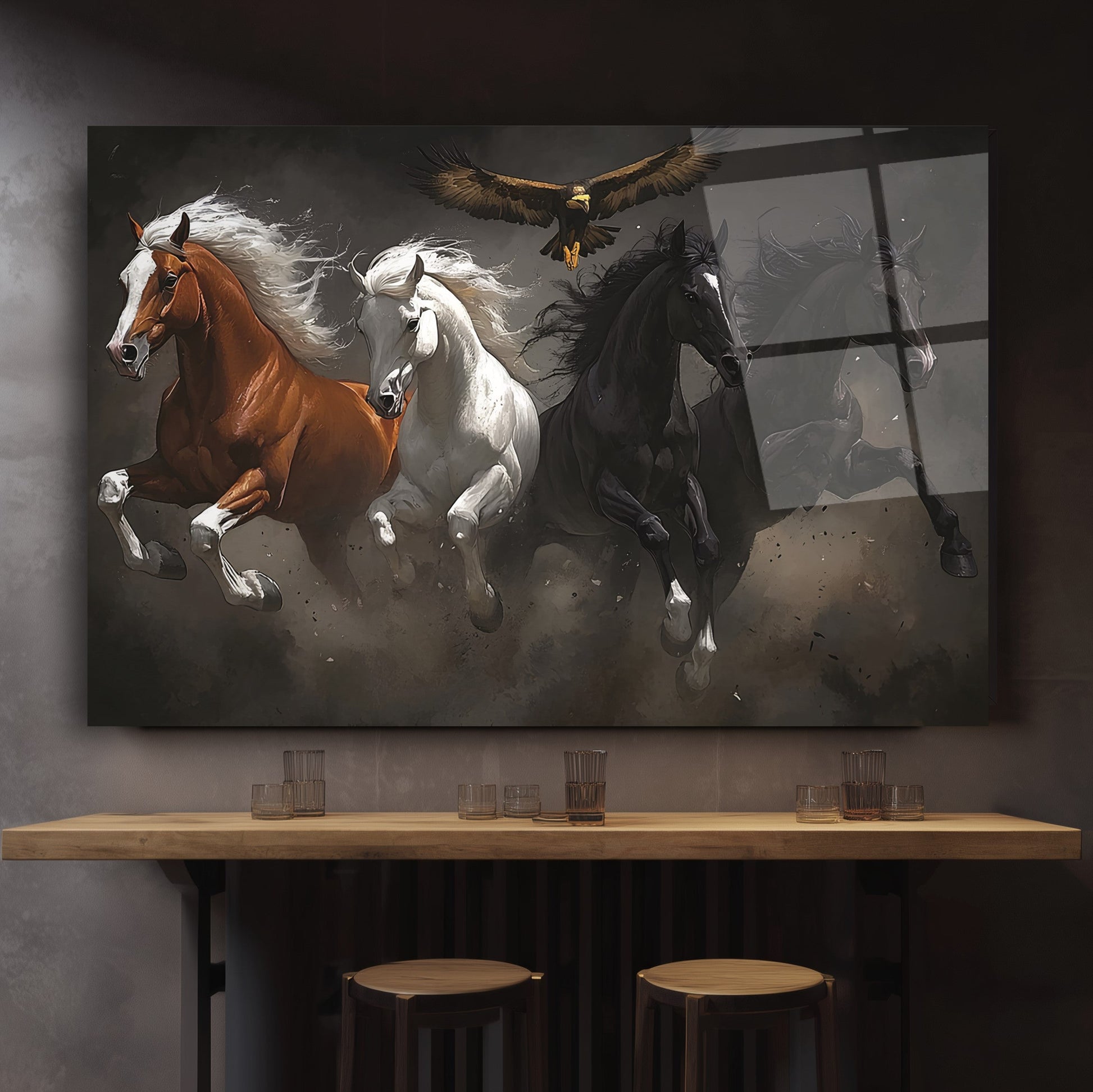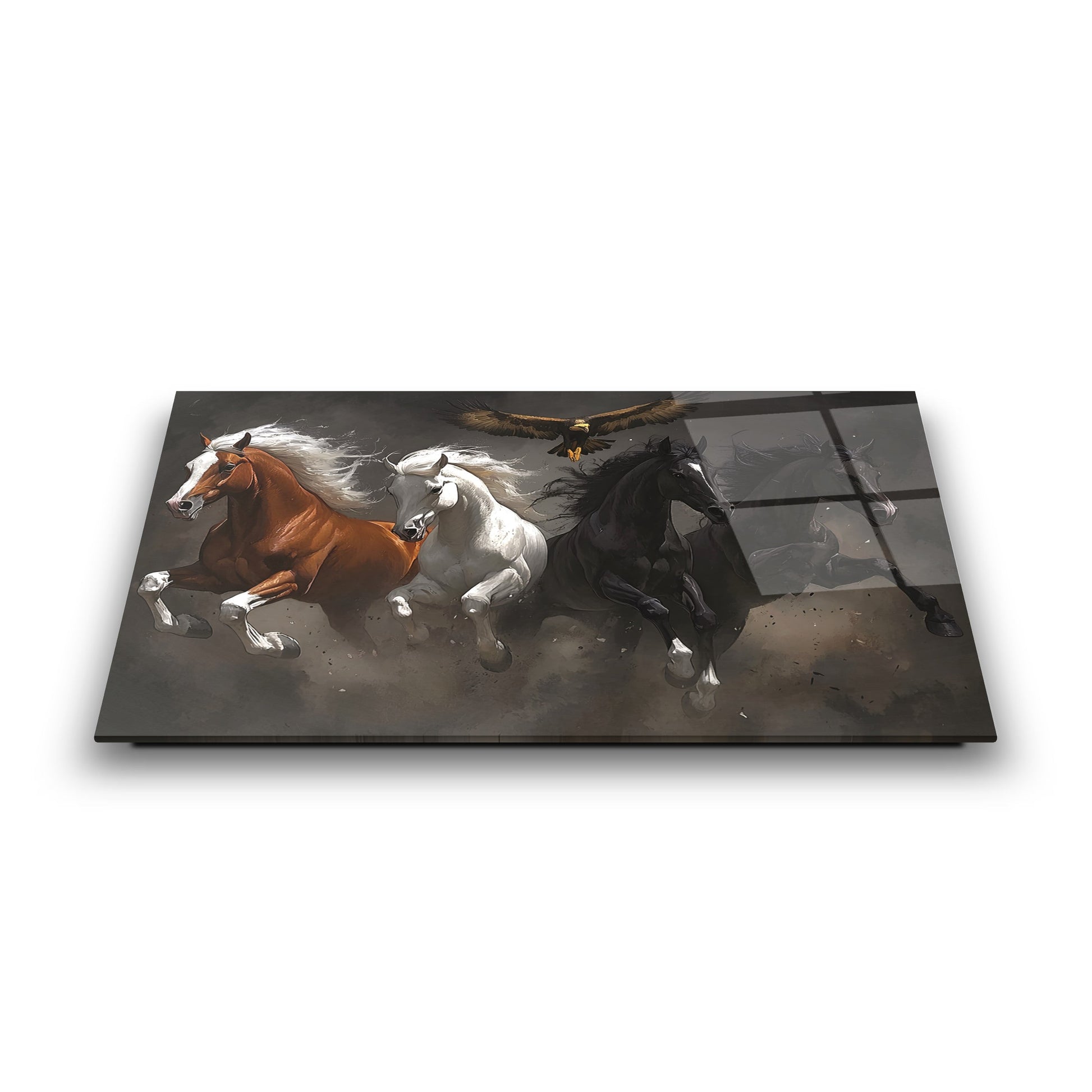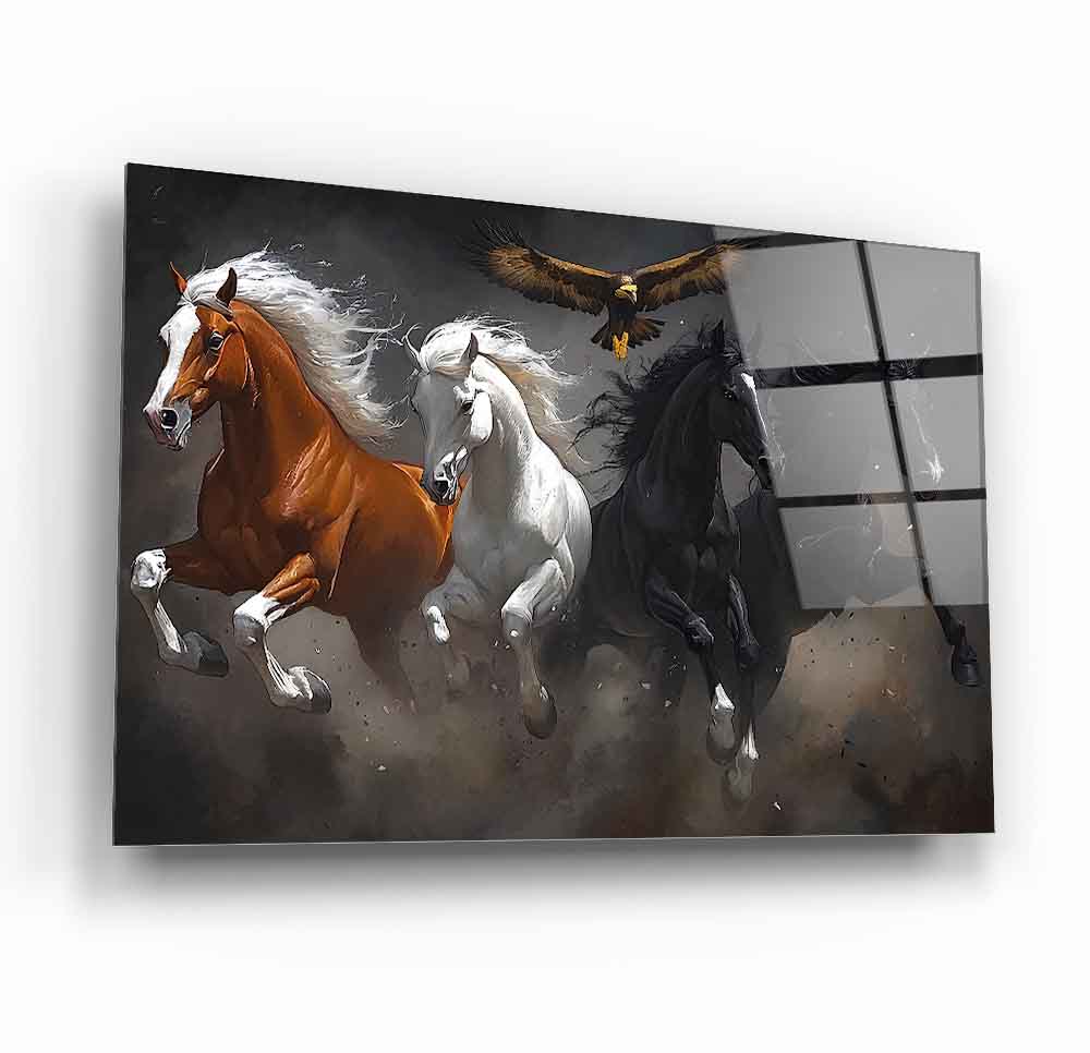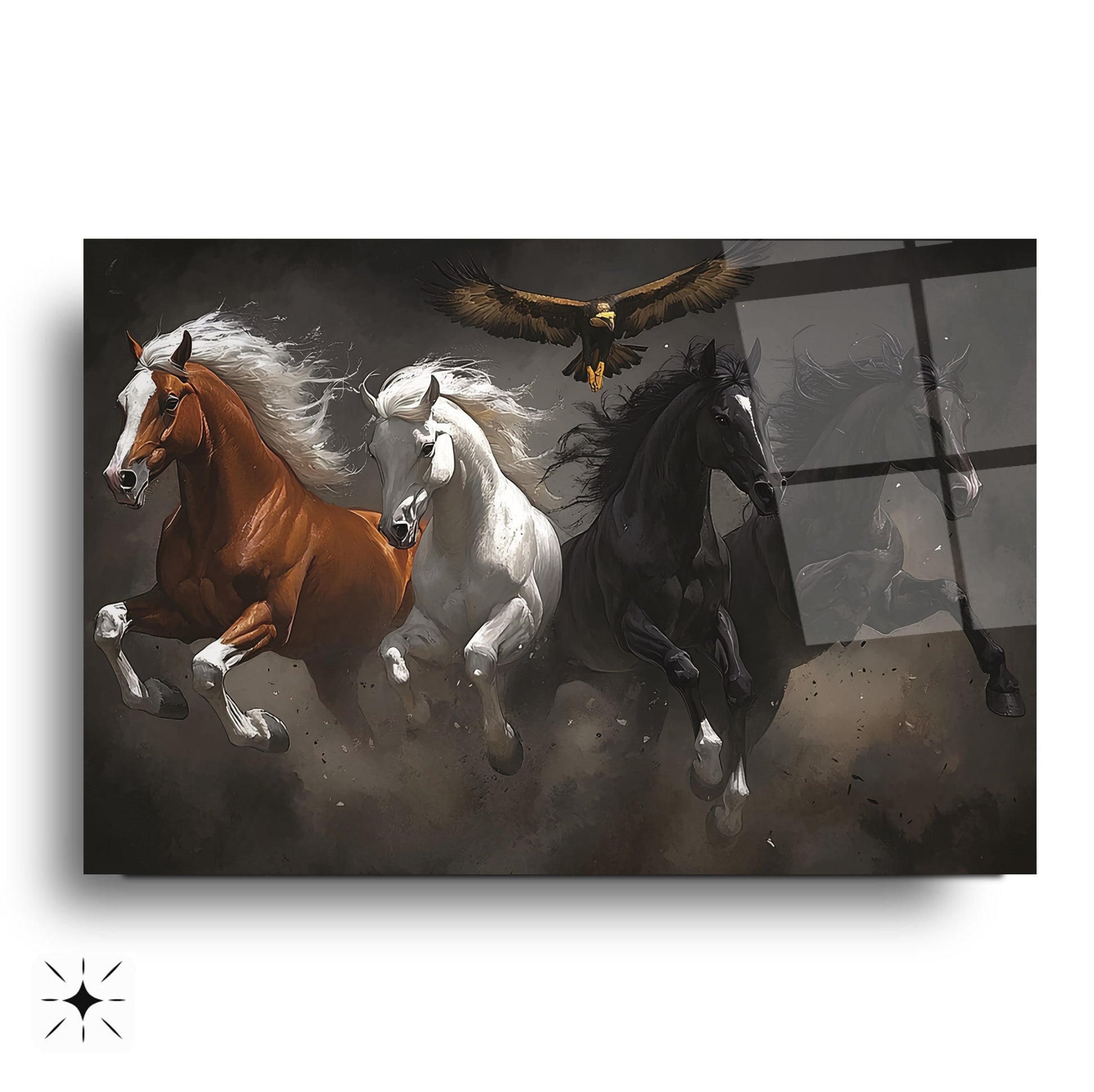 Mekanlarınıza Özgürlüğün ve Gücün Dinamizmini Taşıyın: Koşan Atlar Uçan Kartal Cam Tablo