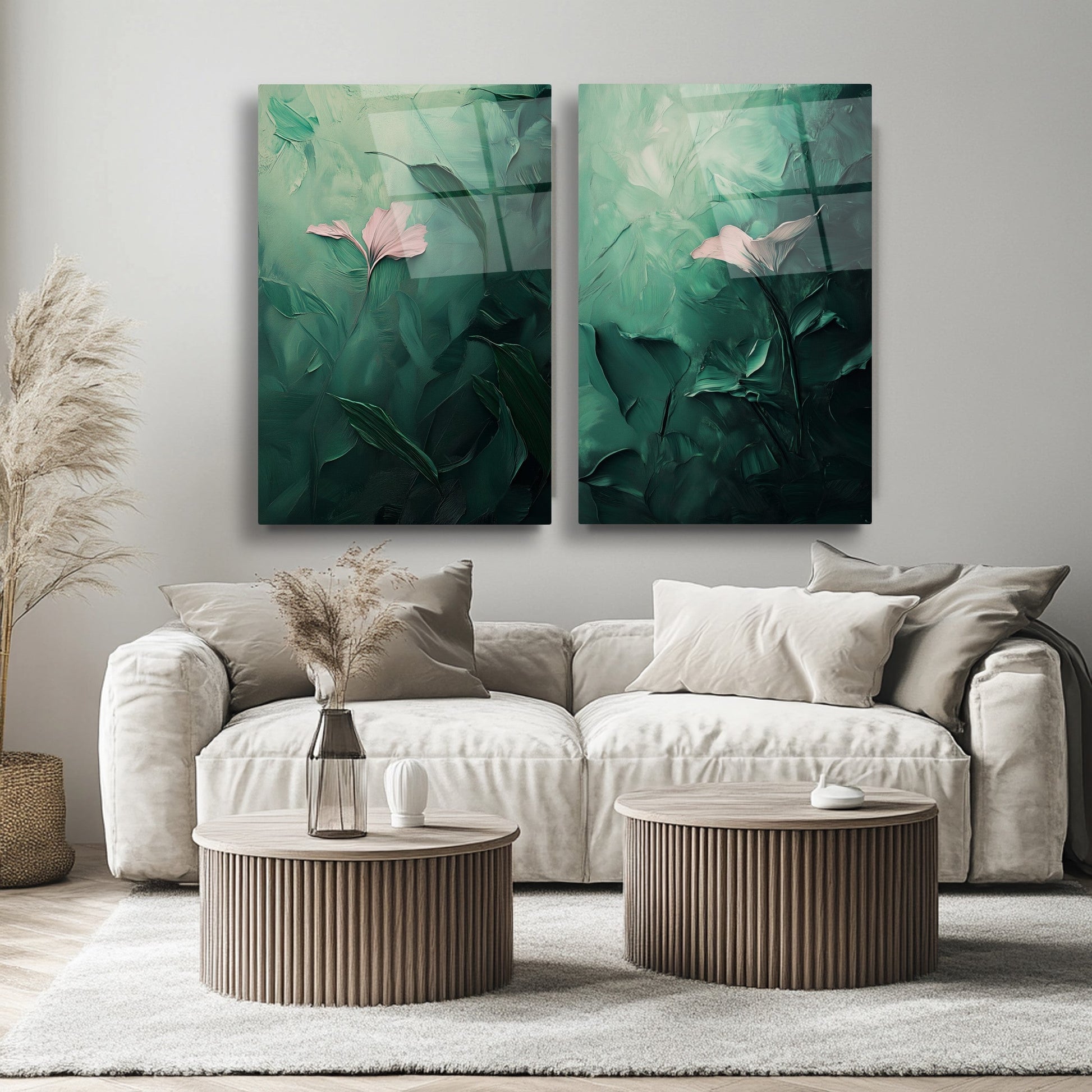 Koyu ve açık renklerin kabartma fırça dokunuşlarıyla birleştiği yeşil ve bej çiçek desenleri, bu kırılmaz cam tablo ikili kombinle modern nordik stilini yansıtır. Dayanıklı cam yapısı uzun ömürlü kullanım sağlar. Mekanlarda zarif ve dengeli bir atmosfer oluşturur. Doğa ve minimalizmi sevenler için ideal, estetik ve şık bir dekorasyon seçeneğidir.