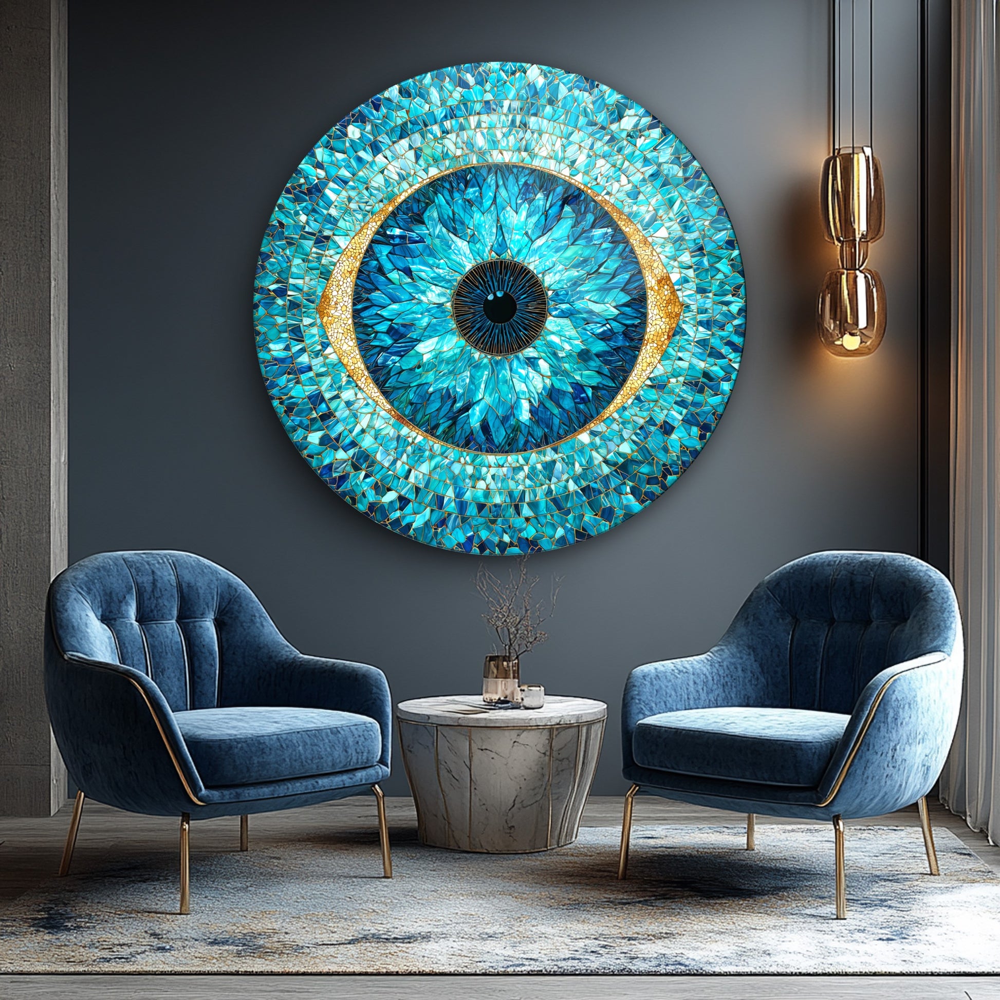 Kristal Vitray Göz Bebeği Yuvarlak Cam Tablo