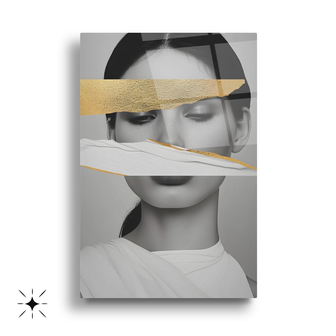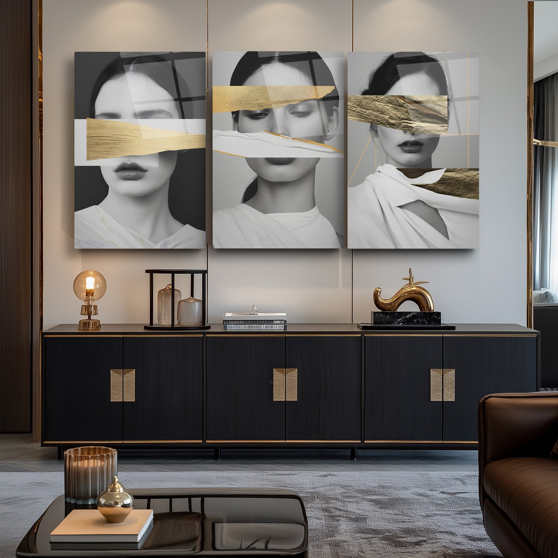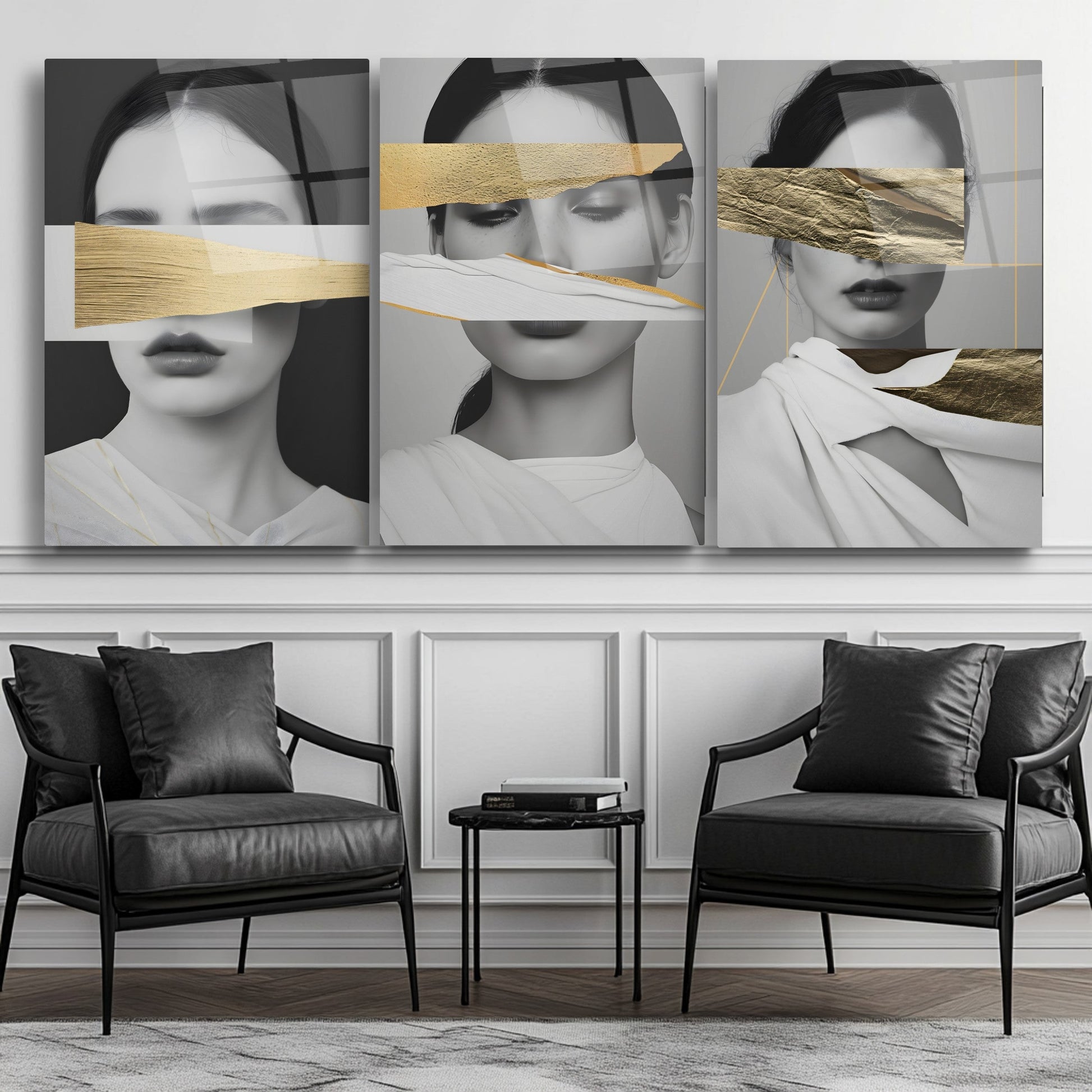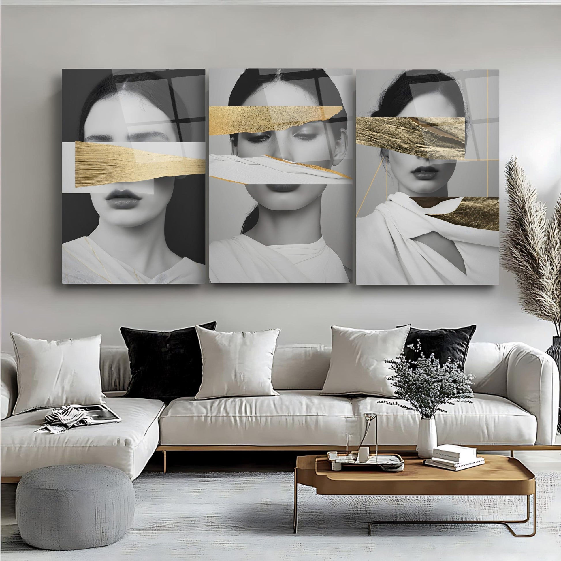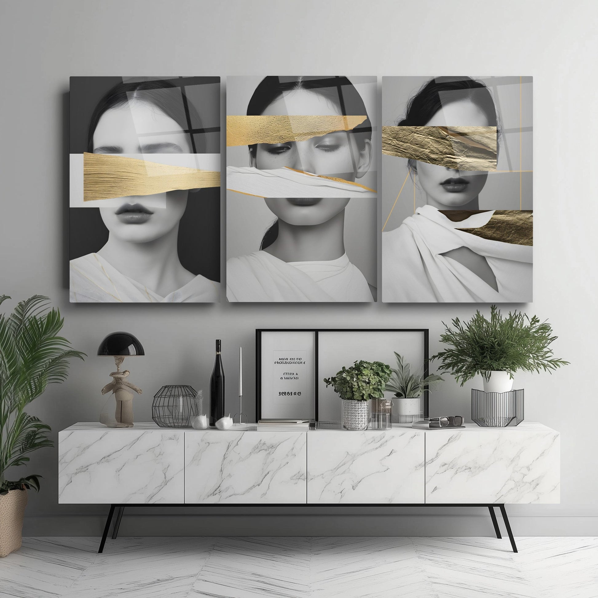 Gold Detay Kadın Model Üçlü Set Cam Tablo