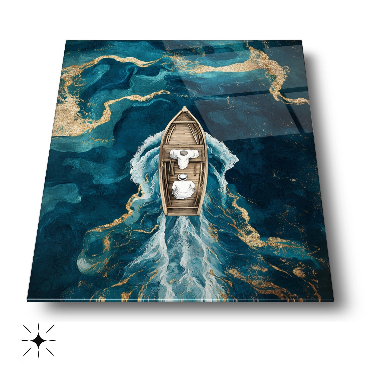 Derin lacivert ve turkuaz tonlarıyla canlanan deniz ve sandal manzarası, kırılmaz cam tablo teknolojisiyle temperli cam üzerinde hayat buluyor. Modern ve dayanıklı tasarımı, ev veya ofis dekorasyonlarınıza zarif bir dokunuş katarken, uzun ömürlü kullanım sunar. Şık ve estetik bu gerçek cam tablo ile mekanlarınızda fark yaratın.