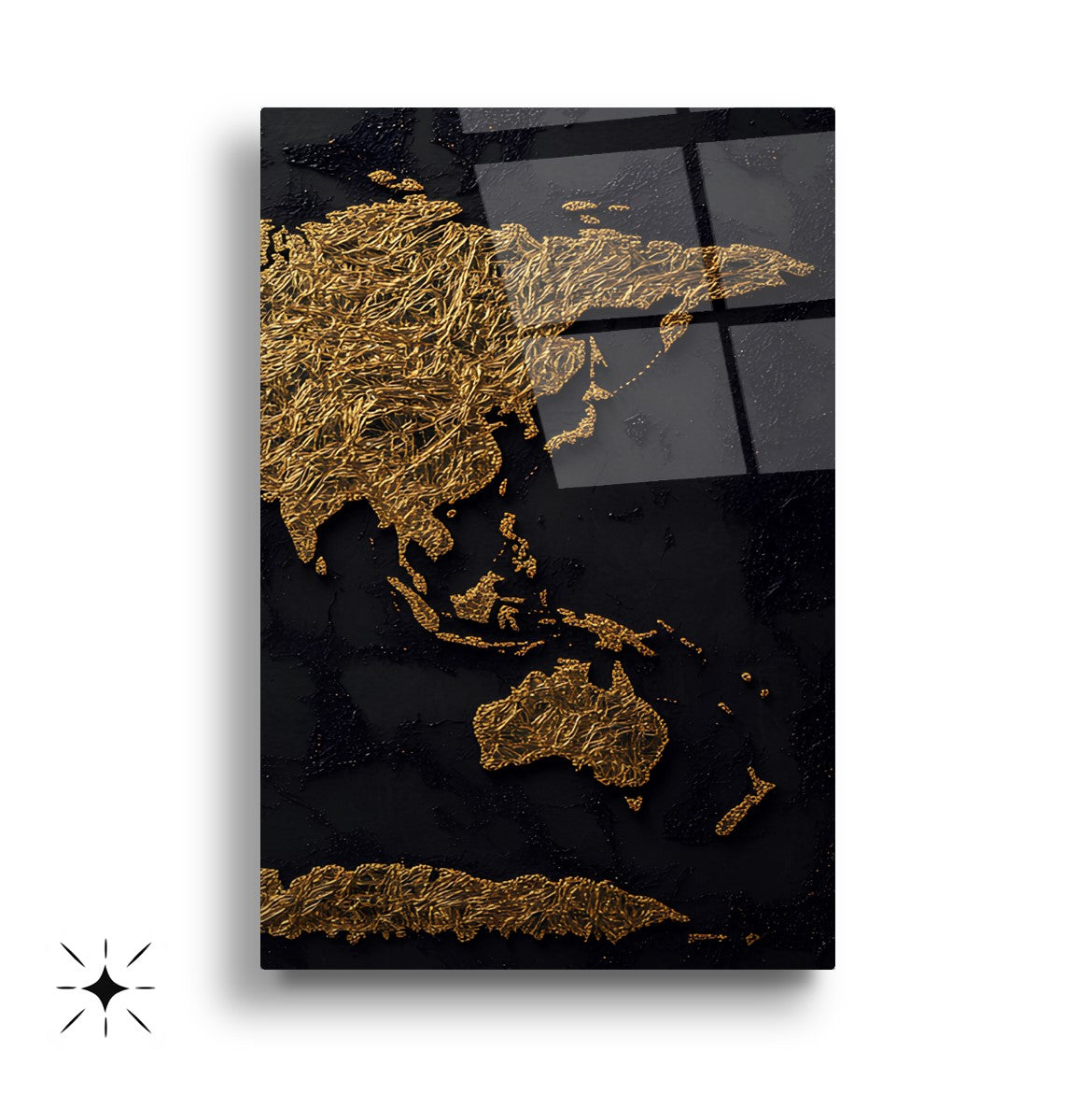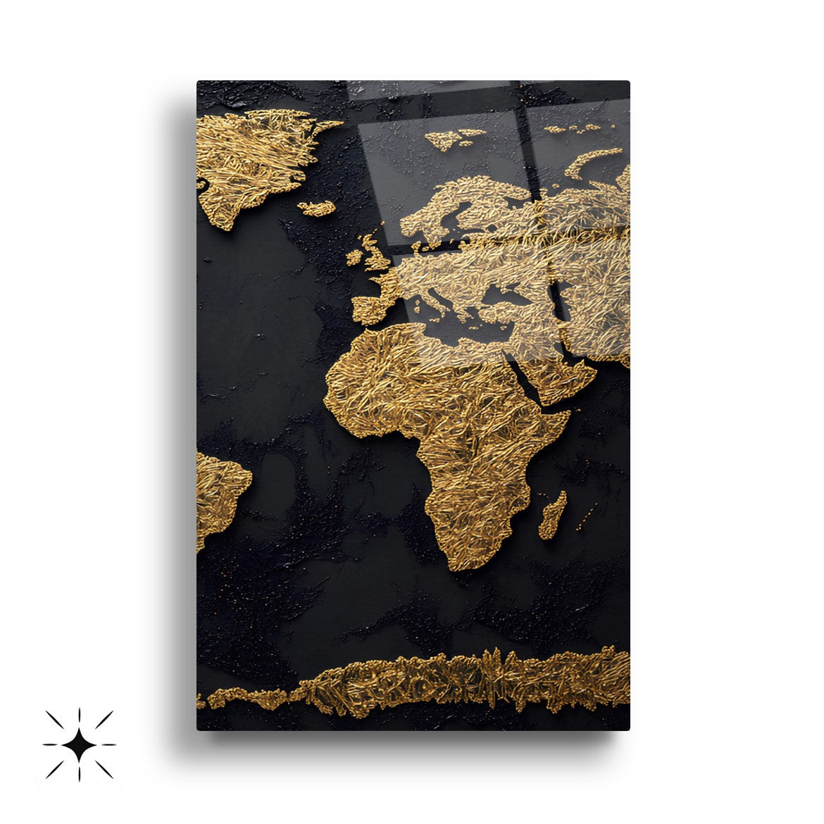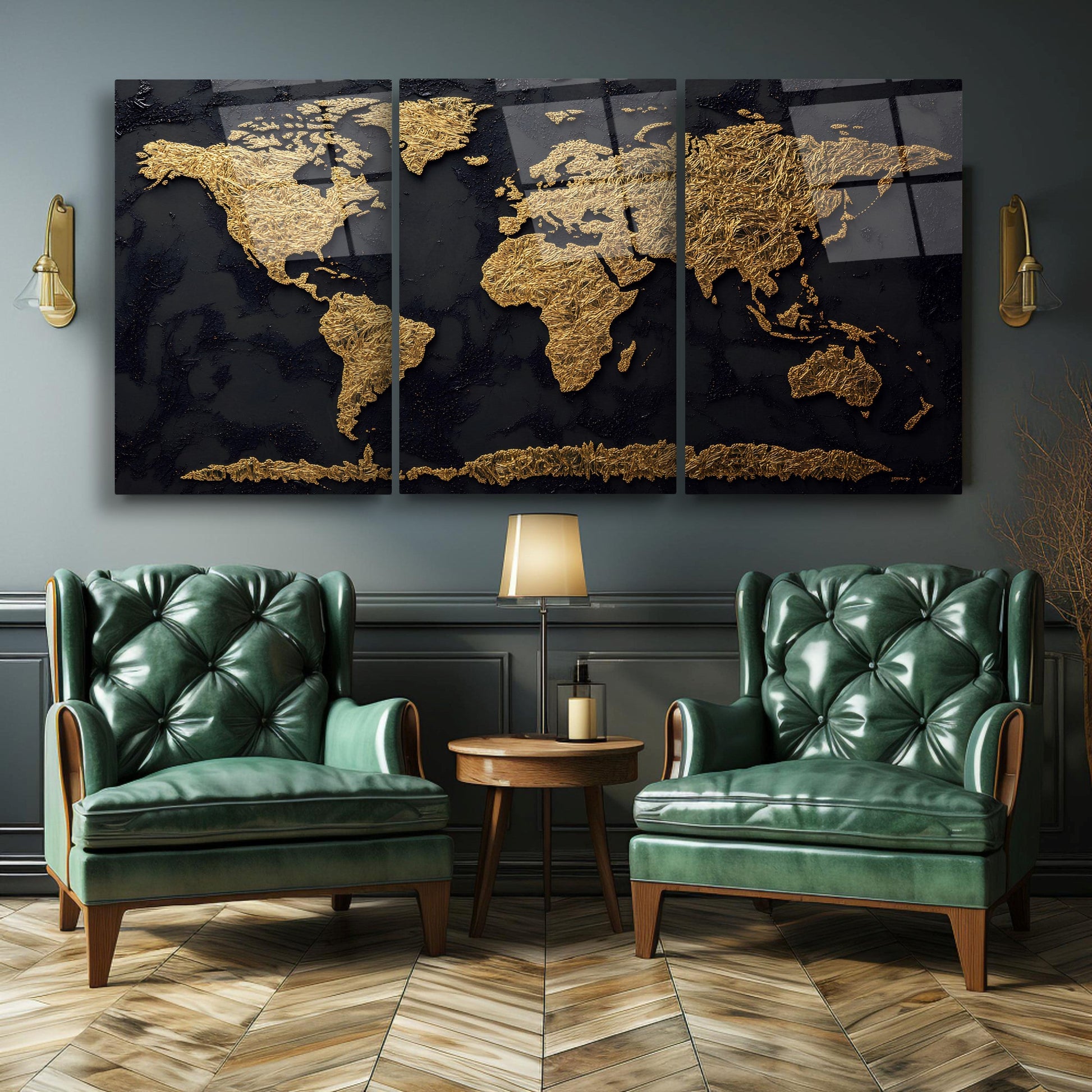 Gold Siyah Dünya Haritası Üçlü Set Cam Tablo