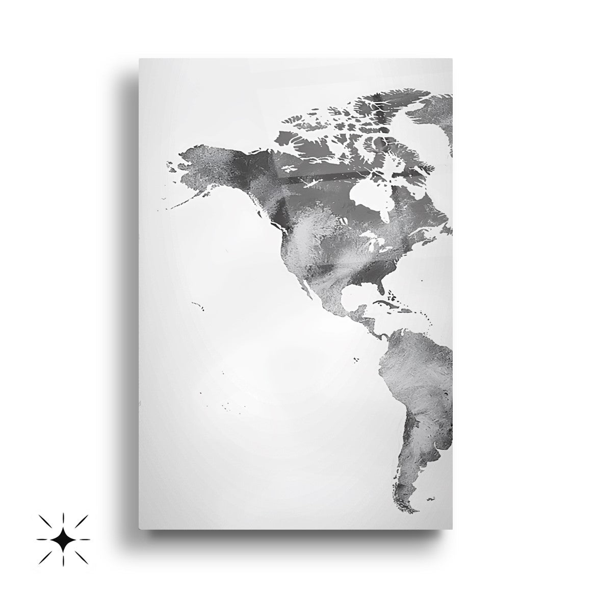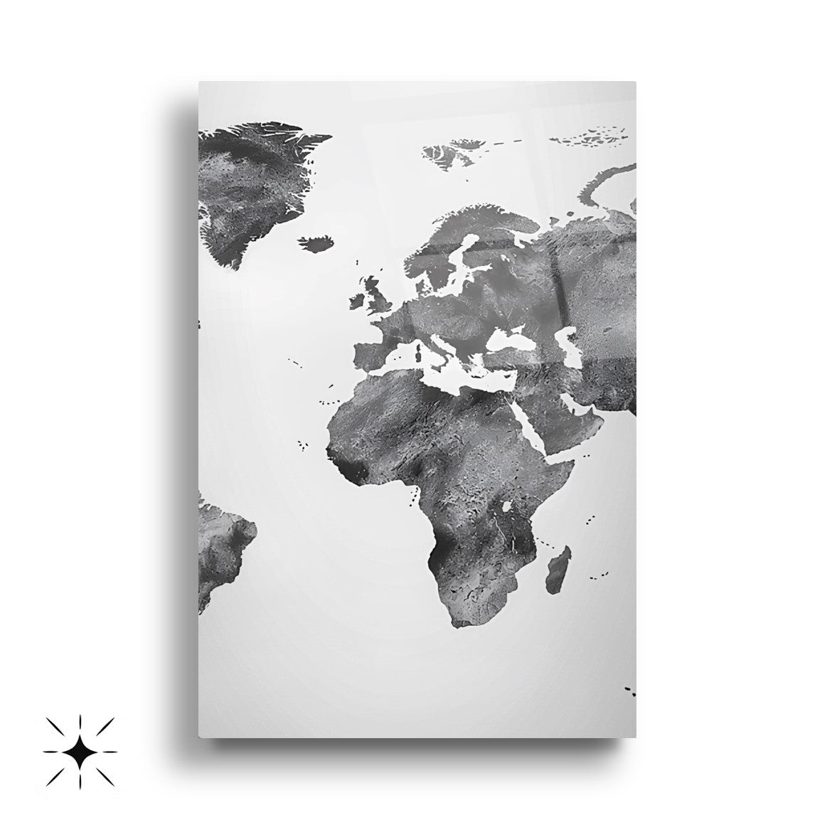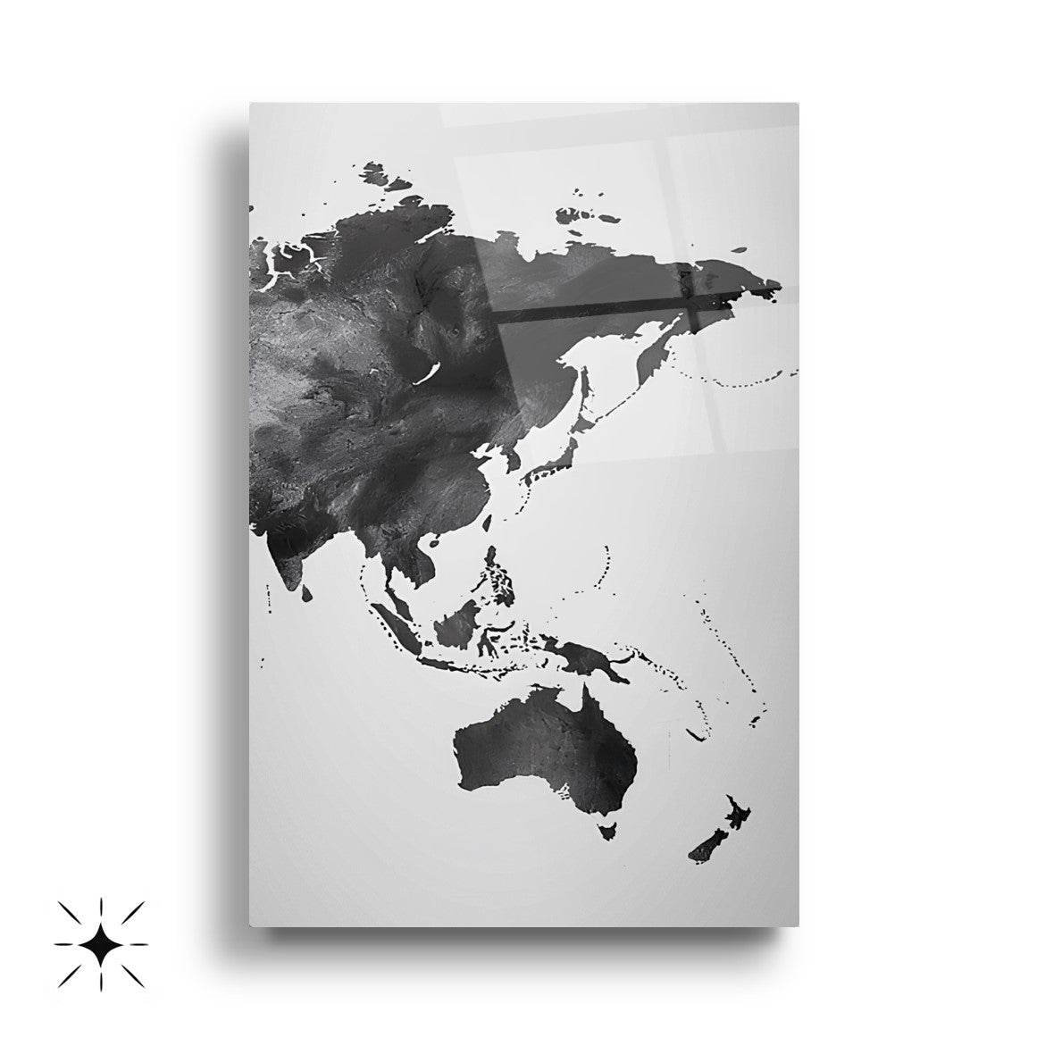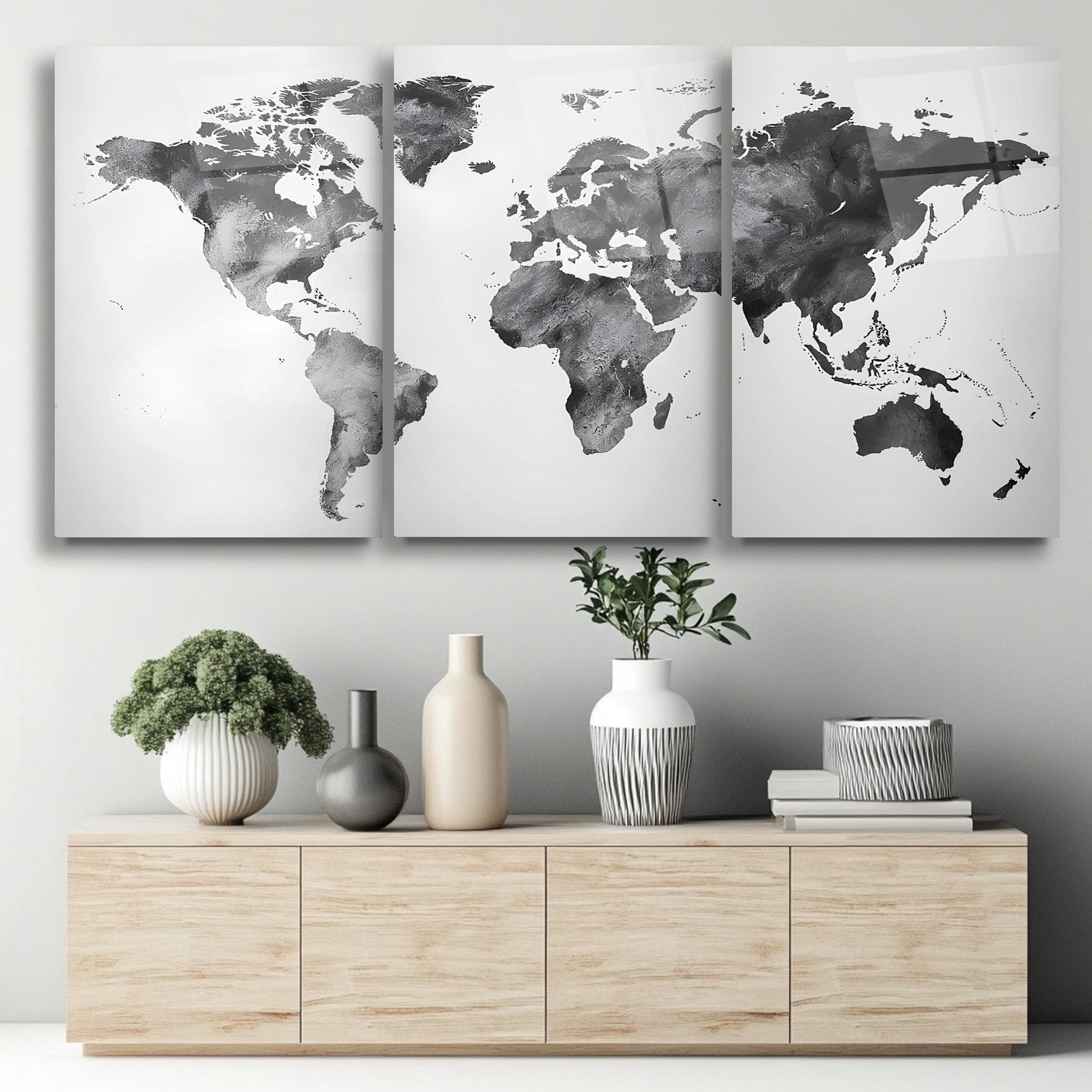 Siyah Beyaz Dünya Haritası Üçlü Set Cam Tablo