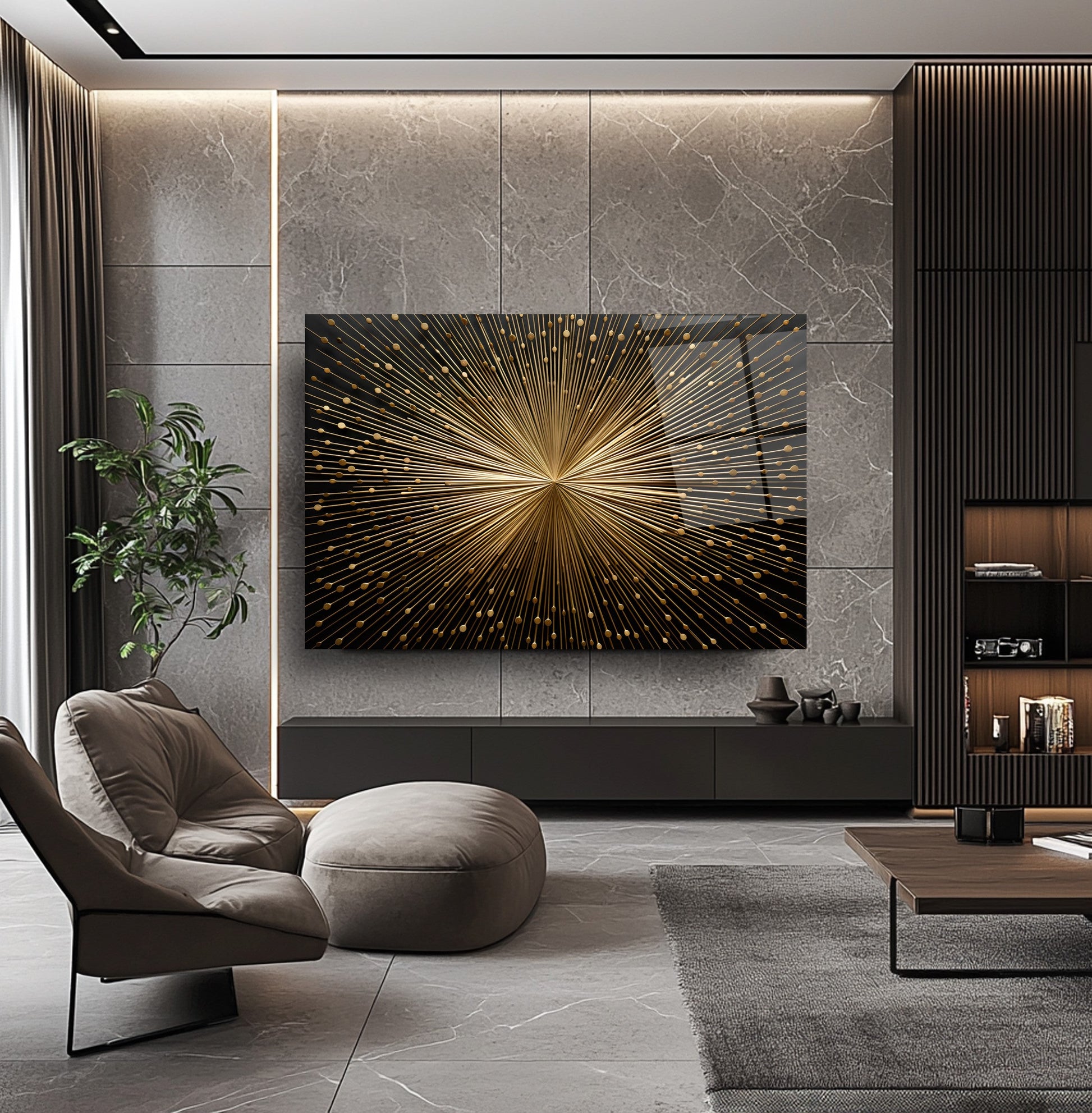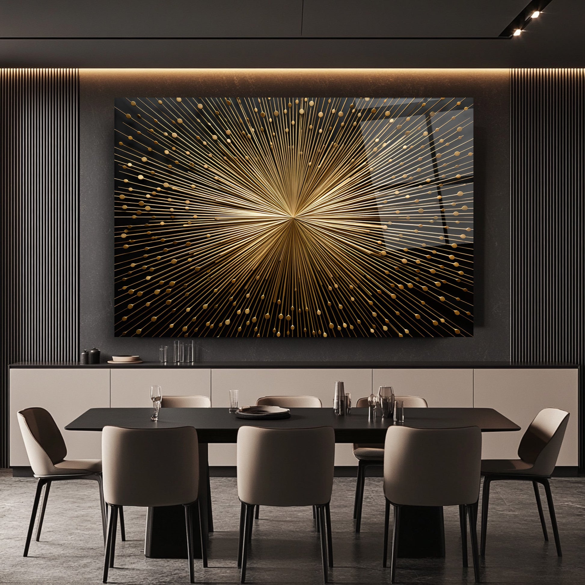 Siyah ve gold detaylarla tasarlanmış bu 3 boyutlu gerçek cam tablo, makam odası ve ofislere prestij ve şıklık katar. Kırılmaz cam tablo yapısıyla dayanıklı ve estetik bir dekorasyon seçeneğidir. Modern çalışma alanlarında güçlü ve zarif bir atmosfer yaratmak isteyenler için ideal bir tercihtir.