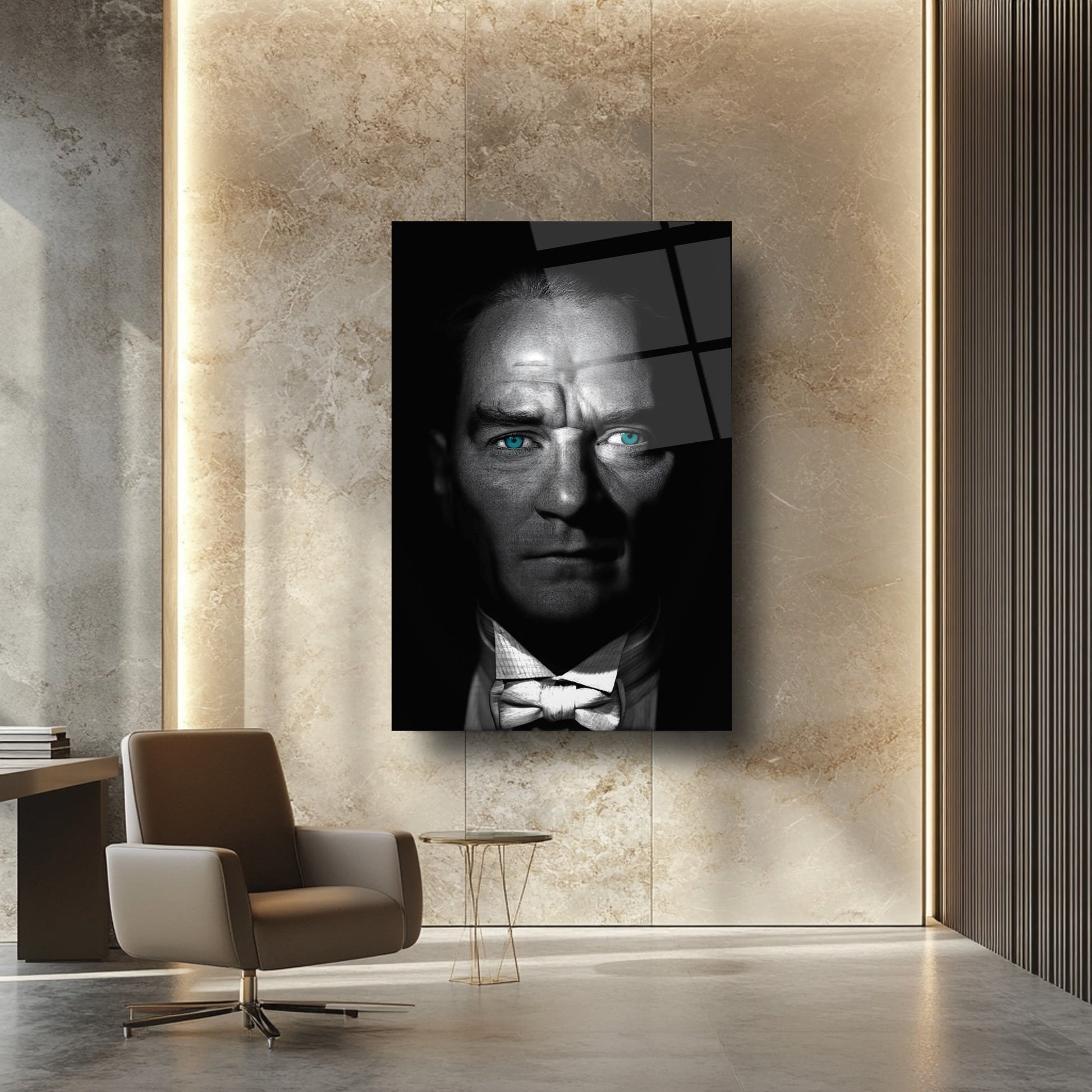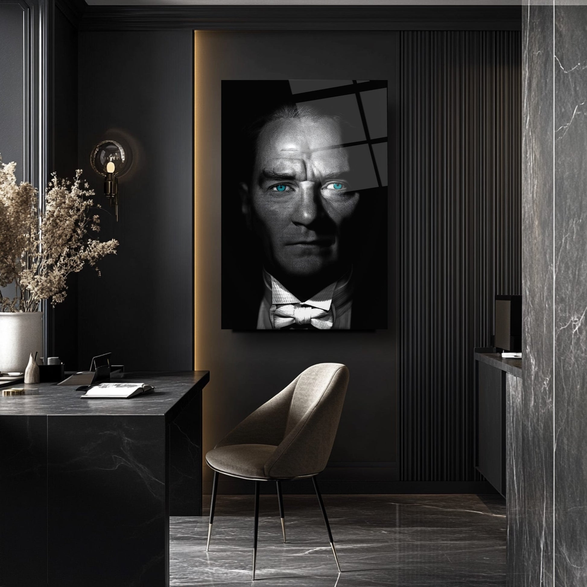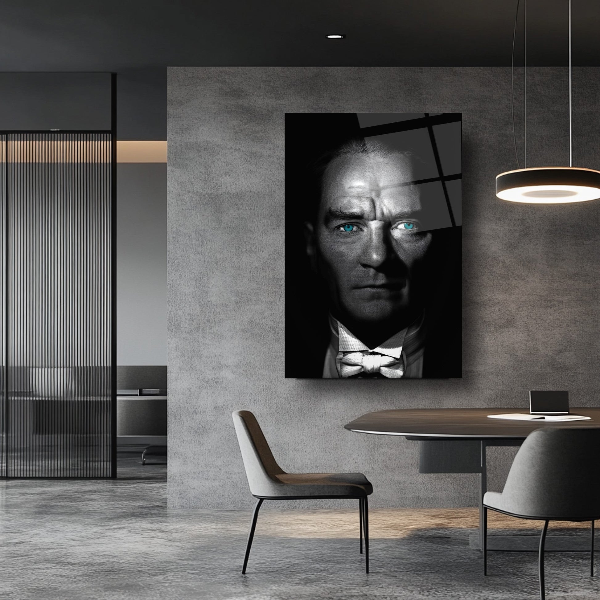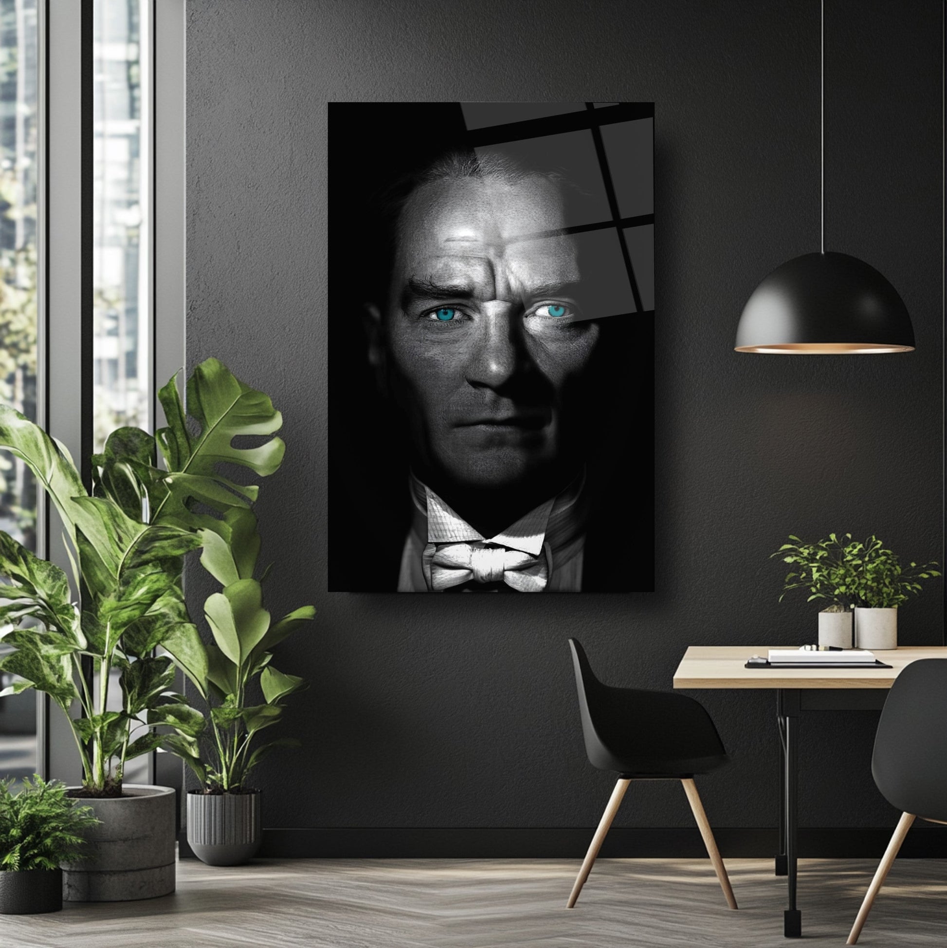 Modern tasarım ve ulusal gururun birleşimi! Mavi gözlü Atatürk portresi, ofis ve makam odalarınıza prestijli bir atmosfer katar. 4 mm kalınlığındaki ultra-clear temperli cam, standart camlara göre 10 kat daha dayanıklıdır ve rodajlanmış kenarlarıyla güvenli kullanım sağlar. UV dijital baskı teknolojisiyle uygulanan yüksek çözünürlüklü baskı, renklerin solmasını engeller ve uzun ömürlü kullanım sunar. Kolay montajı sayesinde hemen duvarınıza asılabilir. Salon, ofis veya toplantı odası gibi farklı alanlarda şıklığıyla öne çıkar. Evinize veya iş yerinize modern bir atmosfer kazandırmak için bu tablo mükemmel bir tercih olacaktır.