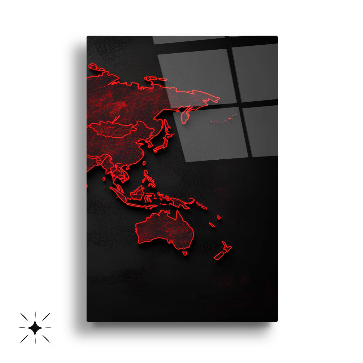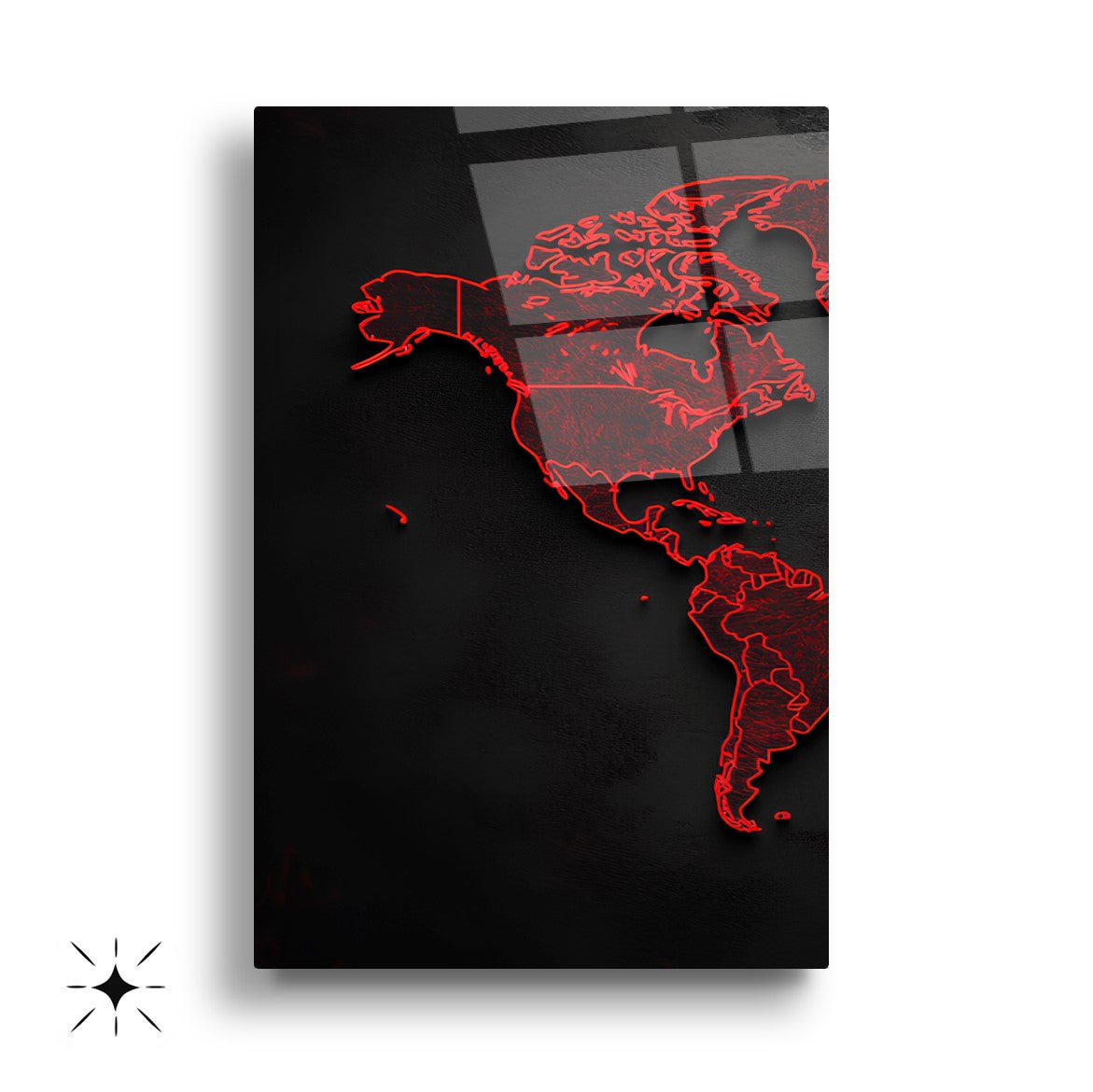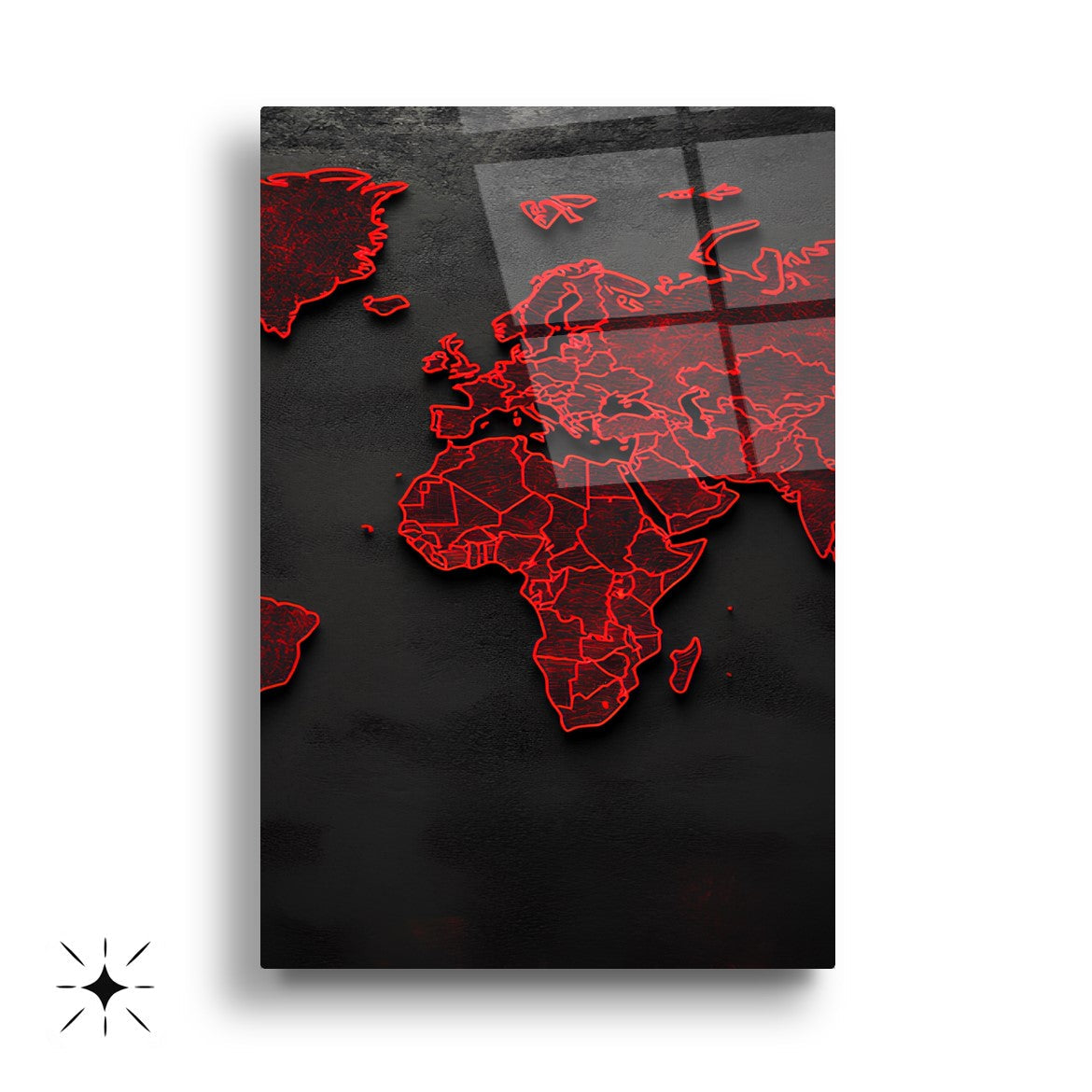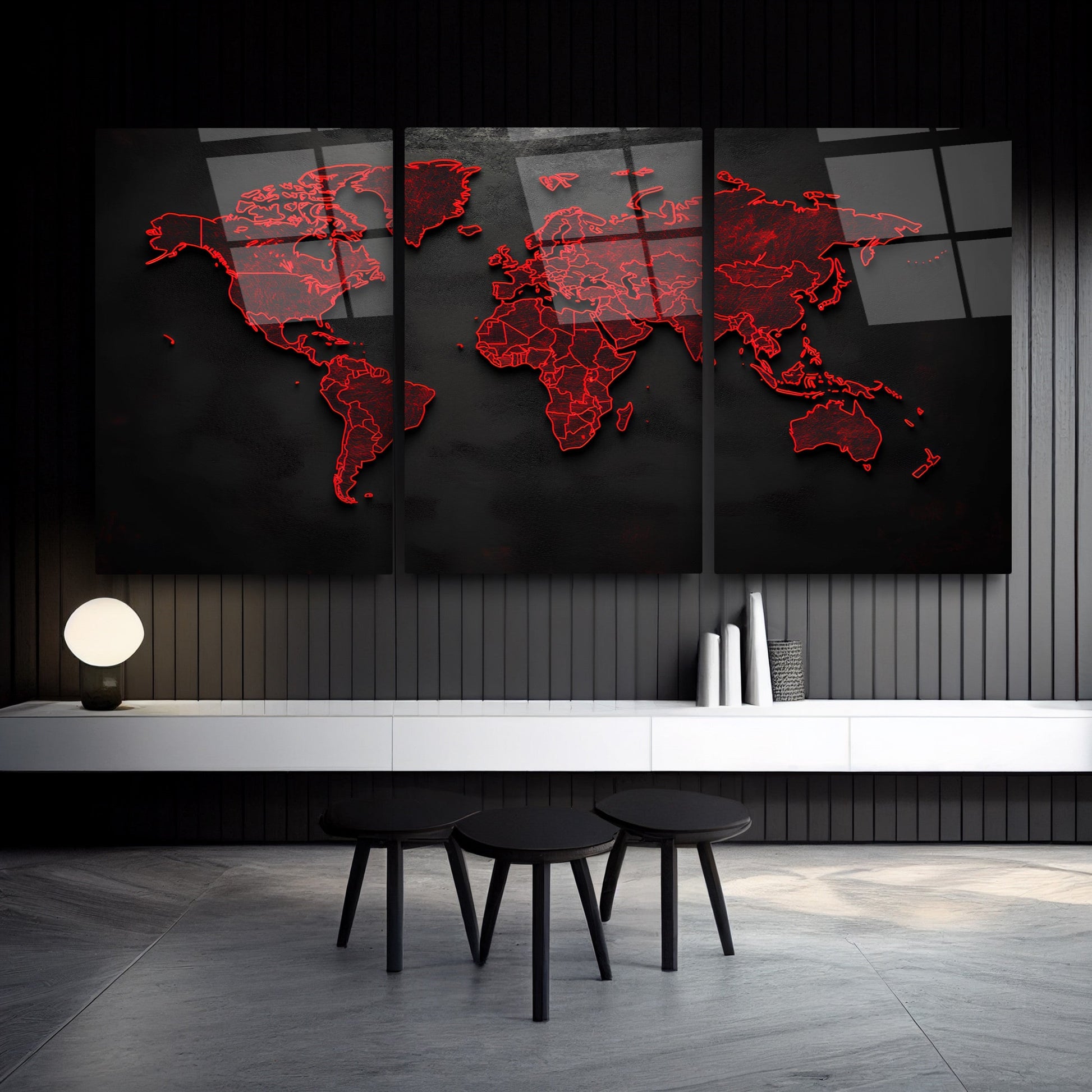 Kırmızı Detay Dünya Haritası Üçlü Set Cam Tablo
