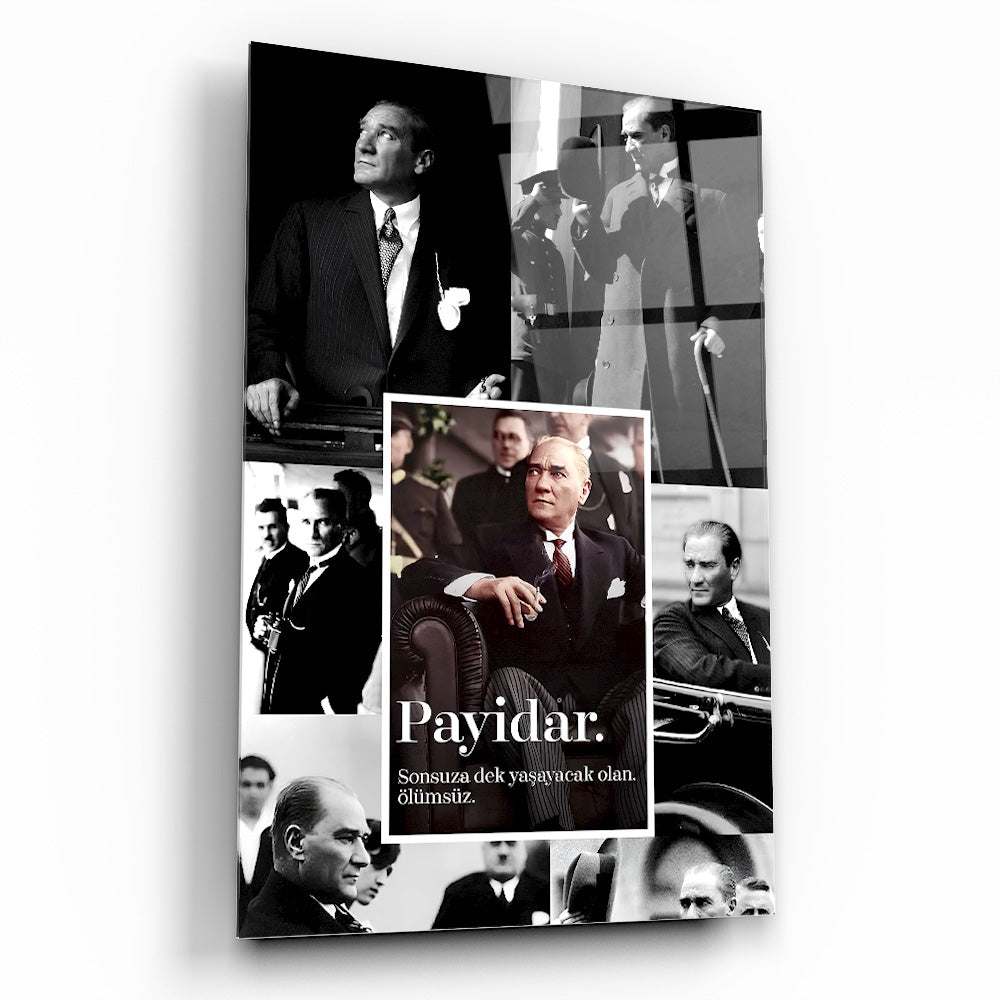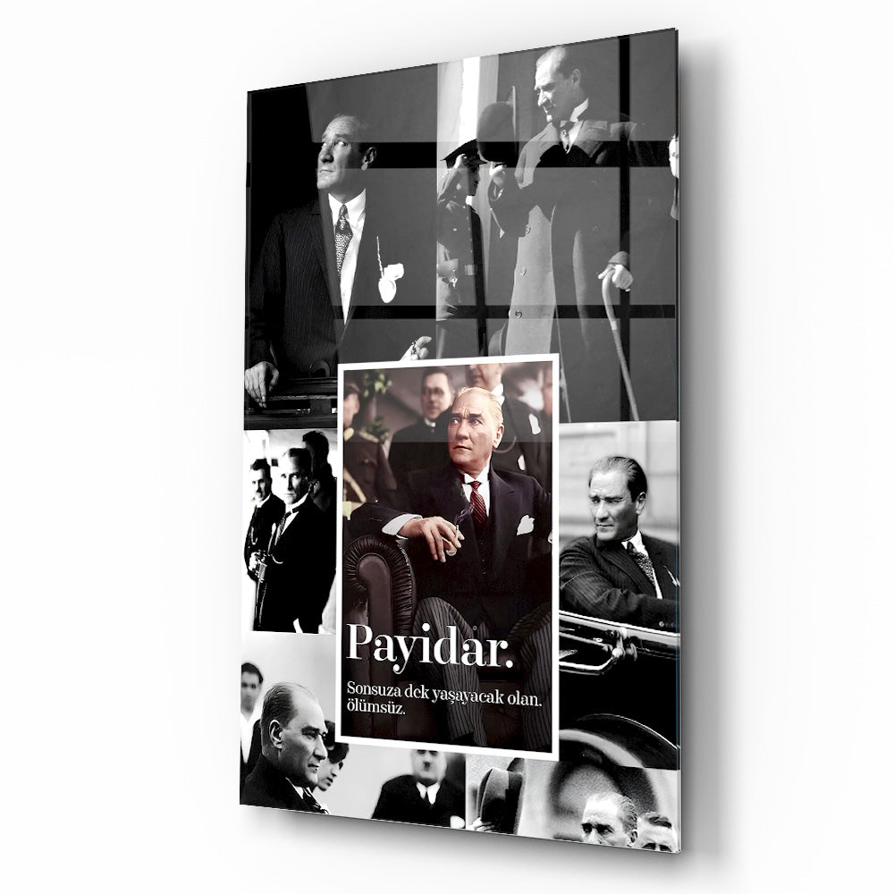 Atatürk Fotografları Kolaj Tasarım Cam Tablo