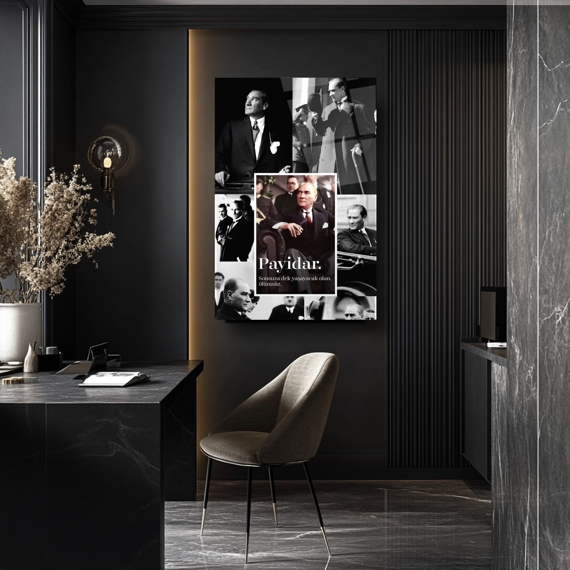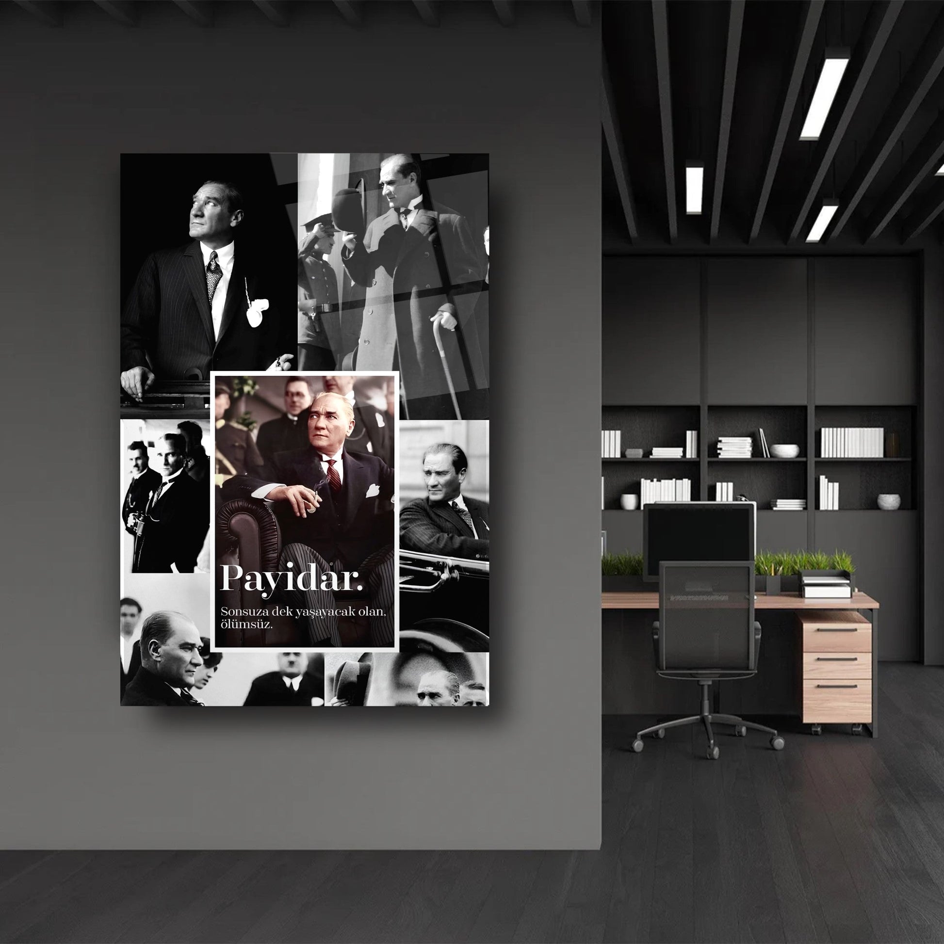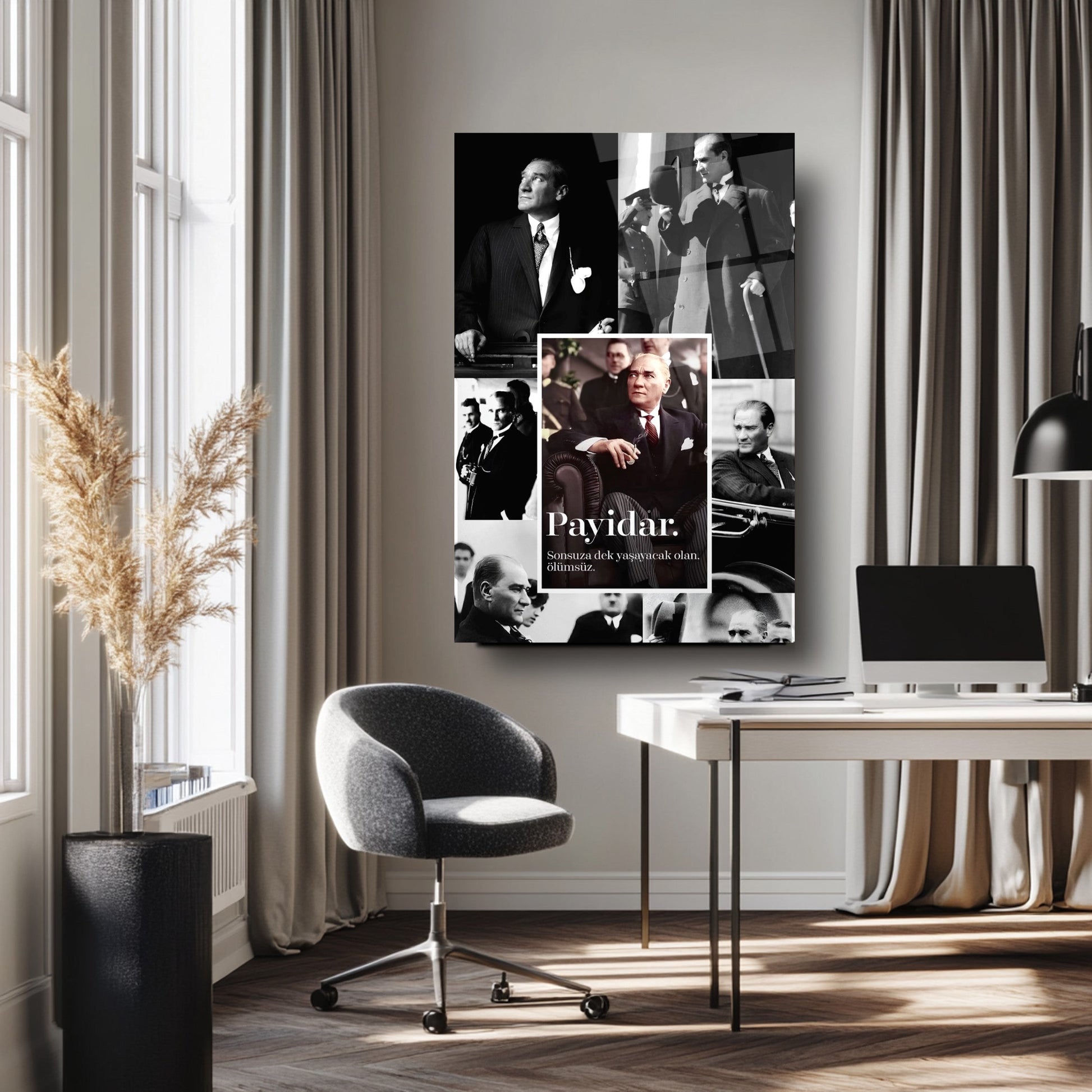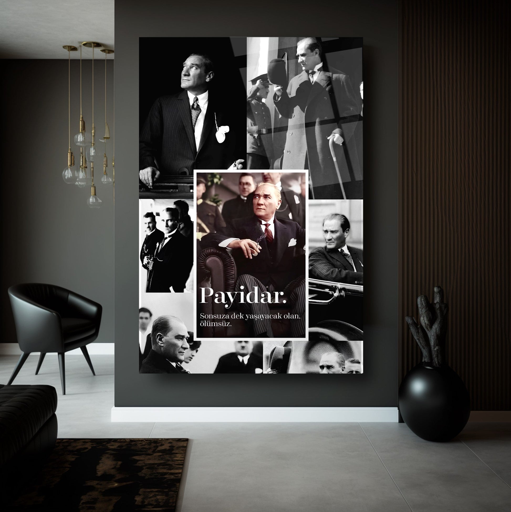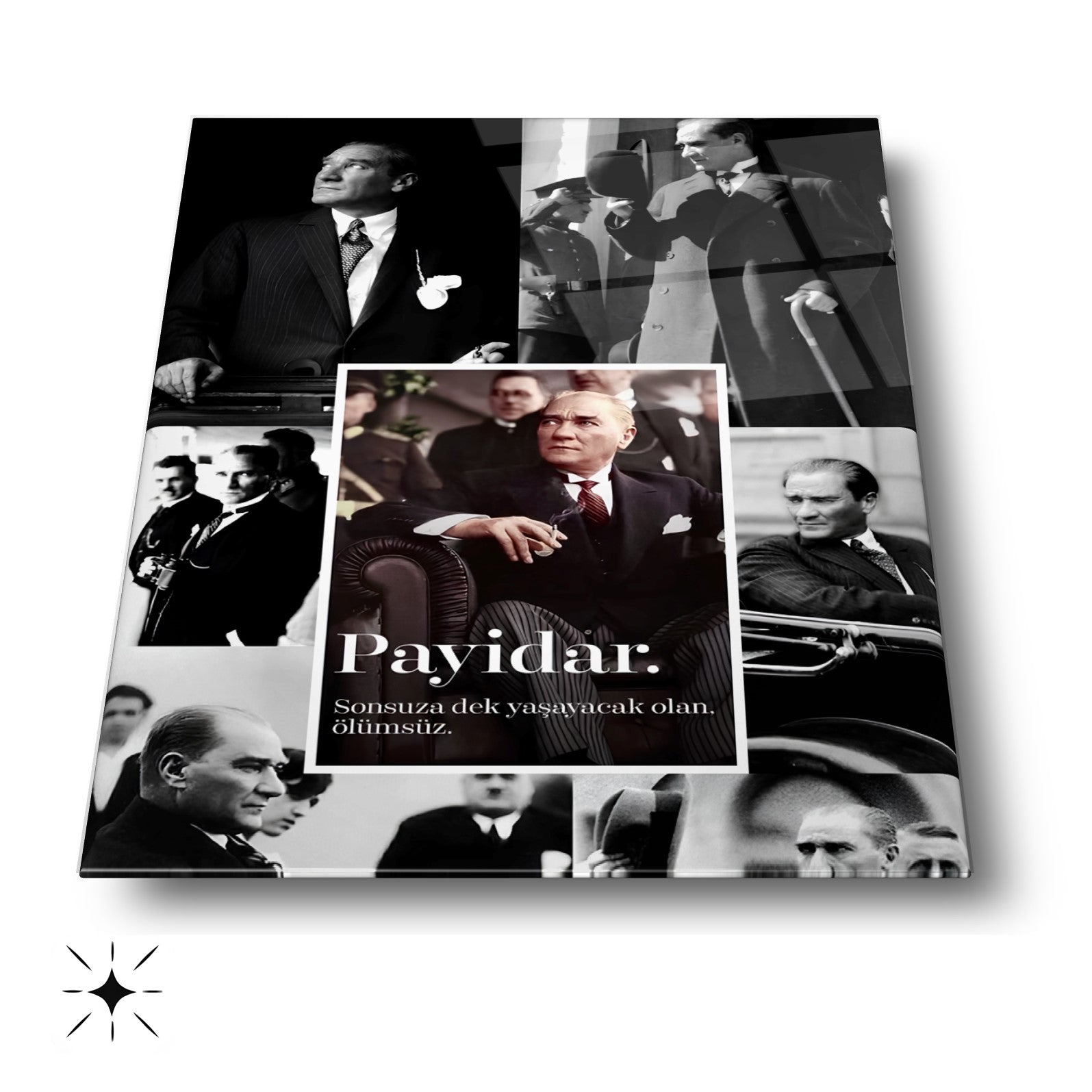 Liderin Anıları Mekanlarınızda: Atatürk Fotoğrafları Kolaj Tasarım Cam Tablo