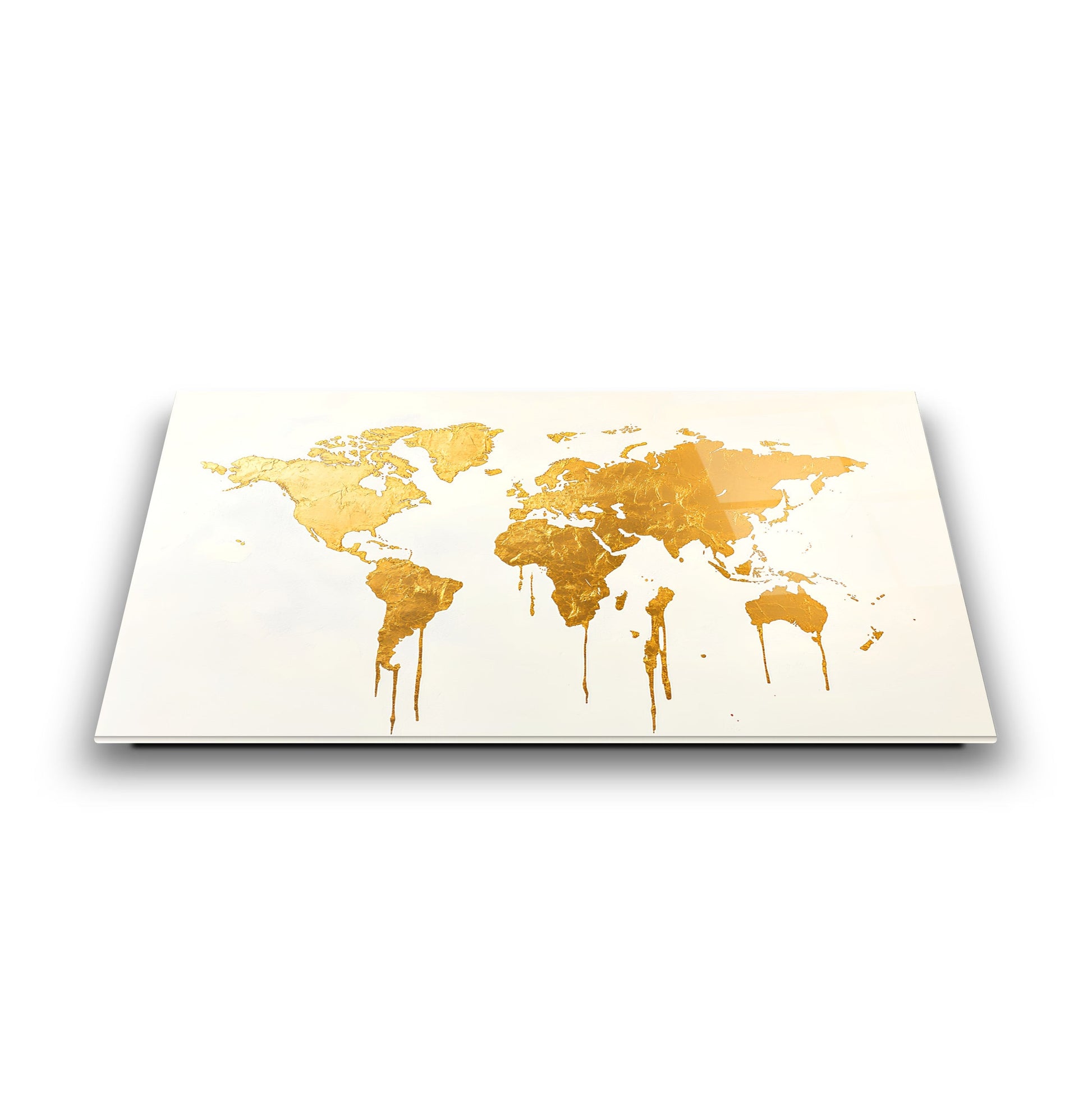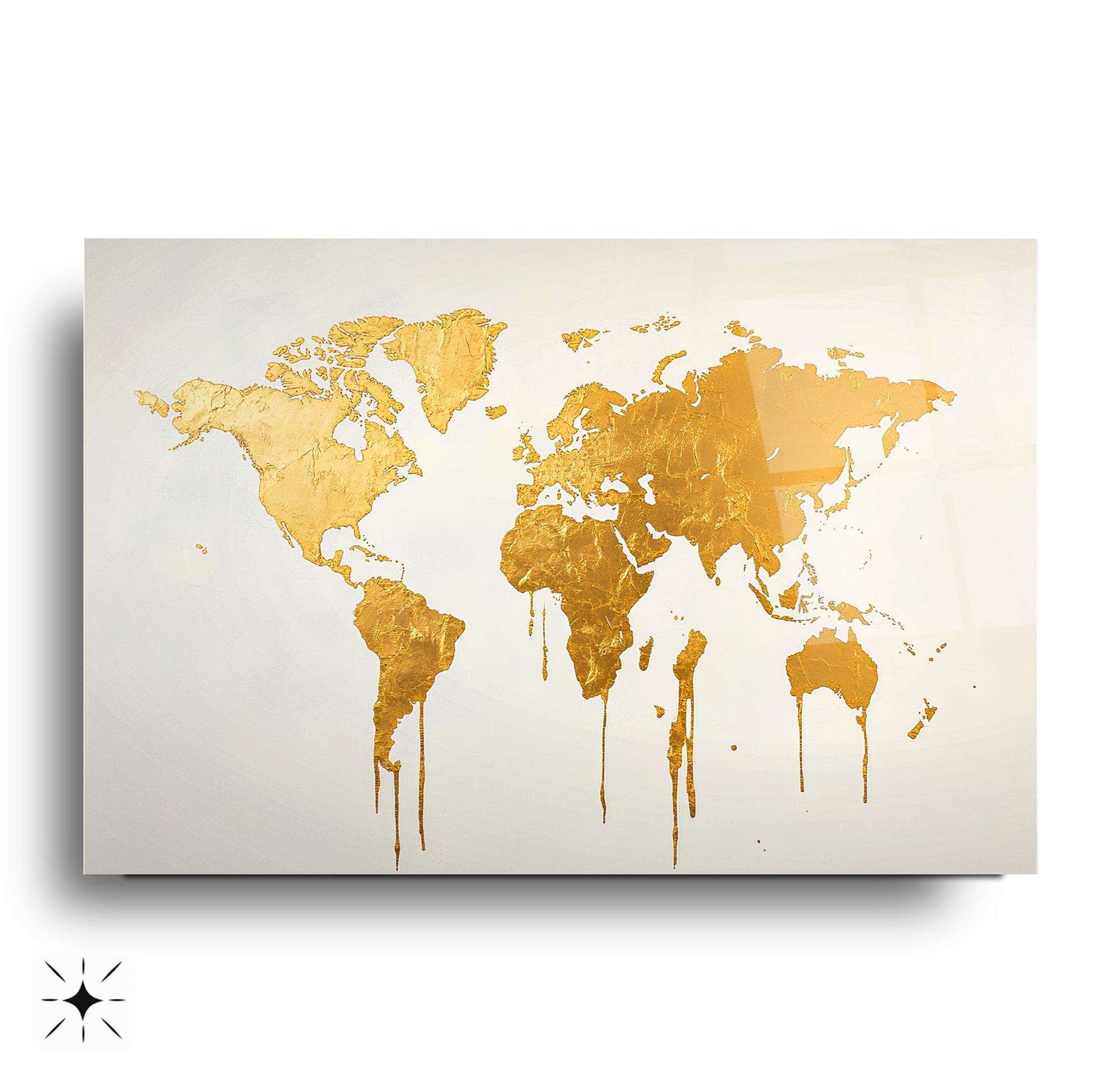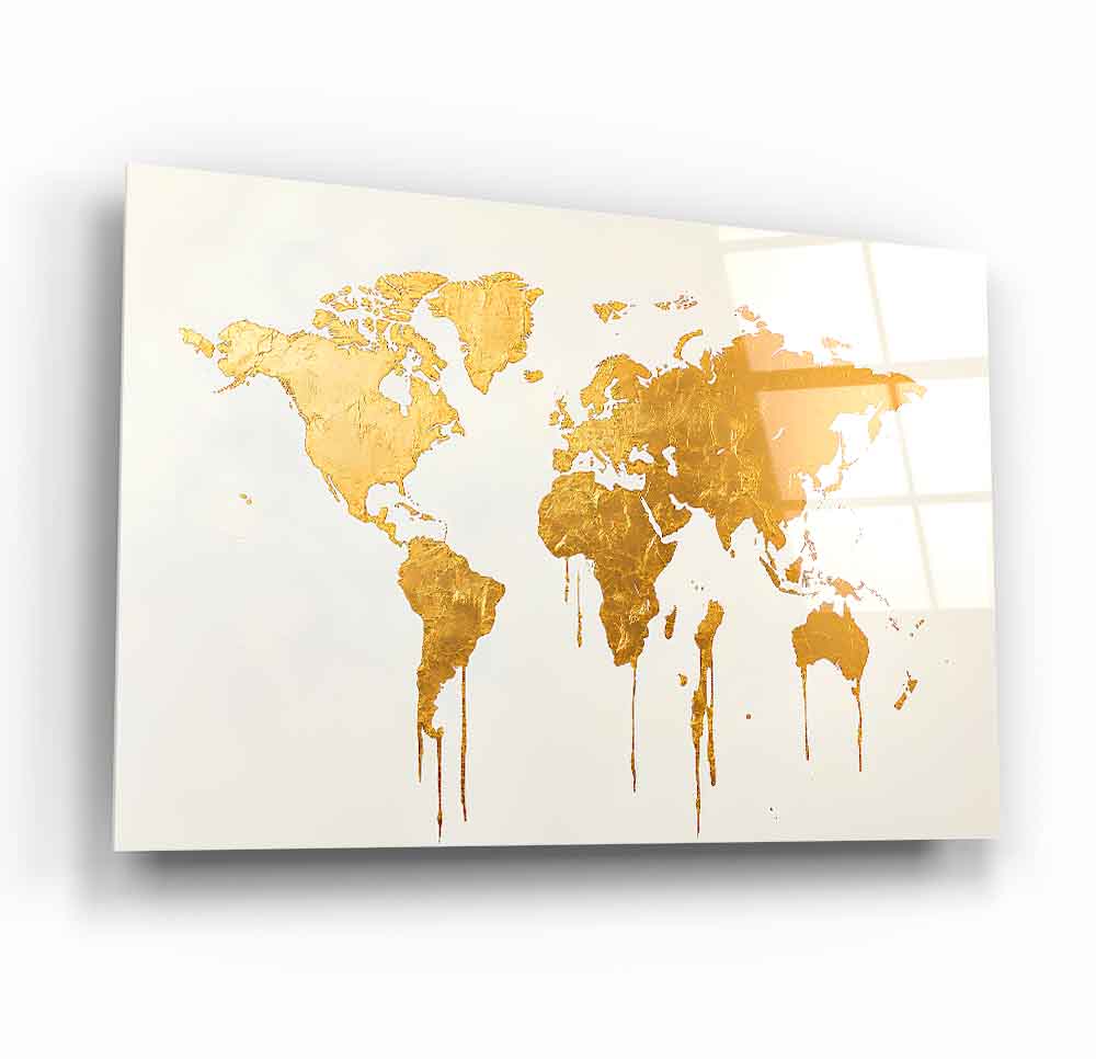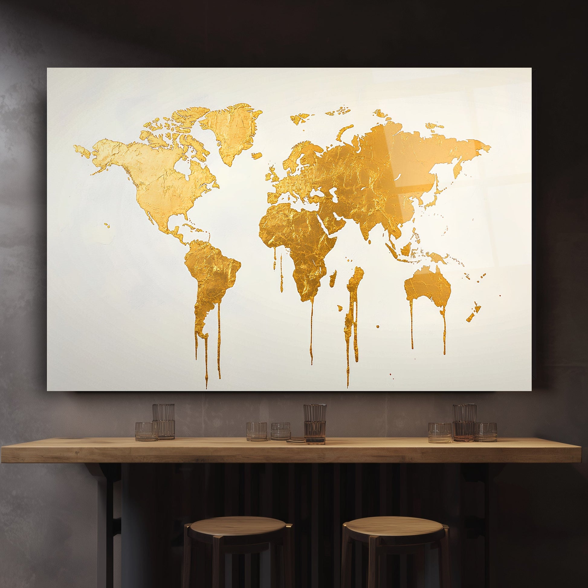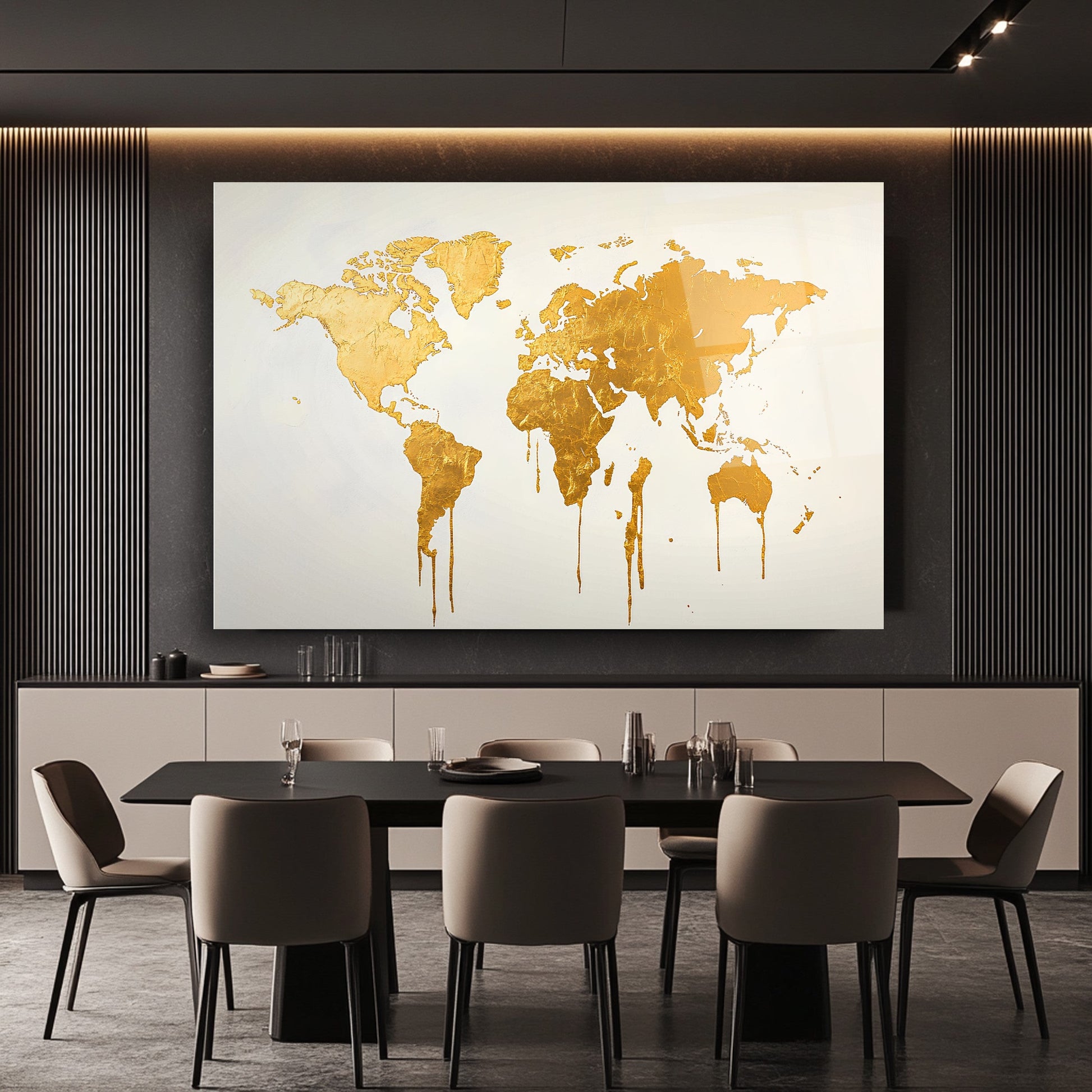 Mekanlarınıza Küresel Bir Vizyon Katın: Beyaz Gold Dünya Haritası Cam Tablo