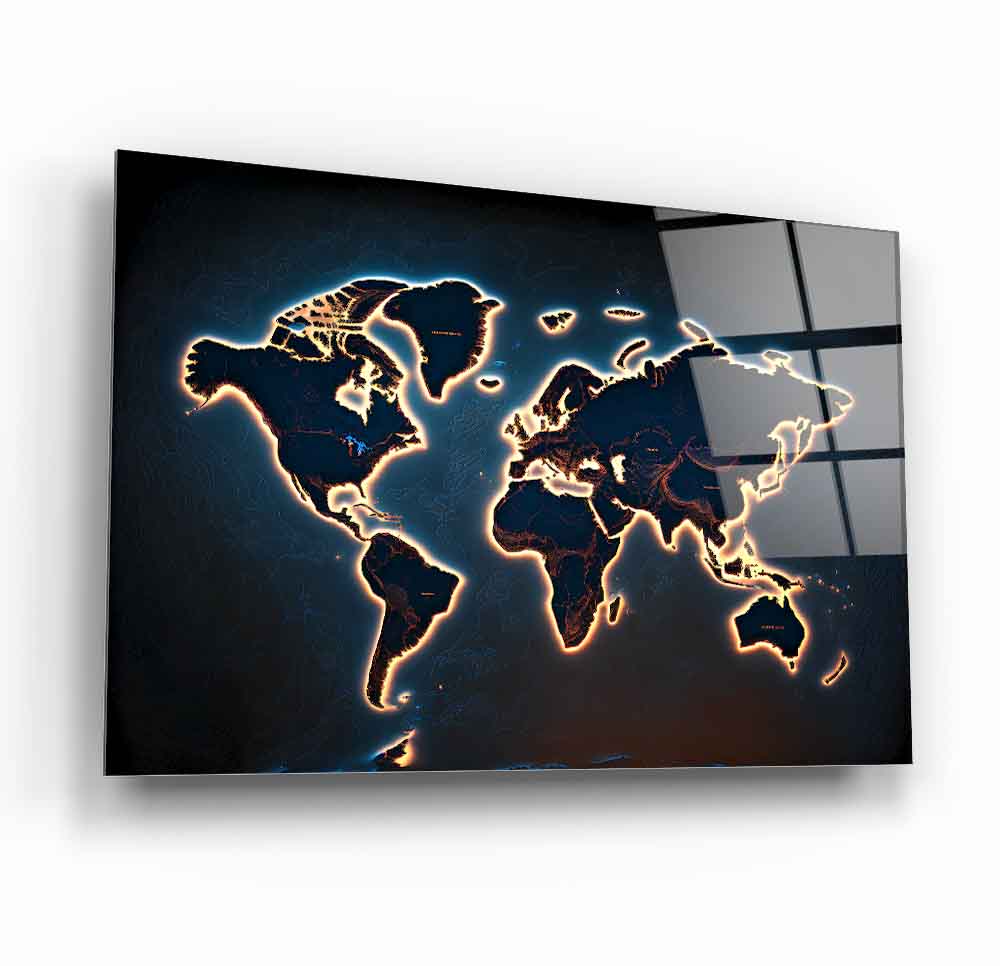 Mekanlarınıza Küresel Bir Vizyon Katın: Işık Efektli Dünya Haritası Cam Tablo