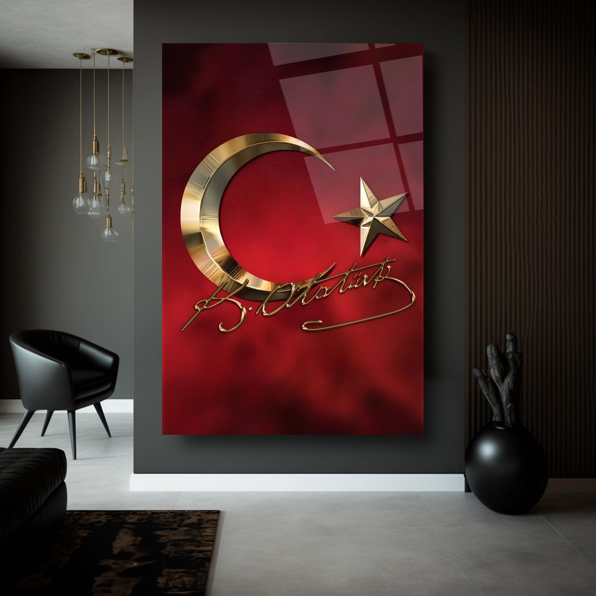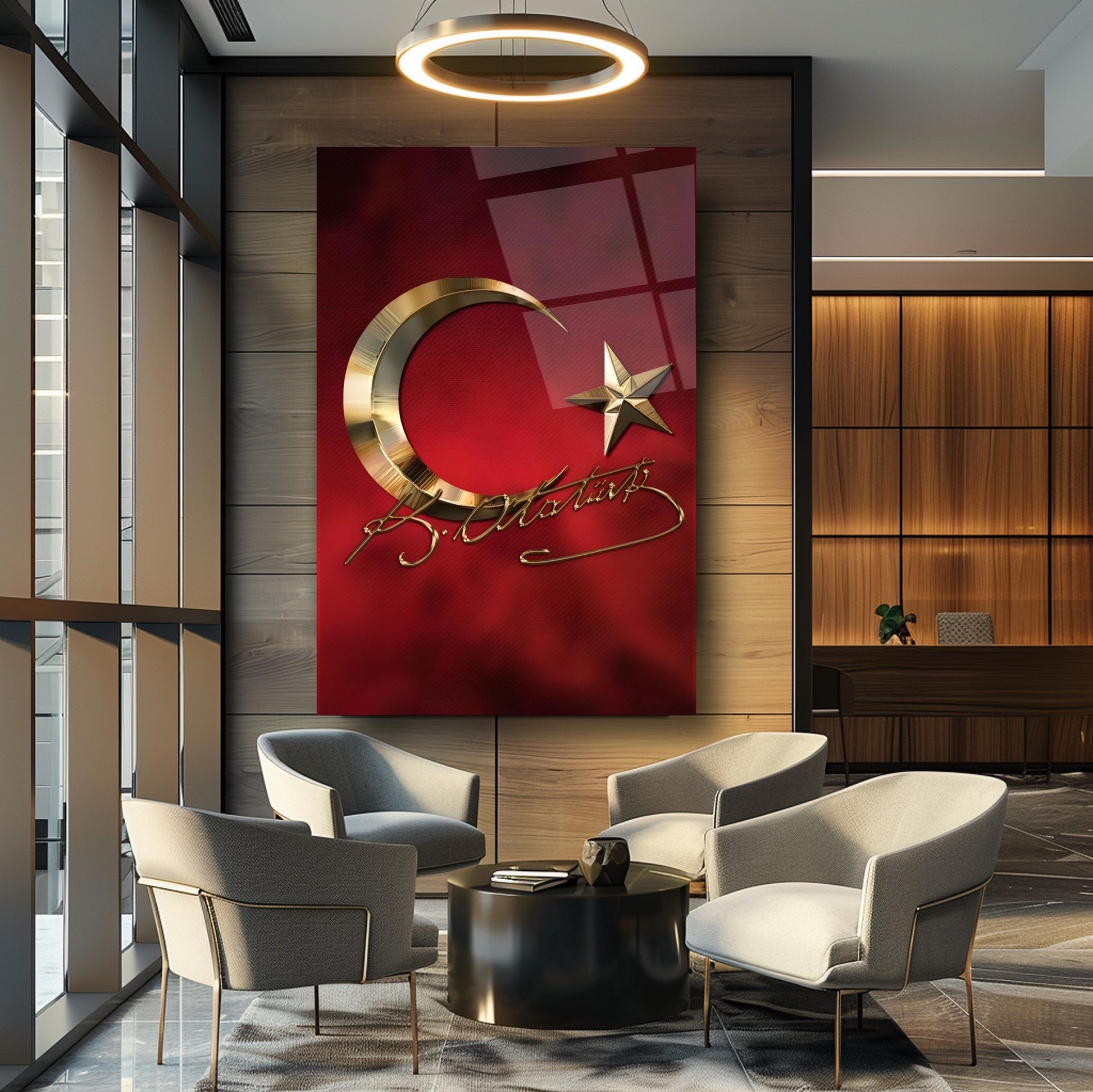 Milli Gururun Altın Yansıması: Atatürk İmzalı Türk Bayrak Cam Tablo