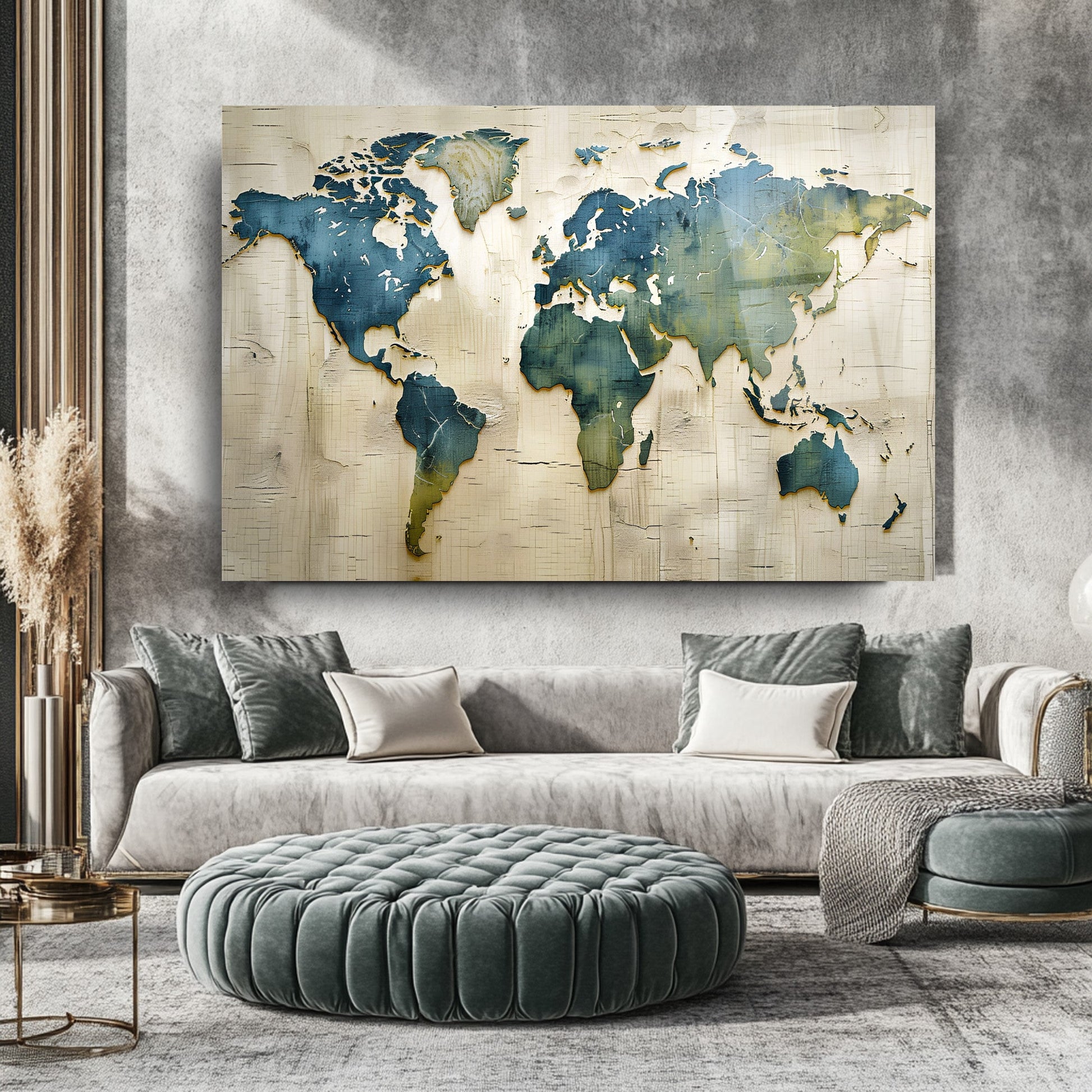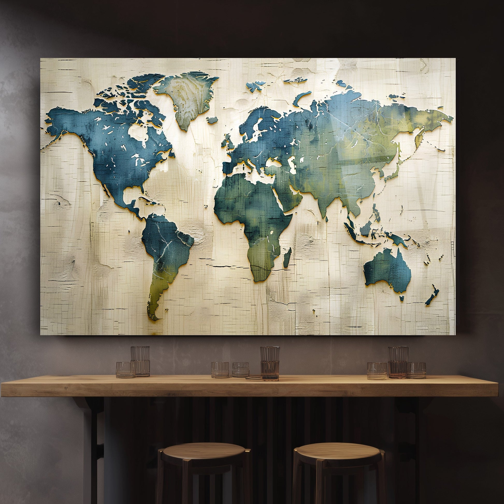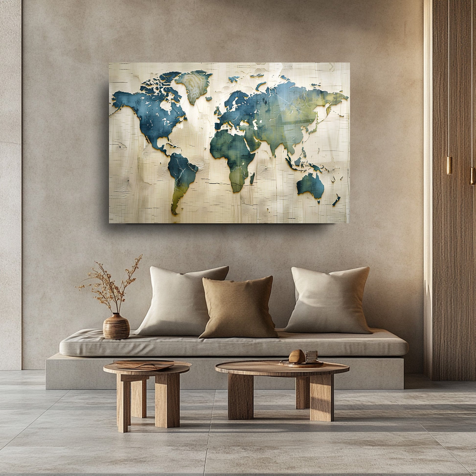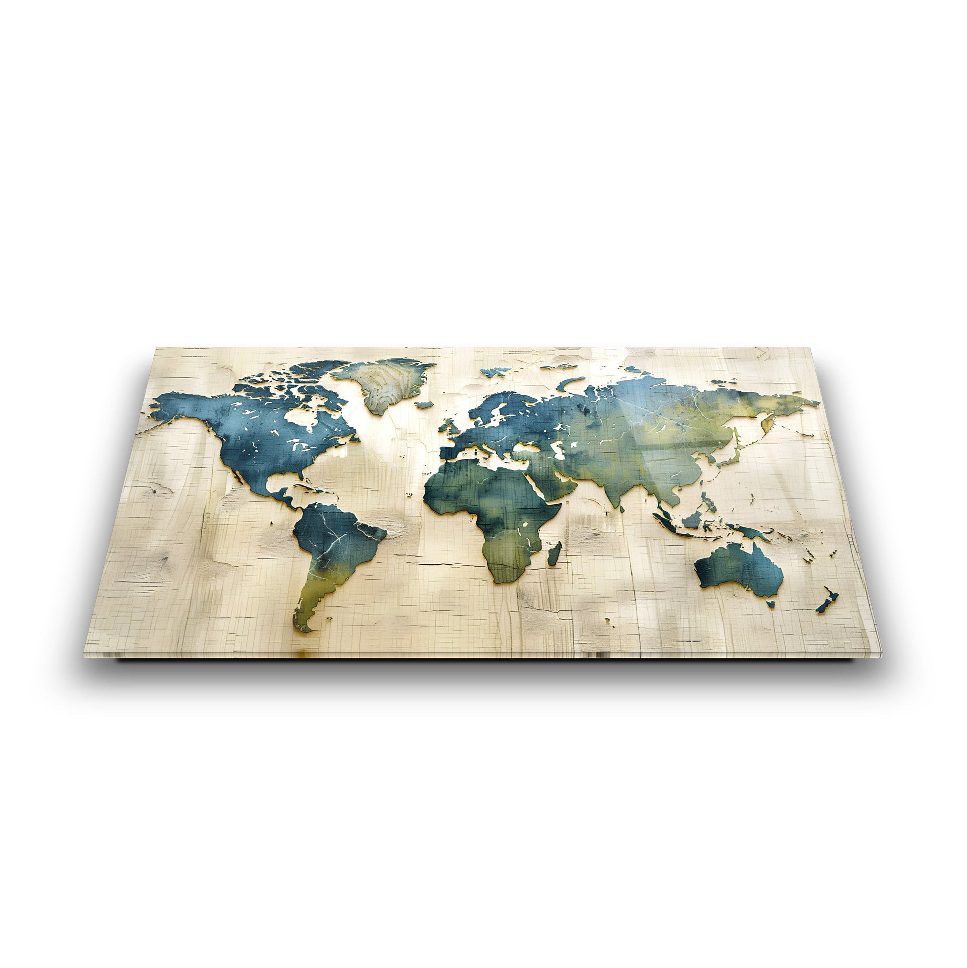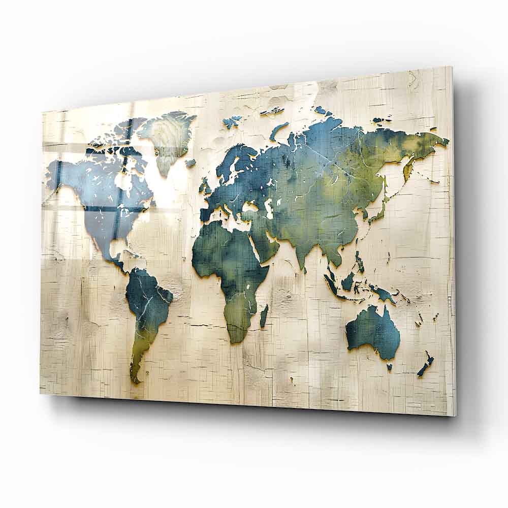 Mekanlarınıza Retro Bir Küresel Vizyon Katın: Renkli Retro Dünya Haritası Cam Tablo