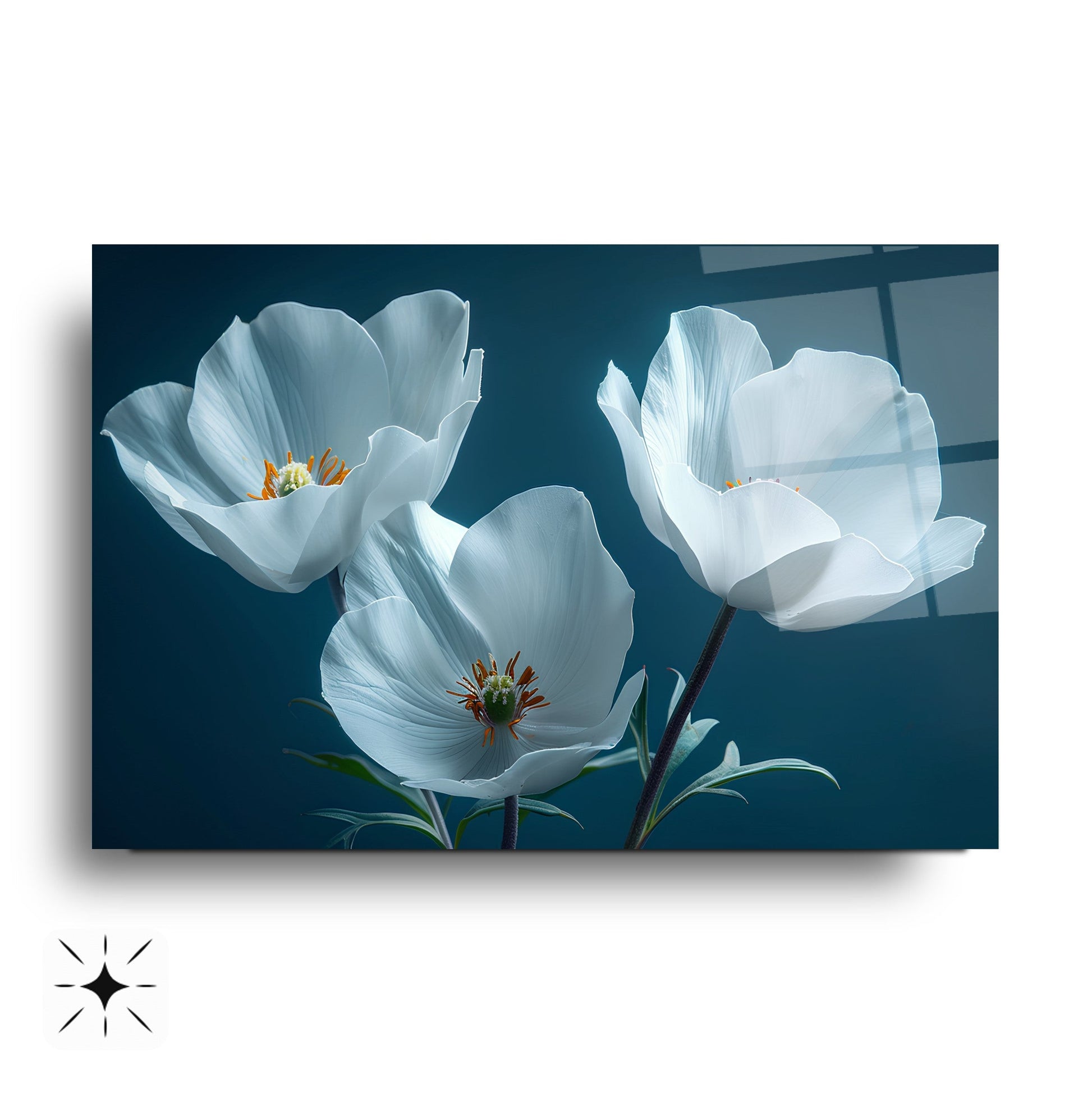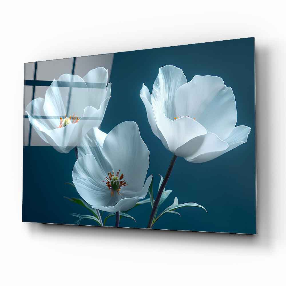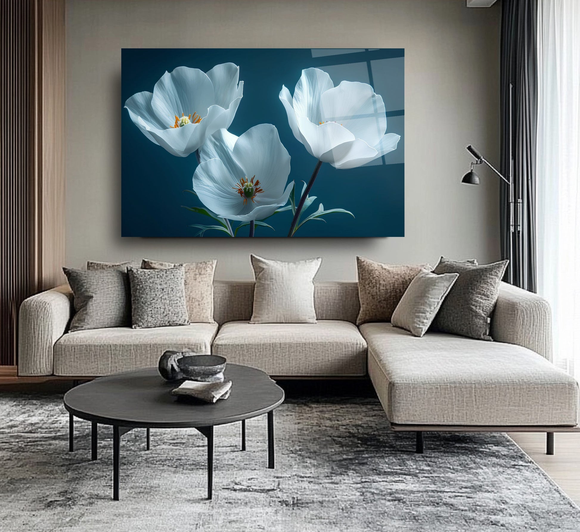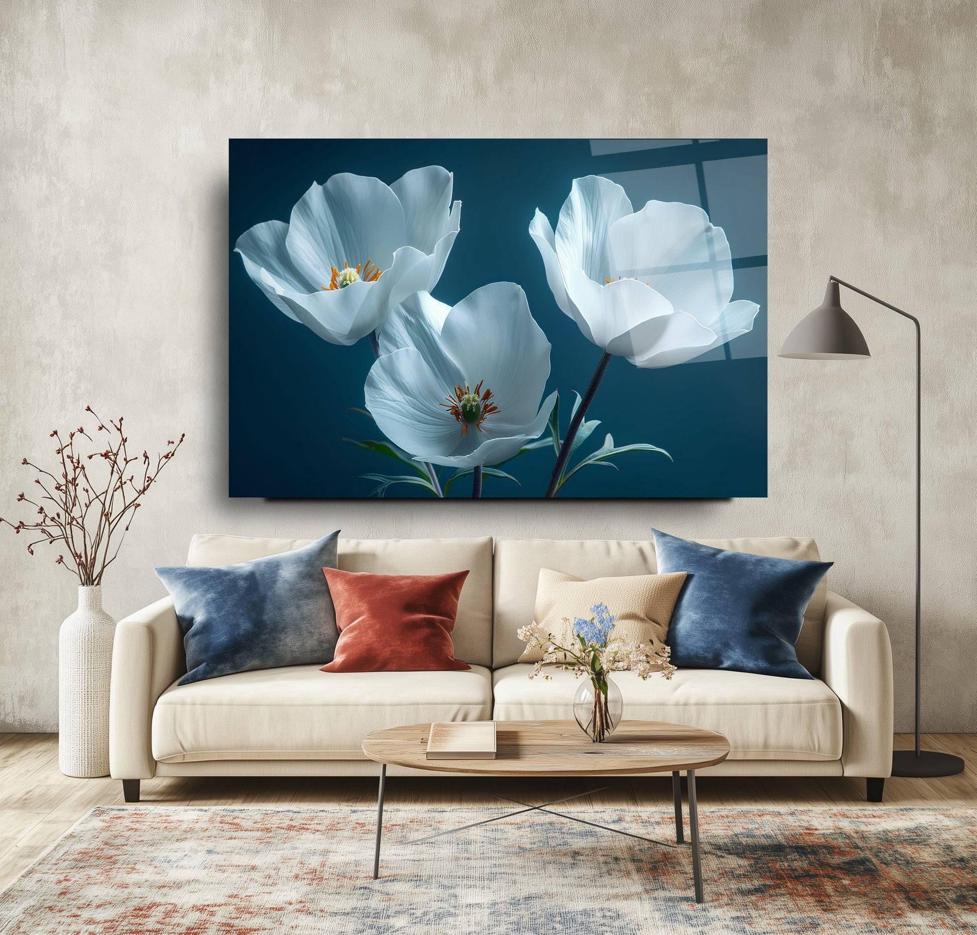 Mavi arka plan üzerine beyaz çiçek desenleriyle tasarlanan bu modern cam tablo, ferah ve zarif bir atmosfer yaratır. UV baskı tekniğiyle canlı ve solmayan renkler, temperli cam yüzeyde uzun ömürlü kullanım sunar. Çerçevesiz minimalist tasarımı sayesinde salon, ofis veya yatak odası gibi her mekâna kolayca uyum sağlar. Estetik ve şıklığı bir arada arayanlar için ideal bir dekorasyon parçasıdır. Modern cam tablo, temperli cam baskı ve duvar dekoru arayanların favorisi.
