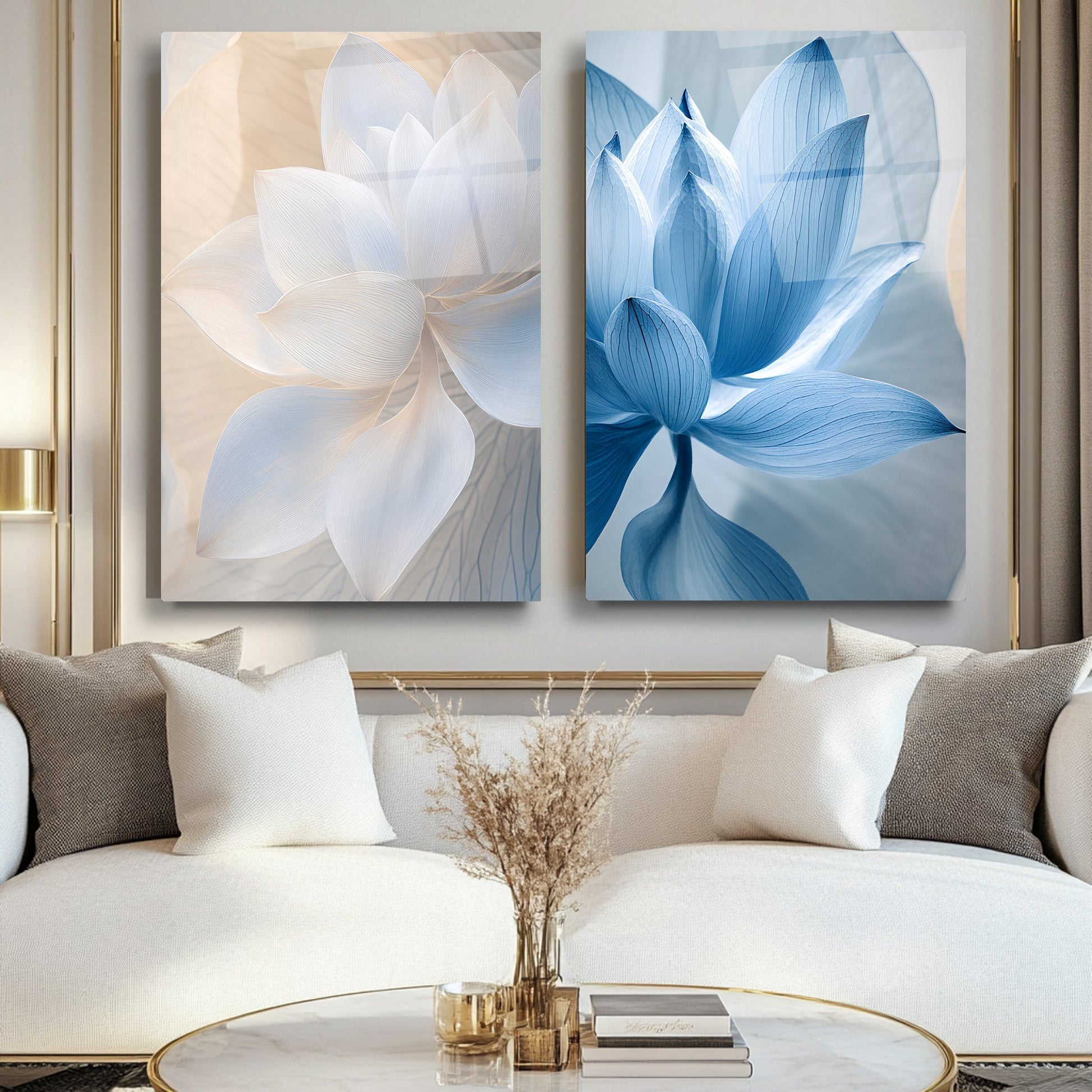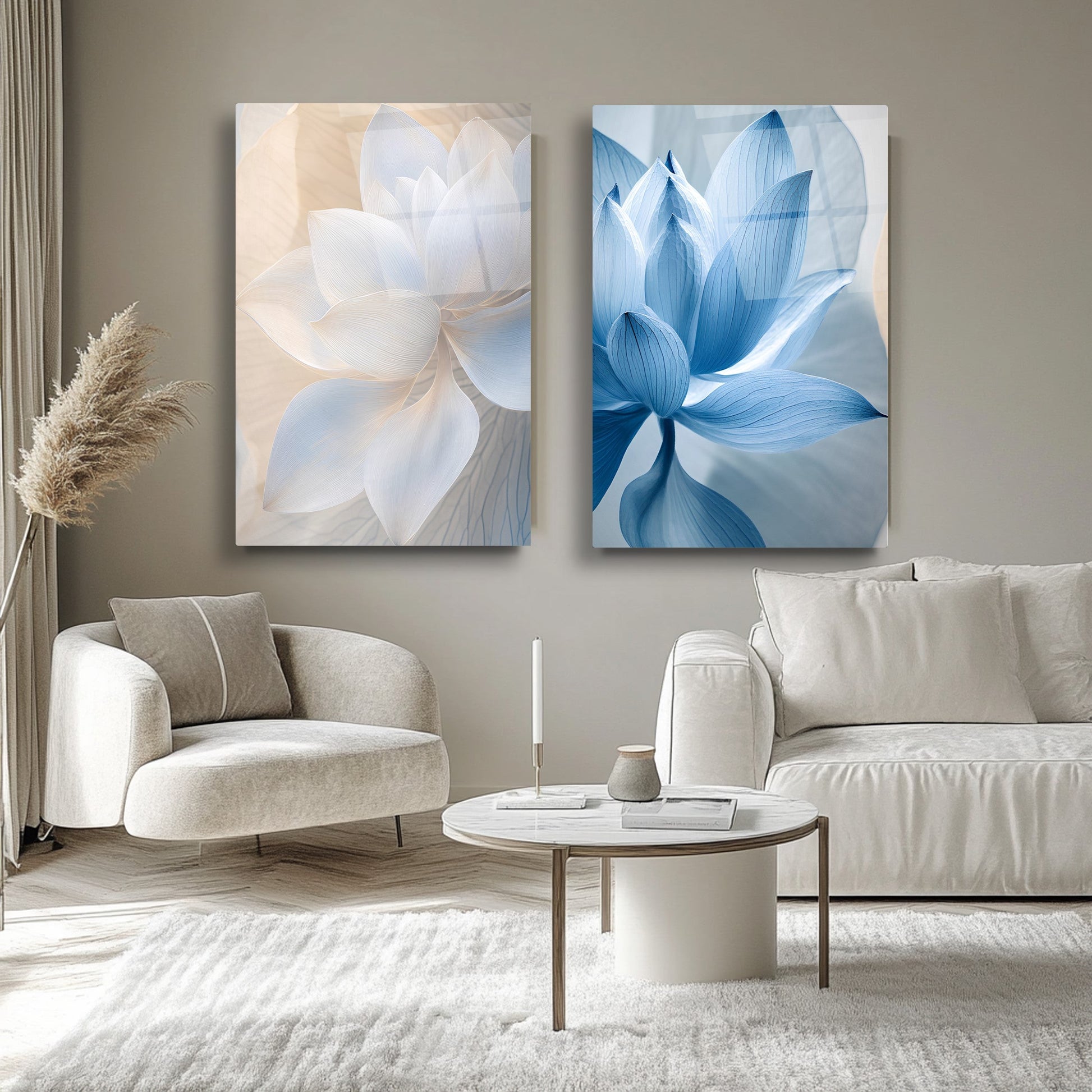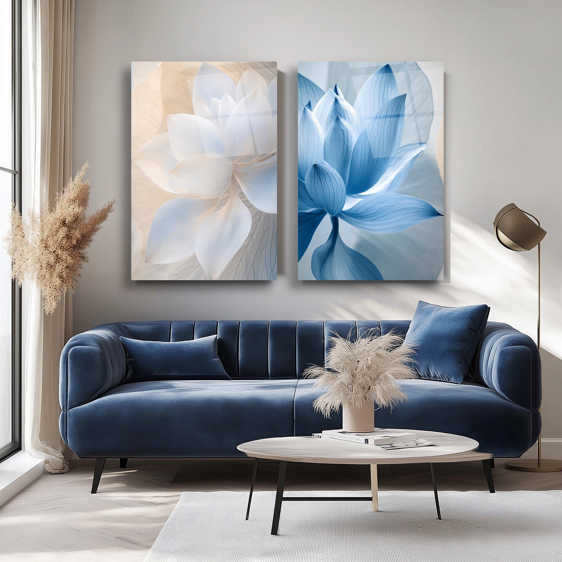 Mavi ve beyazın huzur veren uyumunu soyut çiçek dokusuyla birleştiren bu ikili cam tablo seti, modern yaşam alanlarına zarif bir soluk getiriyor. Temperli ve kırılmaz cam üzerine UV baskı tekniğiyle hazırlanan desenler, renklerin berraklığını ve detayların derinliğini ön plana çıkarır. Gerçekçi çiçek formlarıyla şıklığı sade bir şekilde yansıtan bu set, özellikle oturma odası, yatak odası veya ofis dekorasyonuna sofistike bir dokunuş katmak isteyenler için mükemmel bir seçim. Estetik ve kalite CamDeko güvencesiyle bir arada.