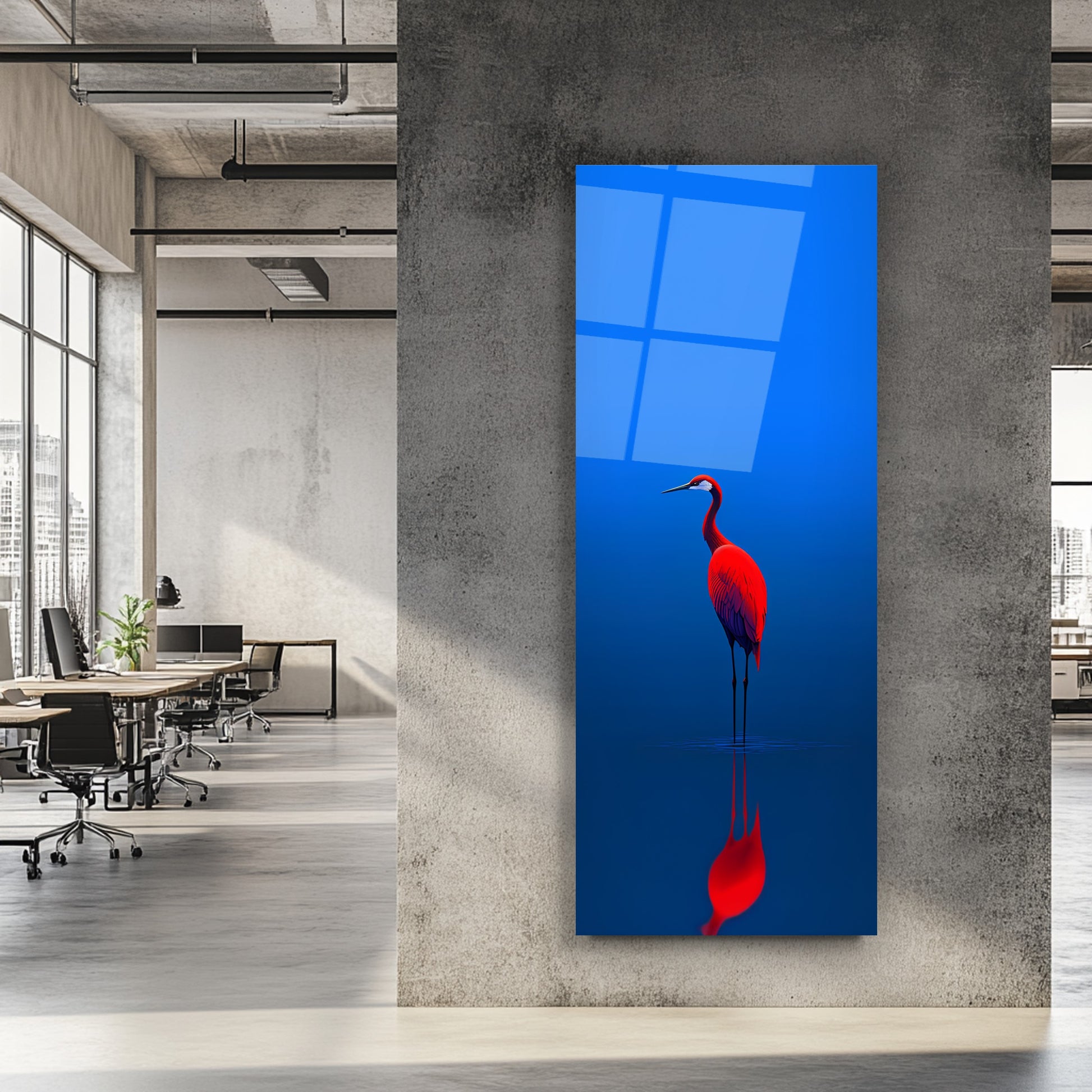 Mavi göl manzarası üzerinde uçan kırmızı kuş figürüyle tasarlanan bu panoramik gerçek cam tablo, huzur ve canlılığı bir araya getirir. Kırılmaz cam yapısı sayesinde dayanıklı ve uzun ömürlüdür. Panoramik formu, yaşam alanlarında dengeli ve doğal bir atmosfer sunar. Doğadan ilham alan, modern ve estetik dekorasyon arayanlar için ideal bir tercihtir.
